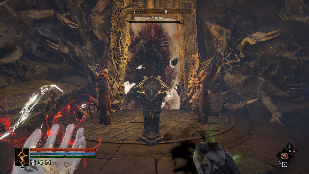 隐藏地点3 最终前往《孤剑》中的这个地点(瀑布后方),打开门,这次准备好一场 boss 战。你会从中获得一个物品,用于游戏结局的对话,只要你同时获得了清理古墓的信息,就能解锁选择这个结局的能力。