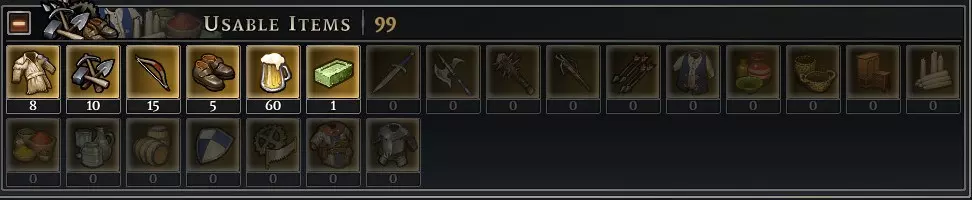 例如:木板、木柴、砖块、面粉等。 可用物品 最后一类本质上是任何材料的最终生产阶段,这些物品供你的工人生存、收集和生产更多资源。