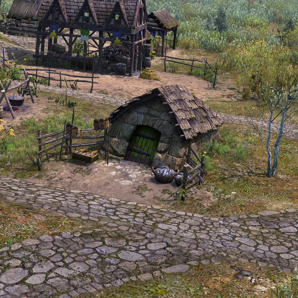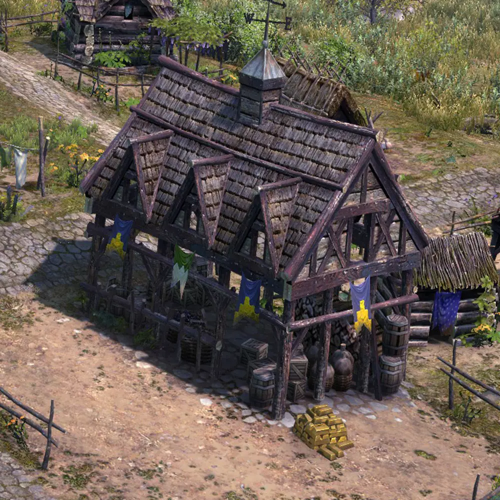 用途:所有易腐烂物品(主要是食物/草药) 不适用:无 仓库 仓库是所有建筑中容量最大的存储建筑。 它在游戏初期的存储方面非常实用,适合用来存放建筑材料/原材料。不过如果你打算用它来存放这些材料,要注意建筑的放置位置,因为游戏中存在资源重量机制,工人搬运某些较重的原材料时移动速度会变慢。