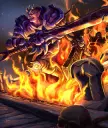 下方桥梁始终处于燃烧状态,但经验值生成速度翻倍(每2秒一次)。 提示: 在这场混乱中,战斗主要在未起火的桥梁上进行,而你需要使用召唤器或1费随从保持对下方桥梁的控制。 scrat坦克、神圣战士和宁静石猴能够无伤穿过桥梁(宁静石猴受到的伤害也不会太高)。利用它们向敌人施压,迫使对方防守下方桥梁,并派遣随从在火焰中送死。