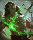 催眠术是一种法术,可将一个或多个单位转化到你方阵营,持续5秒(无法转化建筑)。当你的单位在敌方防御塔下受到攻击时,使用催眠术可以保护它们,还能让敌方单位反戈一击。 如果你使用的是莫达尔,在单位即将死亡时将其转化,你的墓碑将能将该单位复活为己用。 施放此法术会为手牌中随机一张【蛇行】卡牌添加1层【蛇行束缚】效果。 克制方法:催眠术在恰当的时机使用是非常危险的法术。当敌方施放时,务必使用【黑洞】来抵消其效果。 卡牌指南 - 4点法力值消耗 - 第四部分 闪电箭