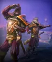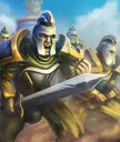 游吟诗人是游戏中最强大的攻城单位。该单位会走向最近的建筑,嘲讽沿途的所有单位,并对建筑造成300点伤害。 游吟诗人也可以作为坦克使用(因其拥有极高的生命值)来掩护你的单位,因为嘲讽效果会将所有敌人吸引到他身上,其他单位则会安全。 如果进入激怒状态,游吟诗人只需6-7次攻击就能摧毁敌方塔楼。 克制方法:游吟诗人危险且难以击杀,务必用眩晕枪兵眩晕他,使其无法前进,这样你就有时间将其消灭。要击败他,你需要使用高伤害输出单位造成尽可能多的伤害,没有轻松击杀他的方法。 Caeleth Dawnhammer