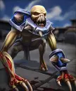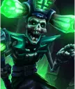 不灭骷髅是一个能造成可观伤害的坦克单位,若其死亡,将在25秒后复活并再战一轮。该单位搭配狂怒效果或使用莫达尔时表现极佳,因为每次它死亡后,墓碑都会再生成一个不灭骷髅。 不灭骷髅每次死亡会获得1个灵魂精华,当精华达到20个时,其他卡牌将获得【诅咒升华】赋予的额外效果。 克制方法:不灭骷髅单独存在时威胁不大,但数量增多后会造成严重伤害。不灭骷髅对飞行单位和集群单位较为脆弱,务必利用这一点来取得优势。 末日轮盘