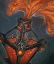 活体雕像为重型攻城单位,移动速度极慢,但能有效吸引所有伤害,让己方单位从后方输出。该雕像不会攻击建筑以外的任何目标,因此非常适合在军队前方承受伤害。若活体雕像成功抵达敌方塔楼,将对其造成严重伤害,进入激怒状态后效果更佳。 召唤该单位会为手牌中随机一张蛇人卡牌添加1层蛇人束缚效果。 应对方法:活体雕像十分危险,它拥有极高的生命值,需要花时间才能将其消灭。击杀活体雕像的最佳方式是用击晕枪兵持续将其击晕,同时用你的输出单位将其摧毁。 岩浆风暴