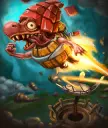 旗帜手是一种特殊单位,可用于保护其周围最多5个随从。操作方法是先放置随从,再放置旗帜手,若随从在其范围内,他就会为所有随从提供护盾。 使用该单位保护脆弱的随从(如水晶弓箭手或等离子陆战队员),这样它们就不会被法术瞬间消灭。 旗帜手也可以作为廉价坦克拖延时间,以便你积攒法力值来召唤更强的单位。 克制方法:旗帜手的真正威胁在于他为其他随从施加的护盾。任何伤害都能移除该护盾。如果你计划用法术击杀被护盾保护的单位,确保先用廉价法术或随从移除护盾,然后再用更强的法术消灭该单位。 火箭筒 scrat