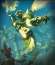 阿蒙使者是现有的最强近战飞行单位。它对前方直线上的所有敌人(空中和地面单位均可)造成巨额伤害。虽然它的生命值较低,需要坦克在前方保护,但它首次死亡时,会牺牲滑行者来为自己恢复生命值(场上每有一个滑行者,恢复50点生命值)。当阿蒙使者濒死时,确保召唤尽可能多的滑行者,以使其完全恢复生命值(6个滑行者可使其完全恢复)。 召唤此单位会为手牌中随机一张滑行者卡牌增加2层滑行者堆叠。 应对方法:阿蒙使者是一个危险的单位,能够在短时间内消灭你的随从。可以用末日光束击杀它,或者像对付其他近战单位一样,先用防御直升机,再跟上远程单位来消灭它。 卡牌指南 - 9点法力值 巨像