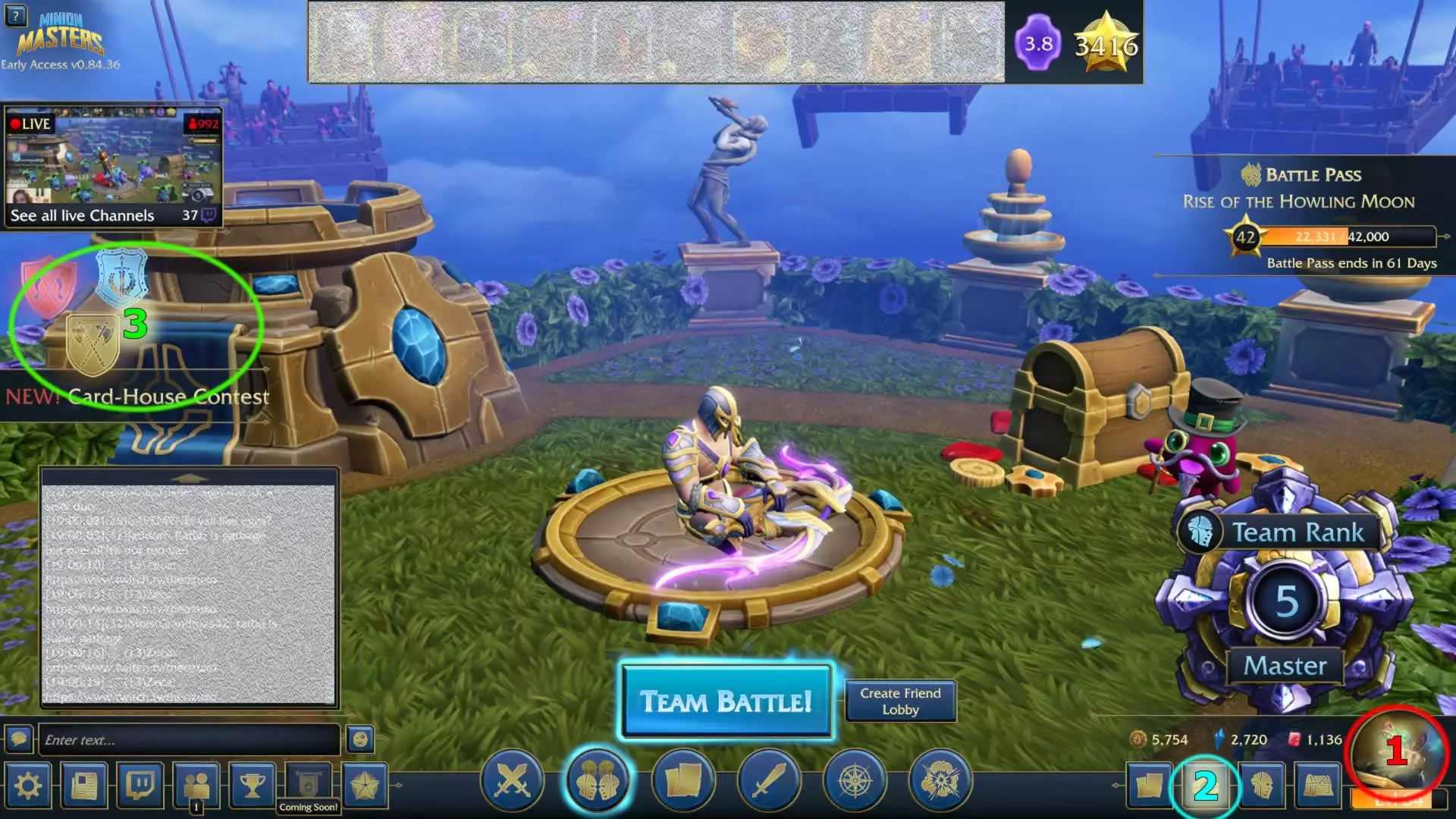 This is your profile, and in here you can find the quests and the achievements. This part is VERY important, and you should check it every day to make sure what you have to do and, most important of all, to collect the rewards. The daily quests can be re-rolled once a day by clicking the round arrow on the right of it, and you should do that to find the "Win 10 games" quest, since it's the one that pay the greater amount of gold of all. Obviously if you get a quest for 1.600 gold is good too, so don't re-roll it or you'll risk to get a 1.000 gold one. In this section you can also find the replay of all the game you play. The power tower is where you spin your tokens, and you should check this daily since you get a free token every day! Free tokens provide gold or rubies so make sure to spin it every day to get the all the free resources as possible. Every 5 days you get a better reward (rare minimum), which in the worst case is 500 gold. Season tokens can be found by playing the season battle pass, and these tokens are the only way to obtain the newest cards. These cards can be crafted (like every other card), but they cost 3 times more (until you reach tier 99 in the battle pass), so using these tokens is the best thing to do to get and upgrade them. Power tokens are the best way to spend the excess of gold. Using these tokens provides you new cards (or upgrade for duplicates), but most important of all shards. When you play power tokens always remember to do it for the shards and DO NOT obsess trying to get a specific card or you'll just end up disappointed. Like the daily free token, this tokens provide a guaranteed better reward every 5 of them. Season and power tokens rewards you with shards based on the type of card you get: Common: 15 shards (+25 if the card is already at 400 glory) Rare: 30 shards (+50 if the card is already at 400 glory) Supreme: 75 shards (+125 if the card is already at 400 glory) Legendary: 300 shards (+500 if the card is already at 400 glory) If you reach 400 glory on a card and you find that card again while using a token or by buying a bundle in the shop, you will receive a generous amount of extra shards. The contest area is very important since it can provide you with some powerful reward. Usually the contest has a series of keys to obtain, you'll get one randomly while playing a specific master or, while watching a streamer, everytime he gets a key you also get a key. The keys awarded by the twitch drops will be available on the next login. Completing a section gives you the final reward, but getting all the keys is still worth it since you'll get shards from them, and even if 10 shards looks a small amount, when you get them all you will have many more (sometimes even 600!!!) Basics - Chat Commands This are the most useful commands to be used in chat, there are others, but you won't use them that often (if you'll ever use them at all). /w <name> : to send a private message to <name> /r : to reply to a private message /me <message> : to send a chat message as emote /deck : post your deck in chat /msgdeck <name> : to post your deck as private message to <name> /stealdeck : replace your current deck with the one you are looking. WARNING: there will be no confirmation, if you type that command your current deck will be replaced at once and there is no way back. /cud : copy your current deck as text (to be used in forums, discord, etc...) /sud : set a string deck as your current deck. WARNING: there will be no confirmation, if you type that command your current deck will be replaced at once and there is no way back. /cid : copy your deck as integer deck. /sid <deck ids> : set an integer deck as your current deck. WARNING: there will be no confirmation, if you type that command your current deck will be replaced at once and there is no way back. /showtimestamps : enable the time stamp in every chat message /hidetimestamps : disable the time stamp in every chat message /setchatbackground <0/1> : use 0 or 1 to enable/disable the chat background /setchatfontsize <n> : change <n> with the font size you want /resetchat : reset the chat to default settings (requires the game to restart) /join <channelName> : to join/create a chat channel /leave <channelName> : to leave a chat channel The chat also support a series of emojis, to use them just type :<command>: Where <command> is one of the following: happy hi sad wow angry wp glhf gg twitch kp1 gm mean facepalm cool greet peace sleep wink austria belgium denmark estonia finland norway switzerland Basics - Streamers Watching the most popular streamers is also a good way to earn resources! In fact the BetaDwarf provides them giveaway packages to be given away, and the more viewer they have, the bigger the packages will be, so be sure you don't miss your chance in their raffle (especially if you are a new player)! While viewing a stream on twitch, there are several commands that you can use to interact with the game by changing your puff style or by throwing stuff in the arena. All the commands available can be found here: http://minionmastersthegame.com/streamerboost/ Also by watching the streamers, you will receive drops when they win! Drops grant you 50 gold (and eventually a key of the tri-team event). The drops can be collected on login. Basics - Freebies In addition to the giveaways that you can get from the streamers, there are also few other free cards and stuff that you can get. Here it is a list of all the current active freebies: Minion Masters Newsletter[www.betadwarf.com]: subscribe to receive: (Common Card) Battle Shi-Hou (Arena Skin) Winter Holiday Arena Several DLC and stuff for other BetaDwarf games Alienware Arena Giveaway[eu.alienwarearena.com]: subscribe to receive: (Master) Ratbo (Master Skin) Green Acid Ratbo (Common Card) Scrat Horde (Common Card) Whirly ScratAlternative link: Steelseries Giveaway [games.steelseries.com] Alienware Arena Launch Day Giveaway[eu.alienwarearena.com]: 3 Power Tokens Ra