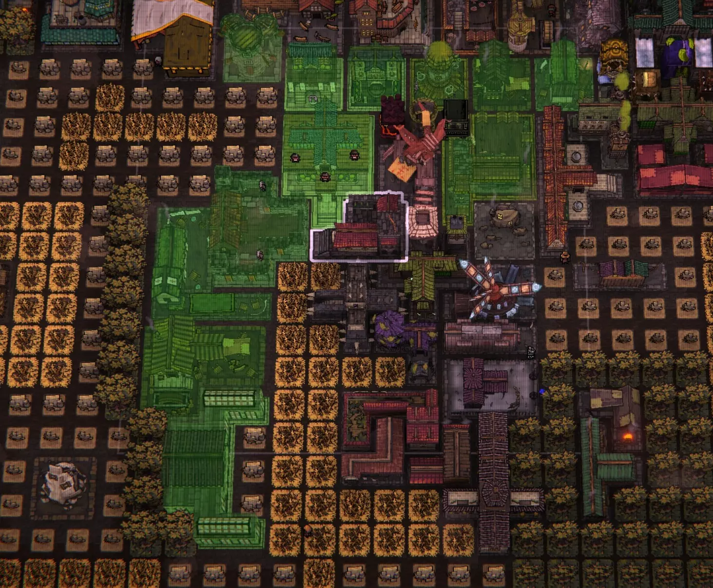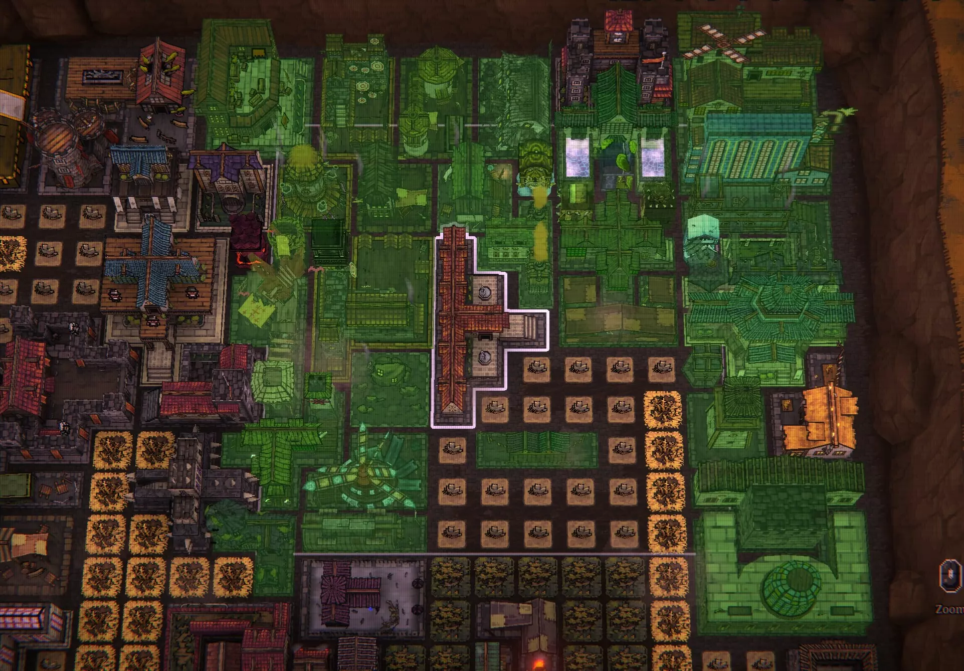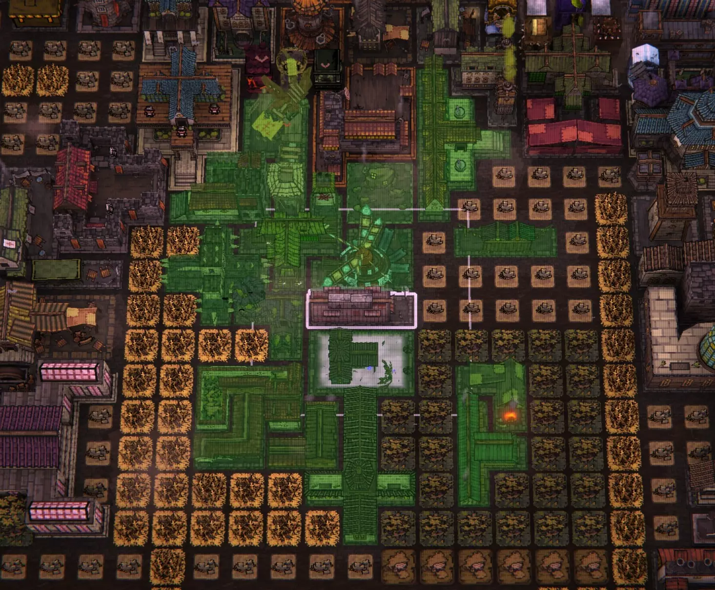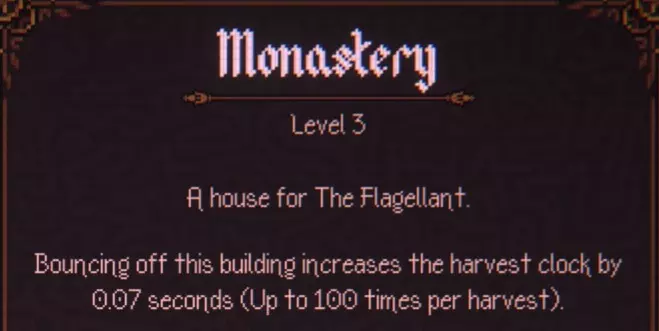 修道院和鬼屋是仅有的两种在收获期间被击中时能提供增益的居民建筑。我已将两者都放置在收获期间容易被击中的位置,以充分利用它们的增益效果。 独栋家庭住宅/温馨小屋/剧院