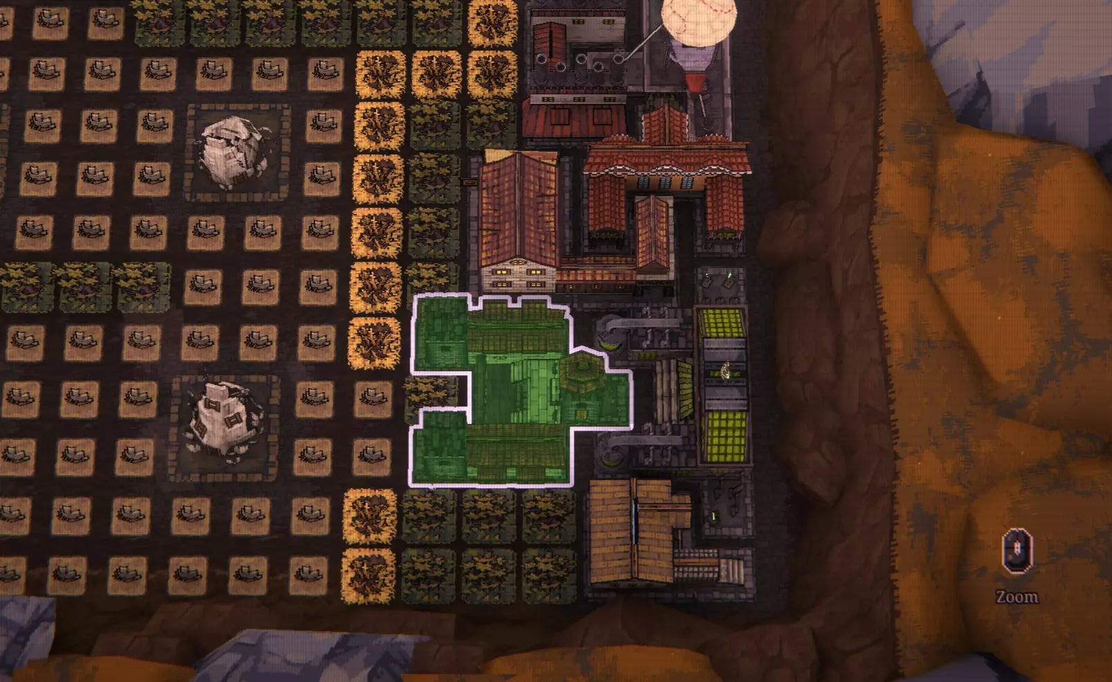1. 你必须为该建筑分配一个角色,其最佳收益为每30分钟1000金币和100石头。虽然不算太差,但采石场在相同的30分钟内可产出135石头,且占用空间更少。 2. 该建筑在游戏关闭时无法运作,而农场/伐木场/采石场则可以。 3. 该建筑占用9格资源位,意味着每格资源位会损失14小麦或11木材/石头。如果你本来就不会使用这个建筑,这些损失会累积起来。 不过,如果你执意要在基地中包含这个你可能永远不会使用的建筑,那也可以。如果你采用我的设计,我会把它放在这里: