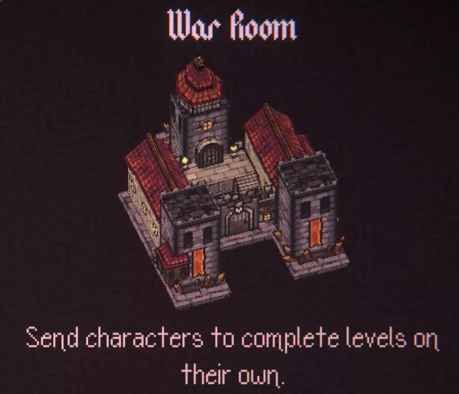 如上面截图所示,这意味着你每13次运行可以出售10000单位小麦、木材和石头,总共获得540000金币。这是目前最好的金币获取方式,你需要充分利用它。 如果你想快速刷新市场,可以开始一次运行,故意失败,重新开始,并重复13次。 战争房间 如果你想复制我的基地,可能已经注意到我没有建造战争房间。那是因为它毫无用处,只是占用空间。