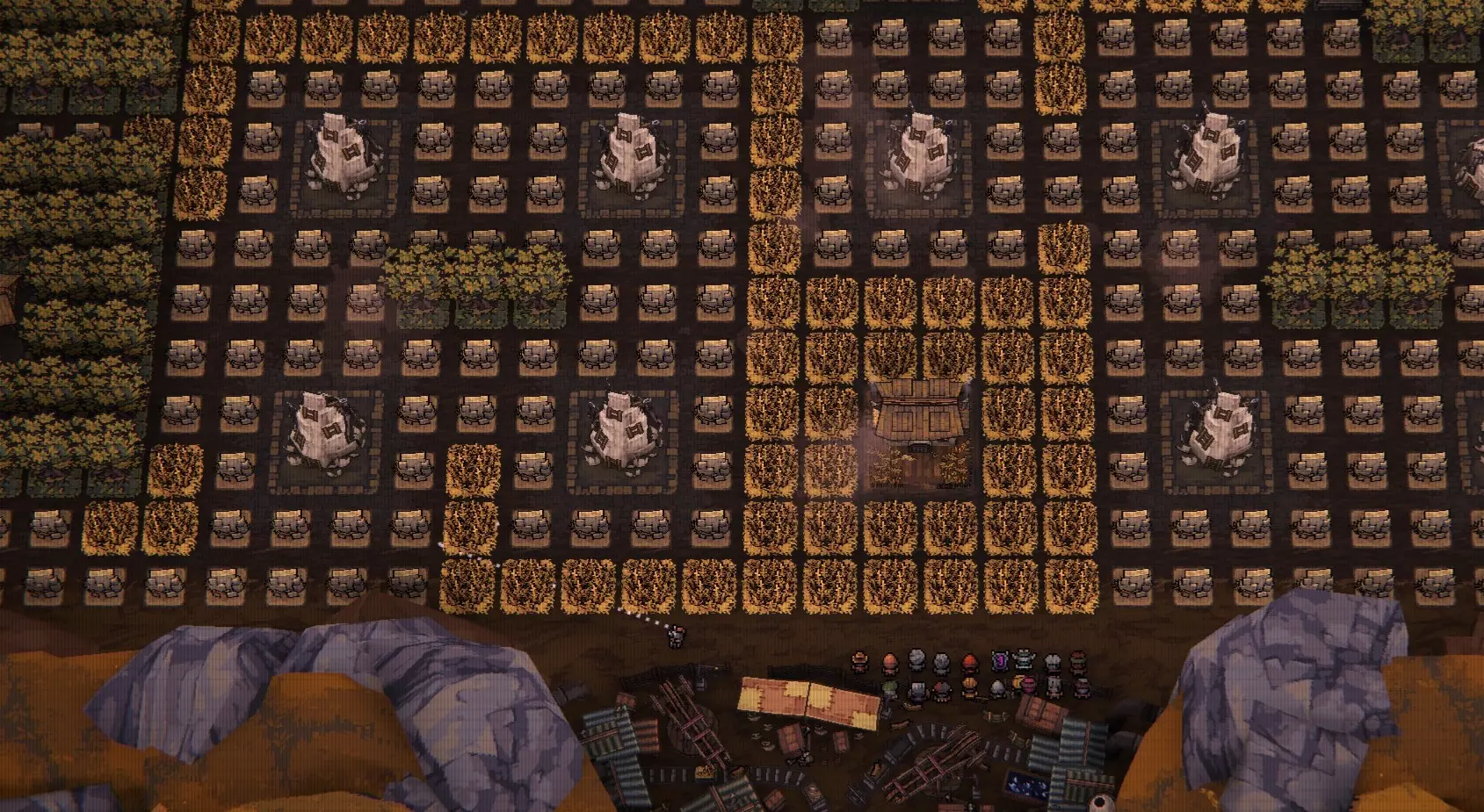 (点击图片可放大) 此基地设计以游戏后期资源收集为核心思路。 每个居民建筑都得到充分利用。 基地布局内无闲置地块。 收获期间可收集所有资源地块。 所有无限属性建筑可在单次收获中完成升级。 无需费心重新布置基地。 无需费心重新分配角色。 资源优先级顺序为:石头、木材、小麦。 已收获资源
