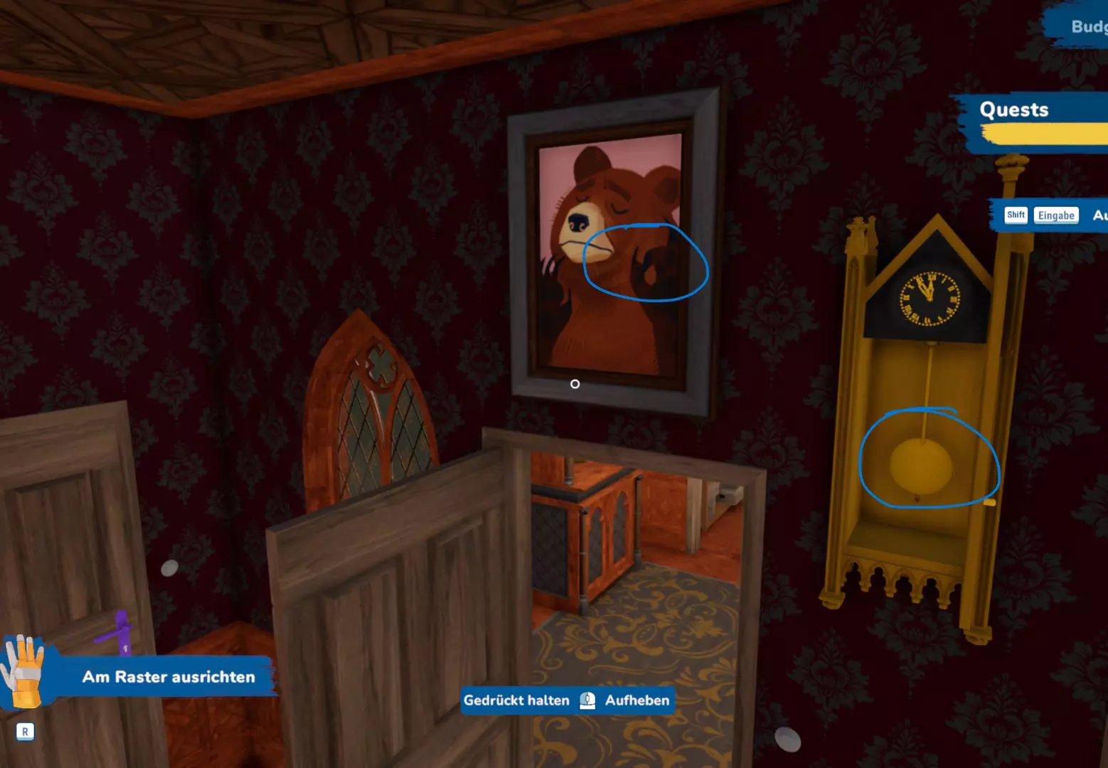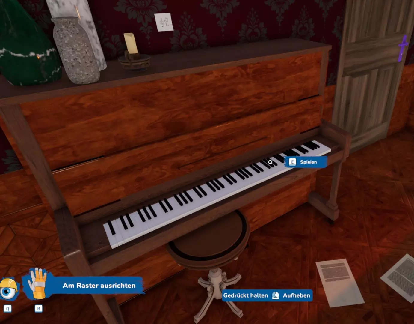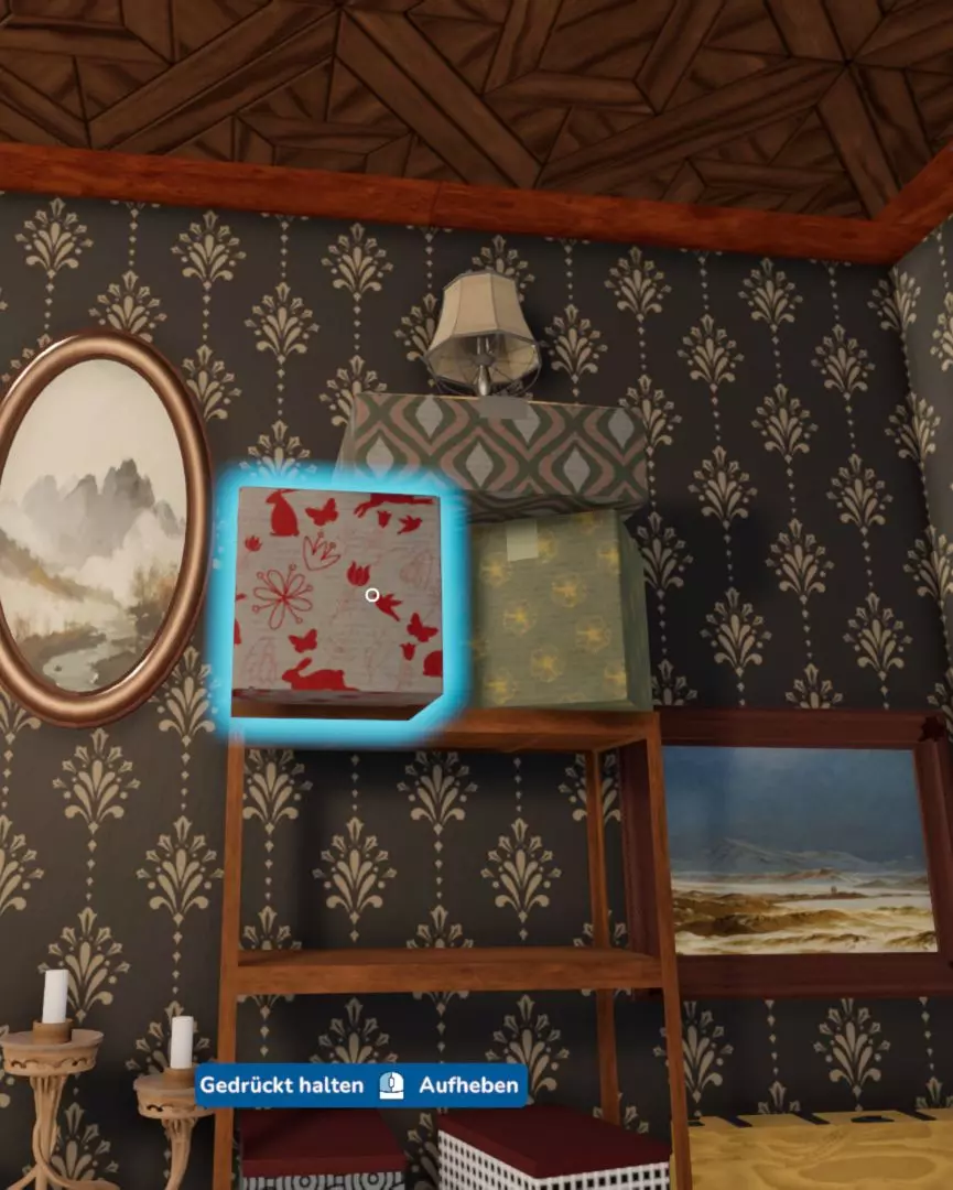 你好。 在“博物馆”任务中,你会在翻新时找到一把紫色钥匙,然后需要解谜才能打开更多的门,最终到达阳台。 这里是物品位置。你可以解谜后前往,或者像我一样,拿一个大脚手架,在上面放两张桌子,这样我也拿到了【宝藏】:-) 不过我还是为了好玩把谜题解了。 祝你玩得开心。-) Fish