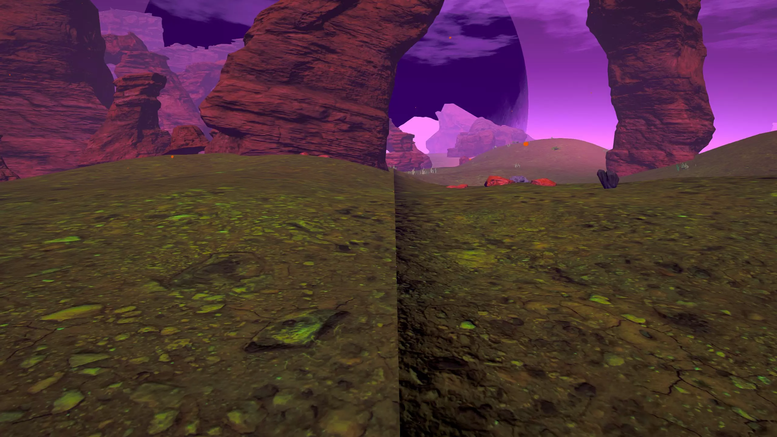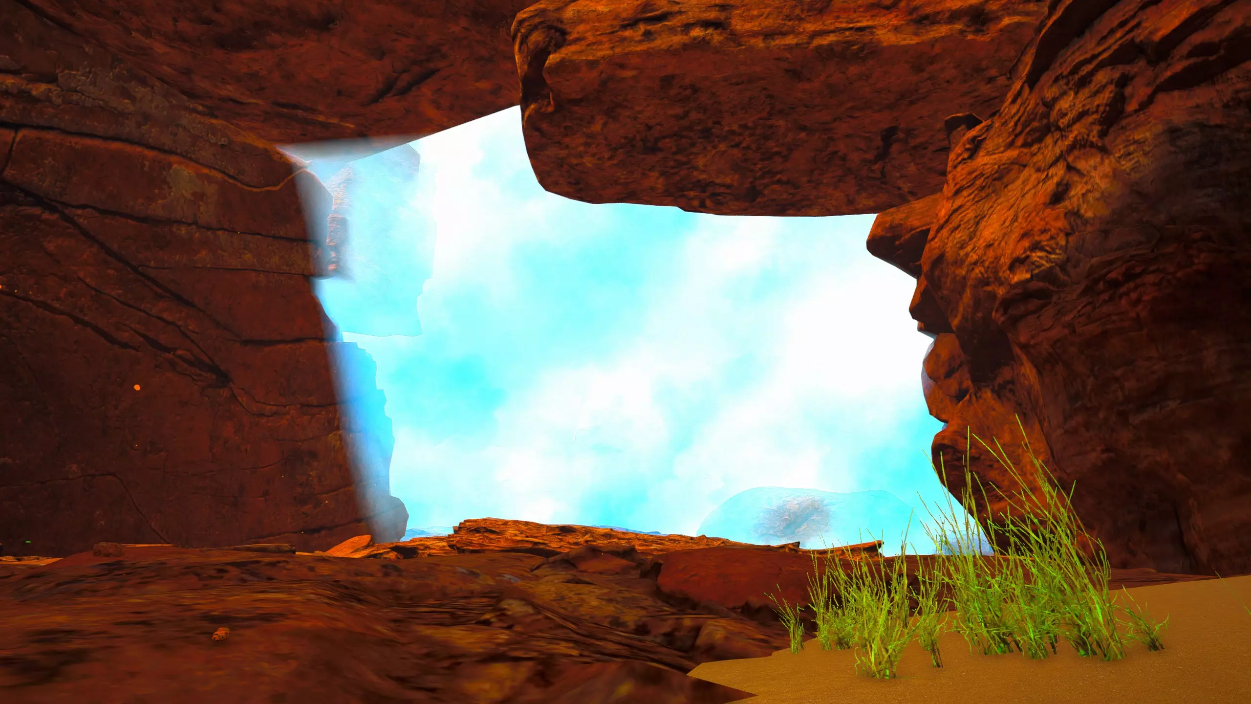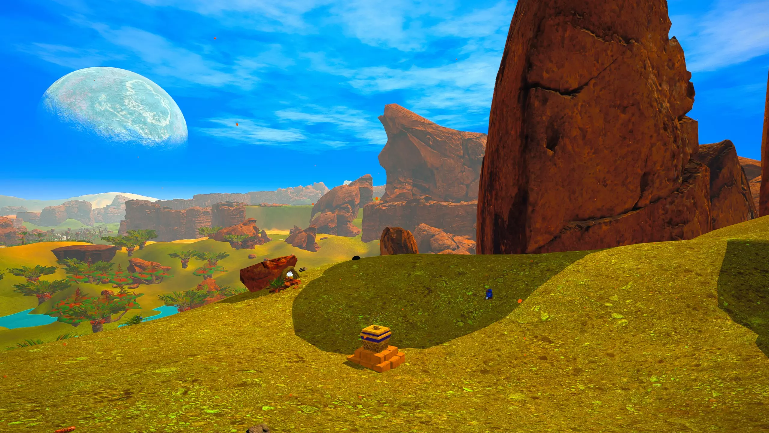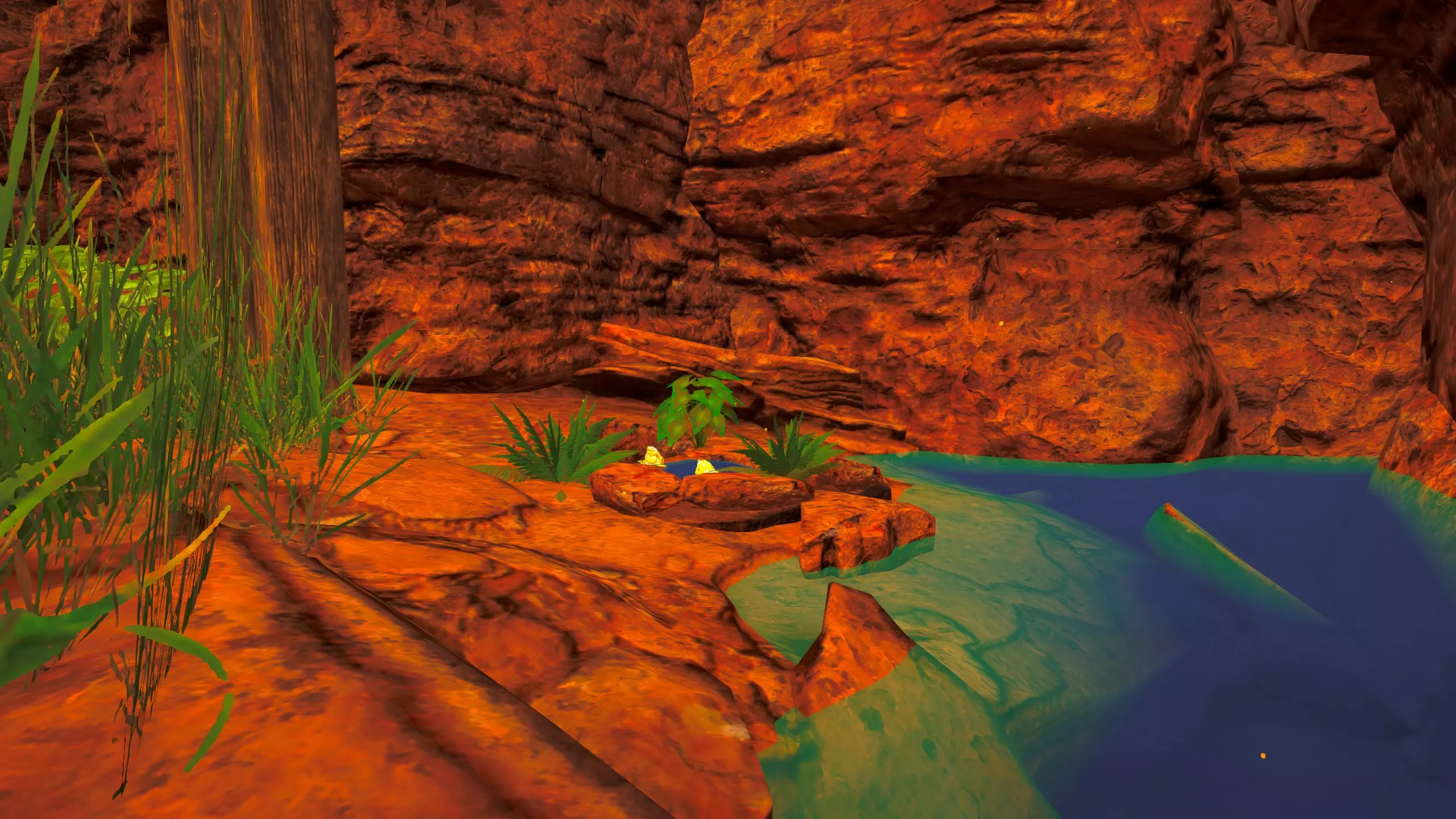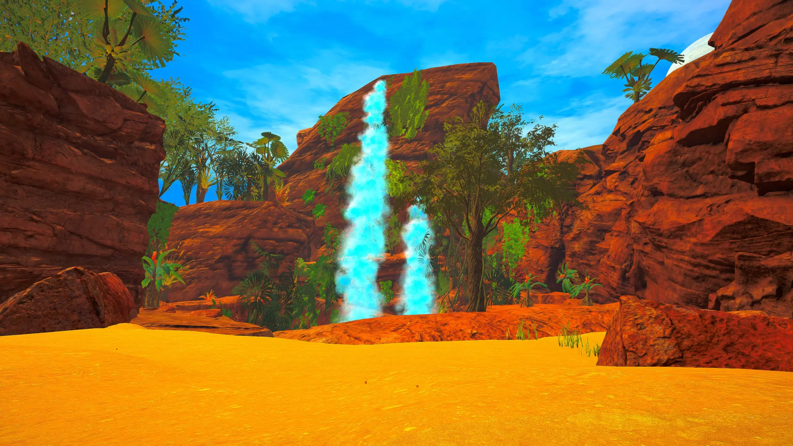 关于该区域的说明: 藤蔓会生长到……石林的顶部?(如果是峡谷中水流形成的,我不确定它的具体名称) 【注意】你可以攀爬藤蔓向上,但向下攀爬会/可能损害你的生命值/饱食度。 你可以在石林顶部采摘花朵。 沙漠 残骸