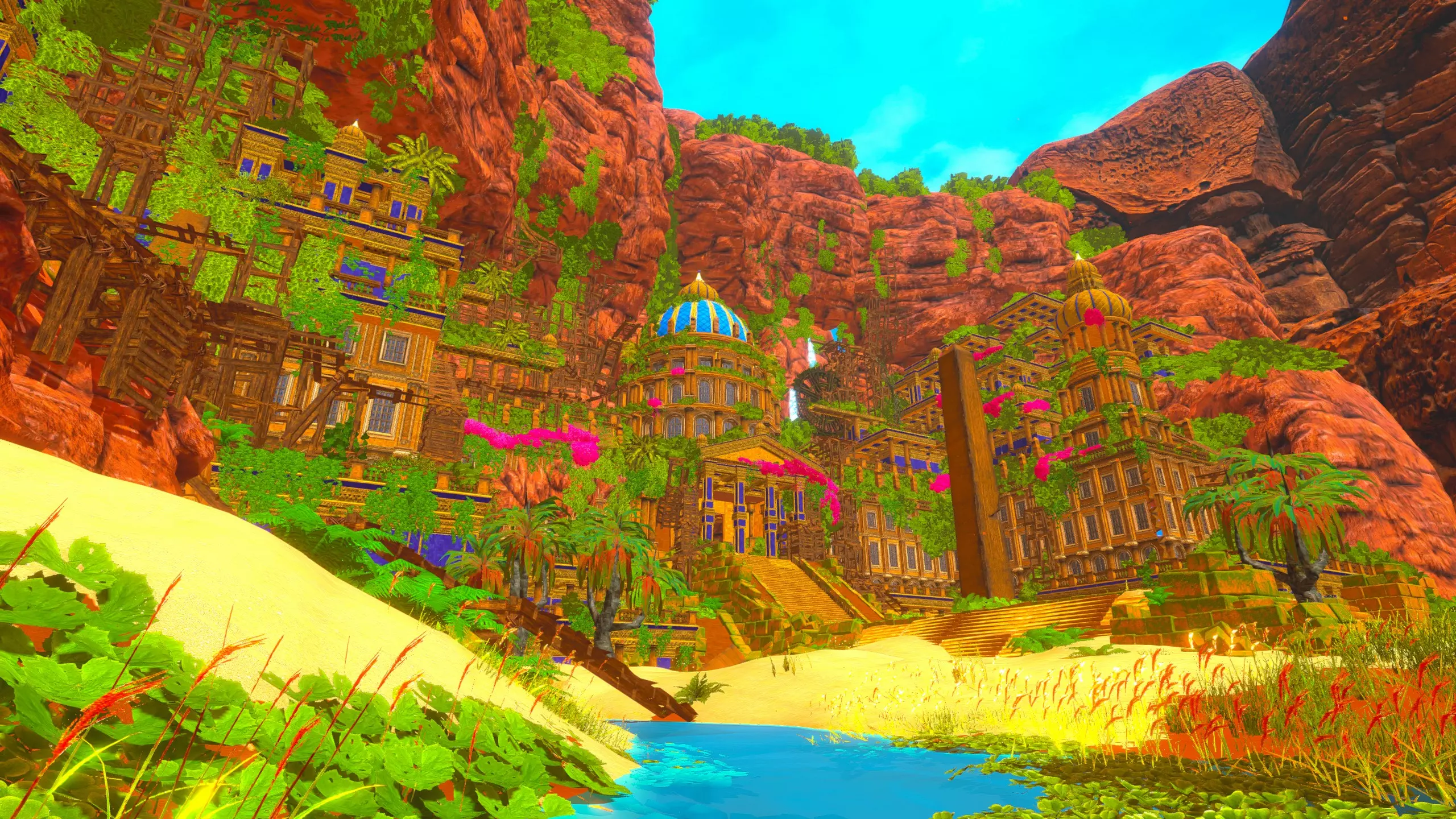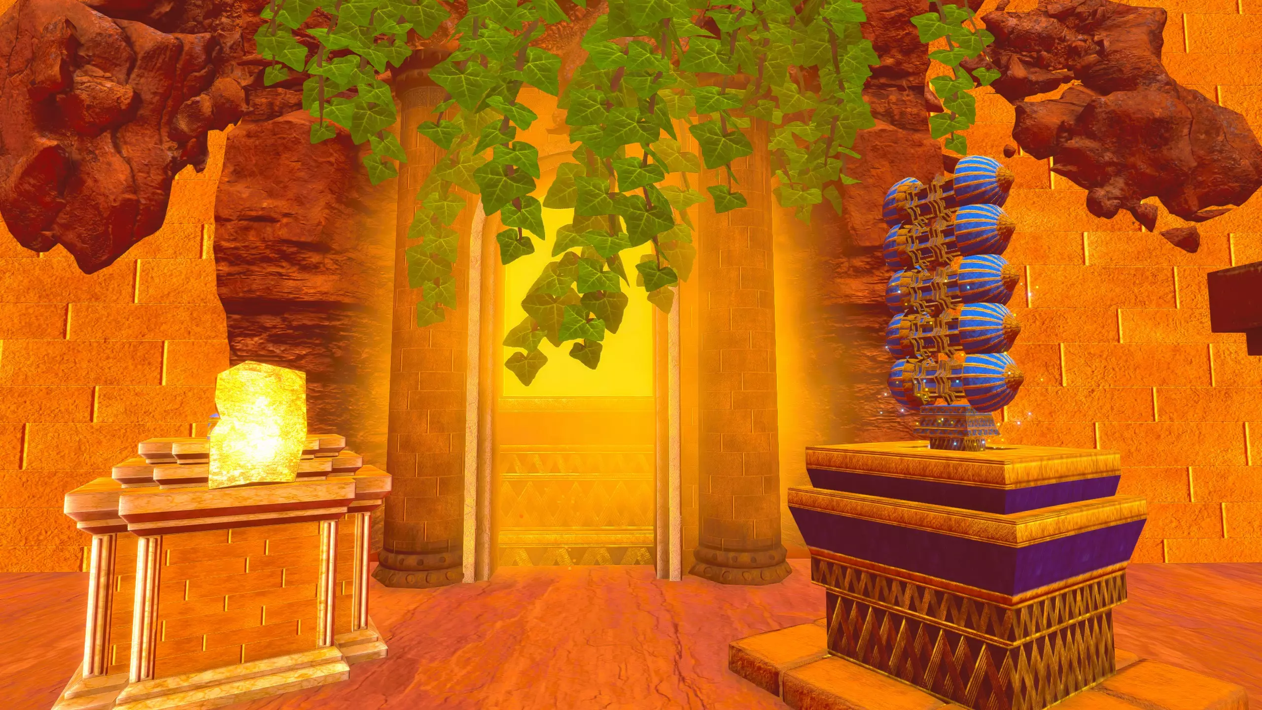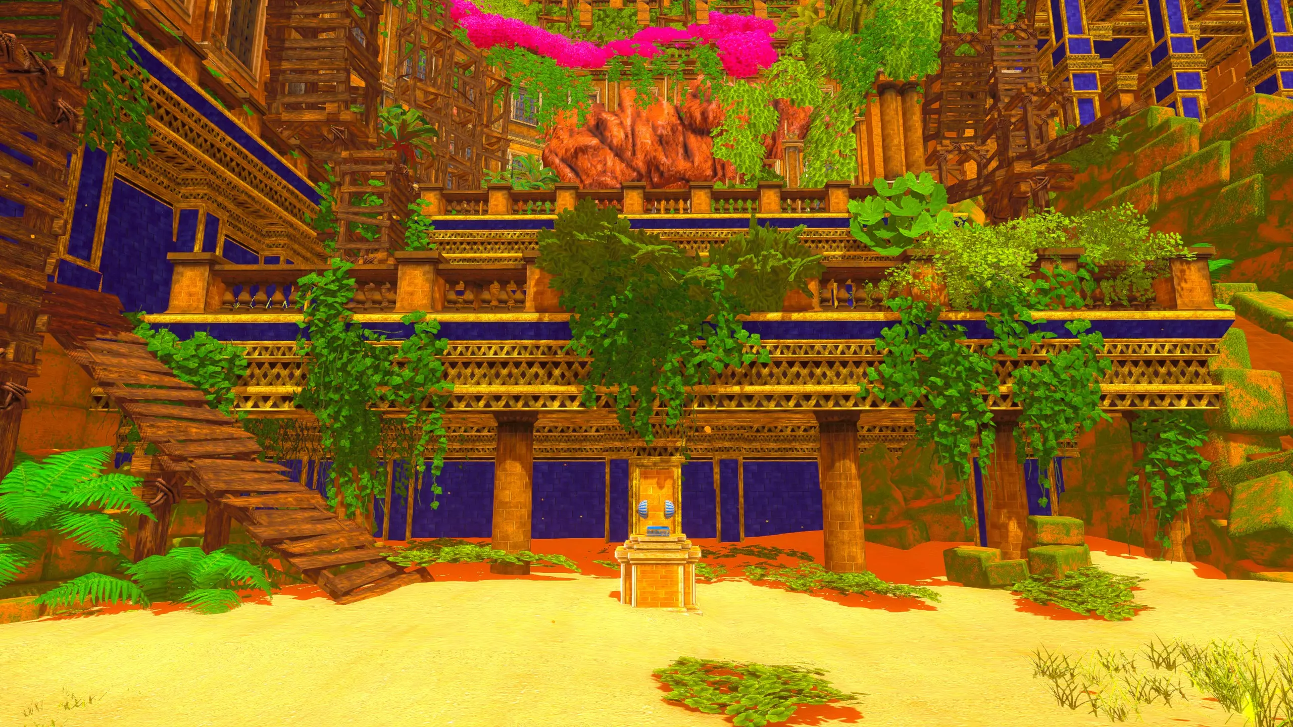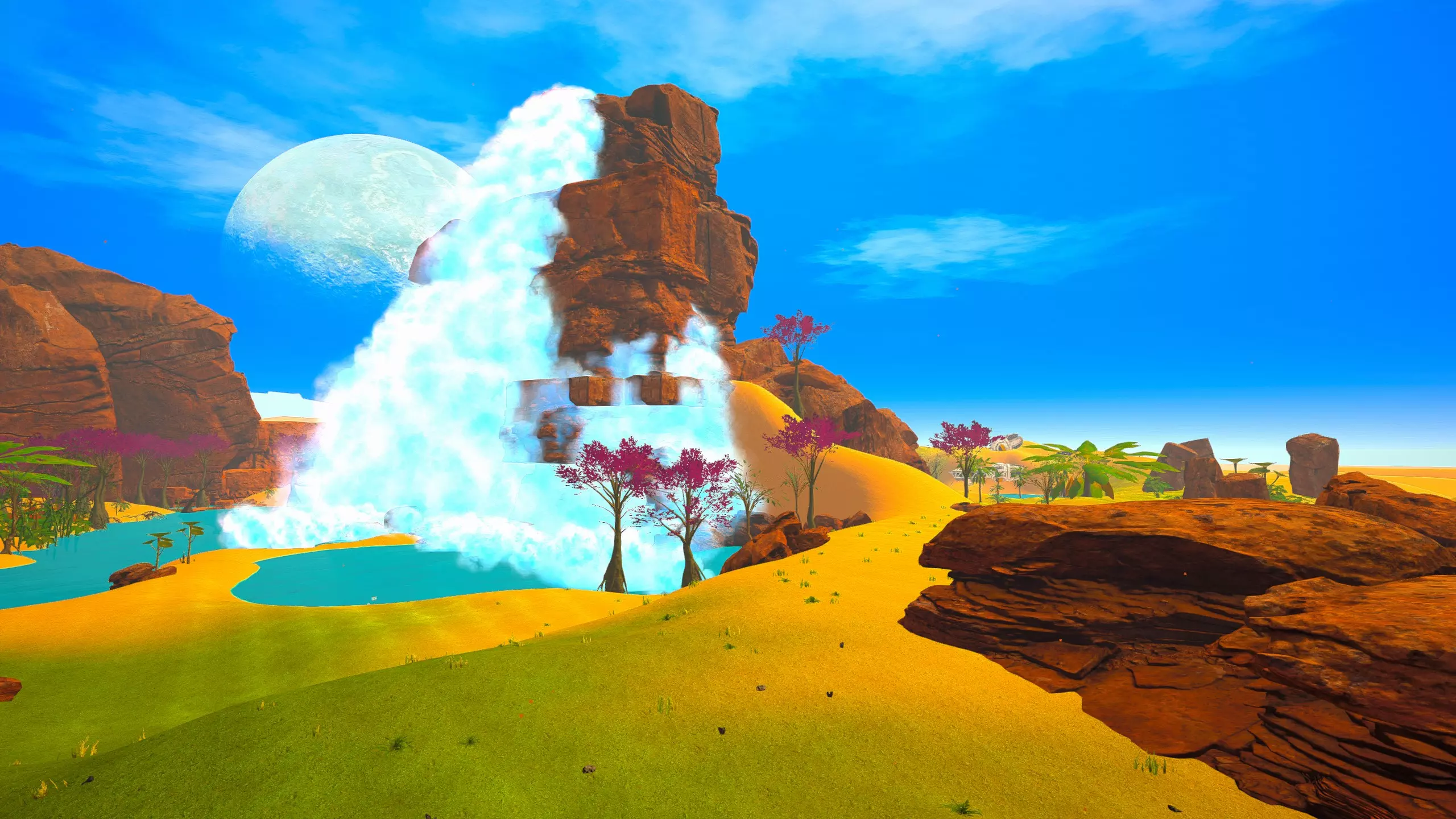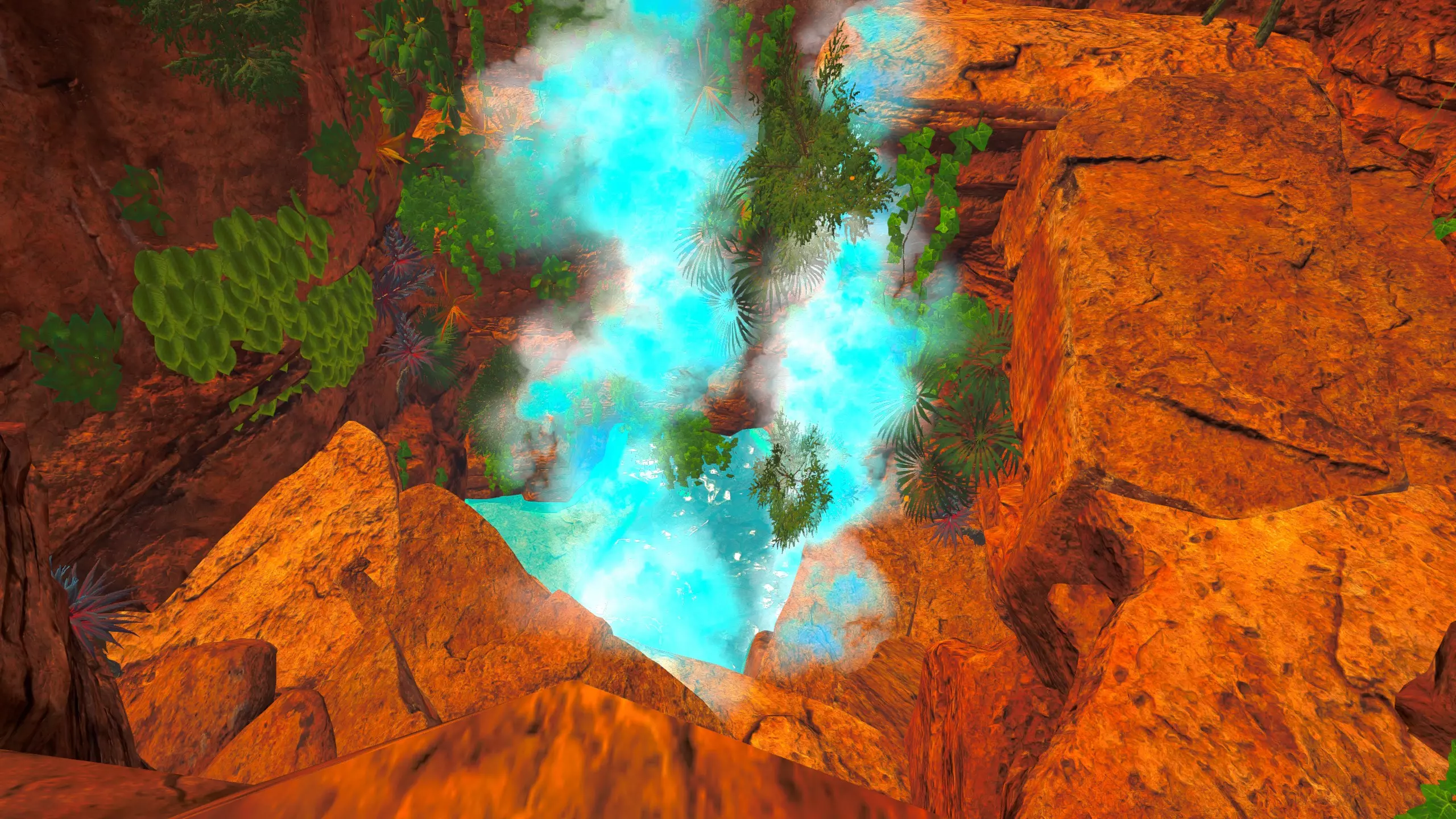 关于该区域的说明: 藤蔓会生长到……石林的顶部?(如果是峡谷中水流形成的,我不确定它的具体名称) 【注意】你可以攀爬藤蔓向上,但向下攀爬会/可能损害你的生命值/饱食度。 你可以在石林顶部采摘花朵。 沙漠 残骸