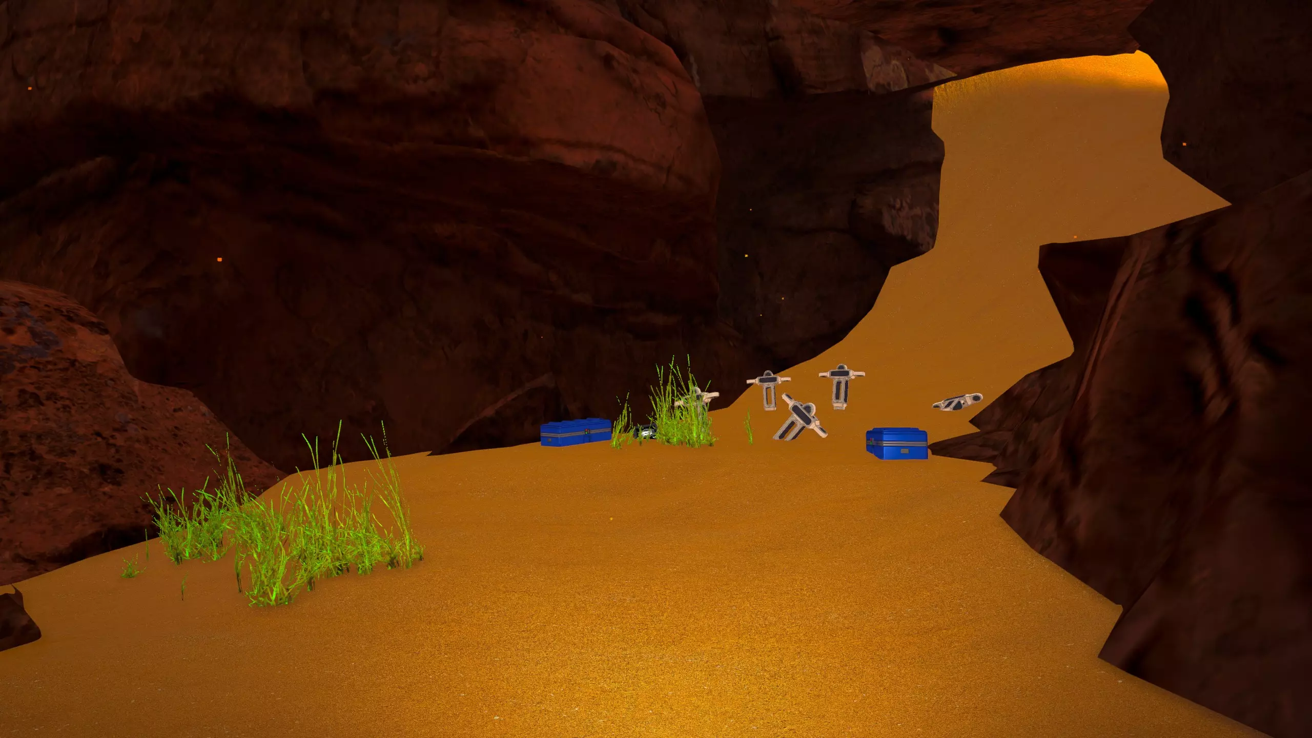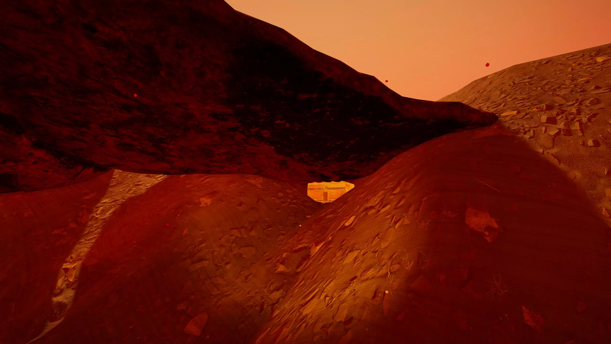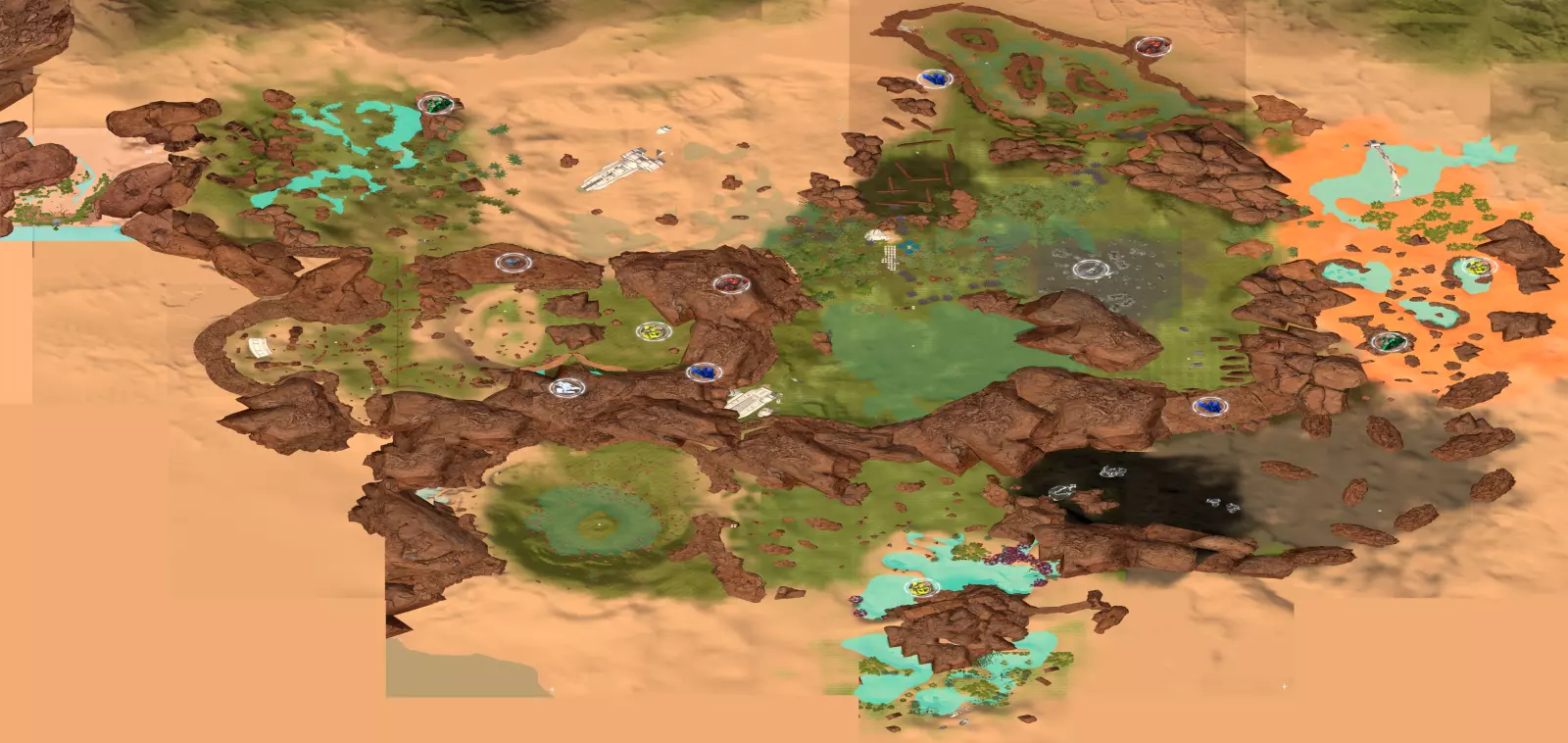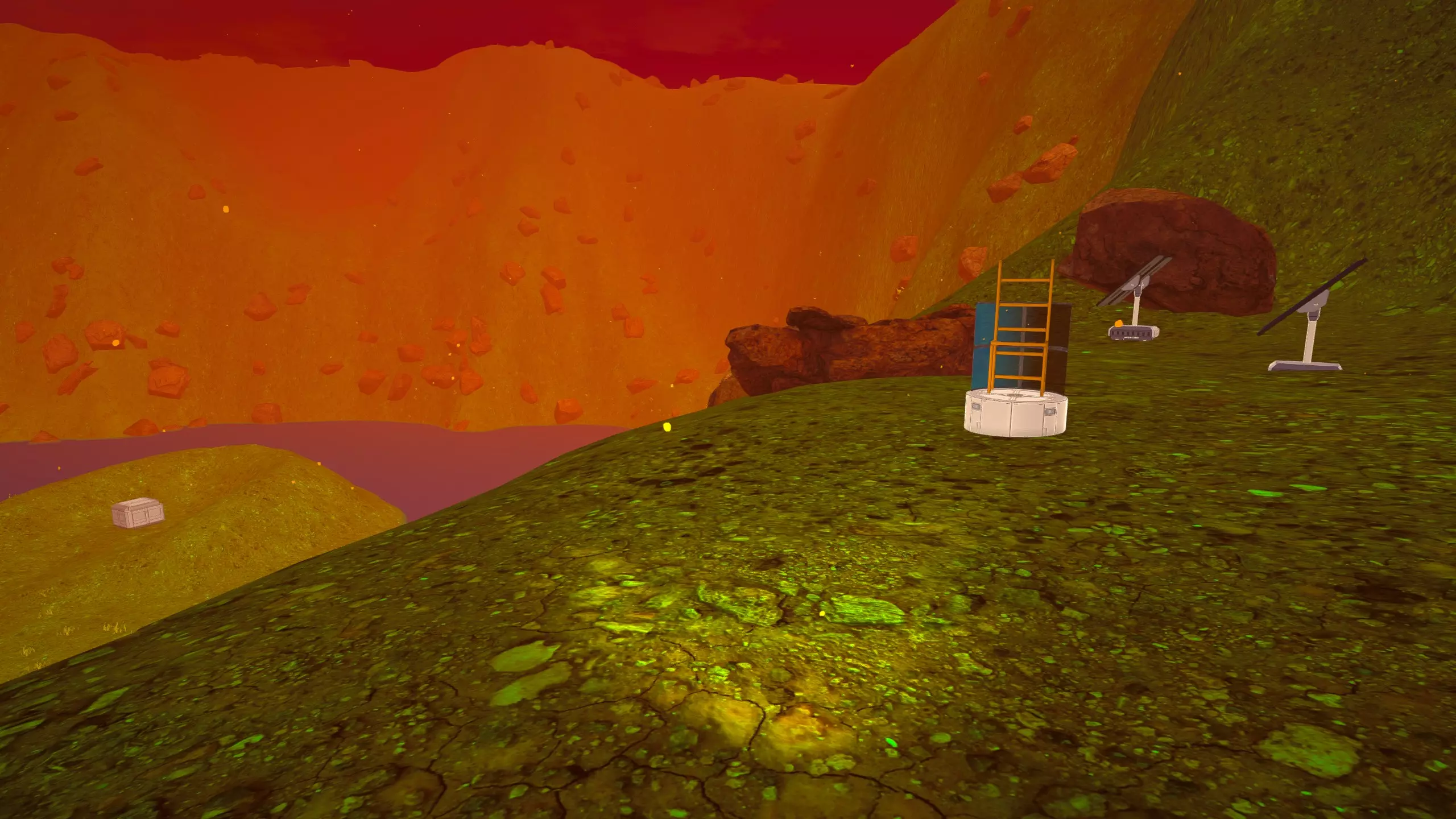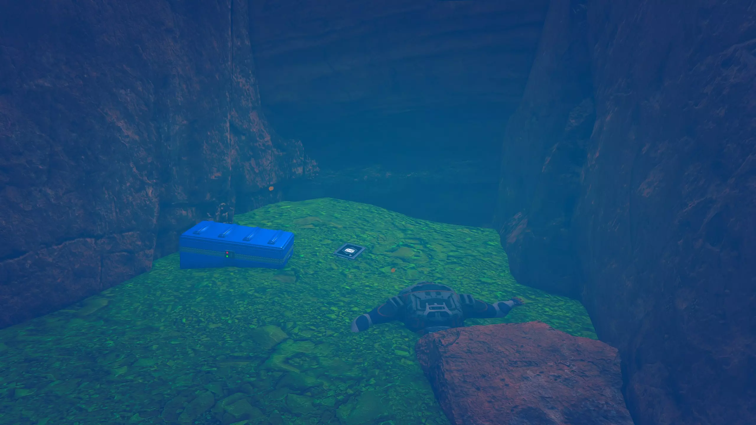 残骸笔记: 一半的残骸会沉入水下。我的建议是在液态水阶段前搜刮这个区域。 峡谷峡谷之类的地方(因为确实是这样...) 战斗机“喷气式”残骸和芯片箱