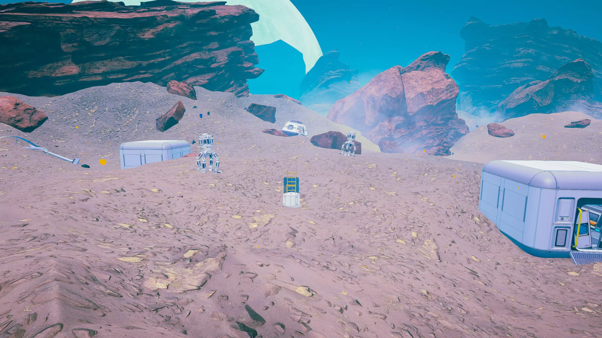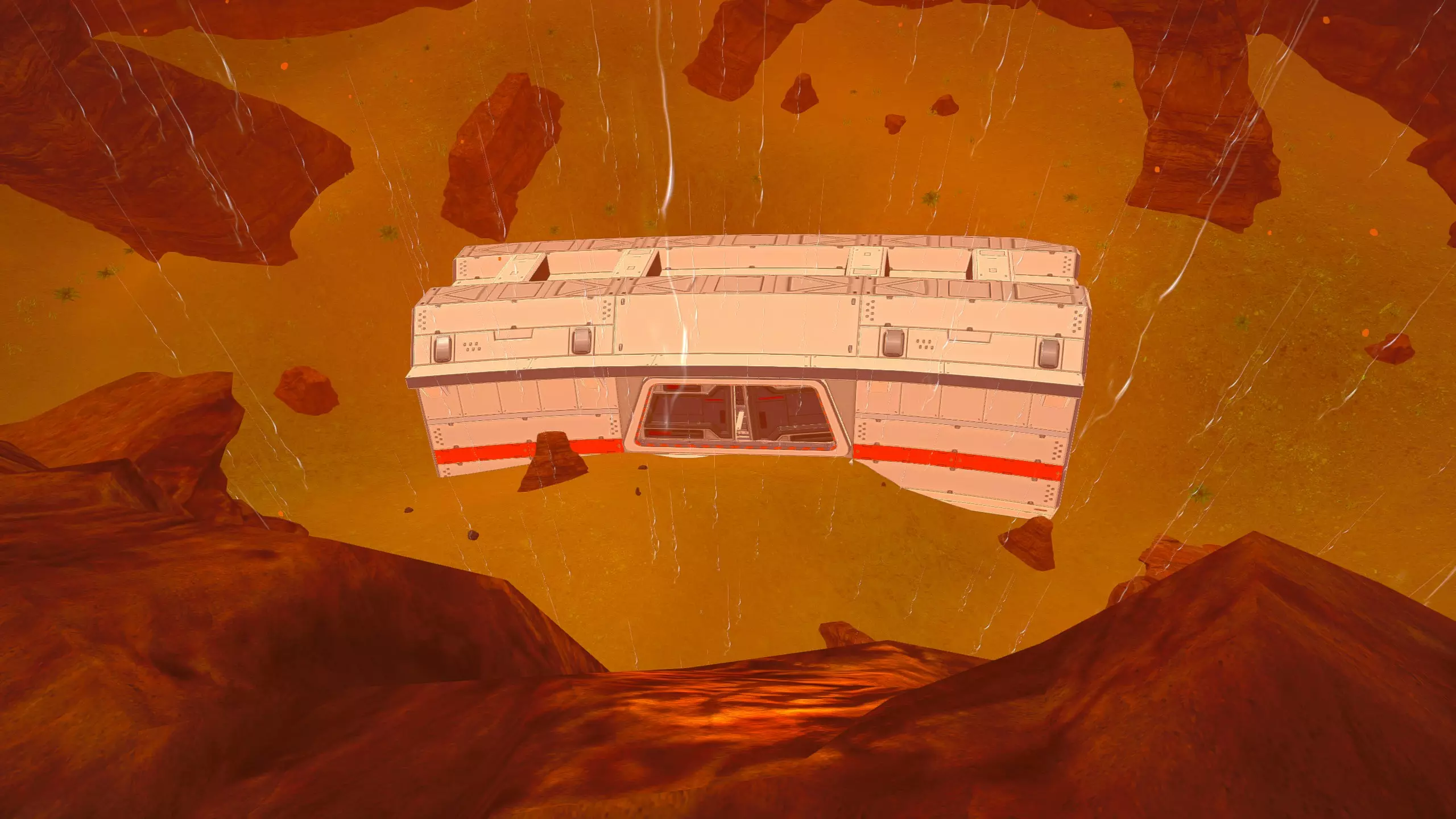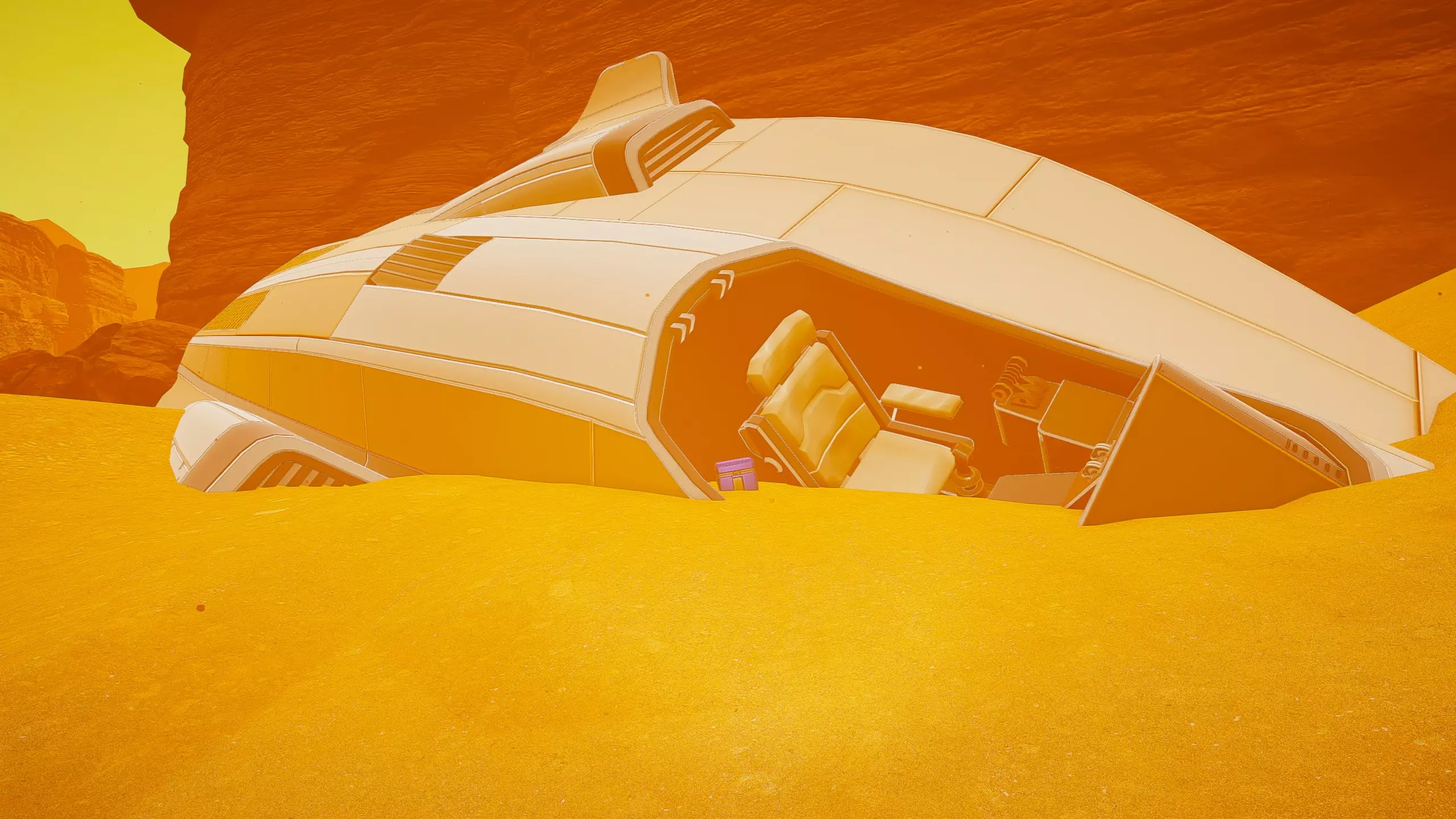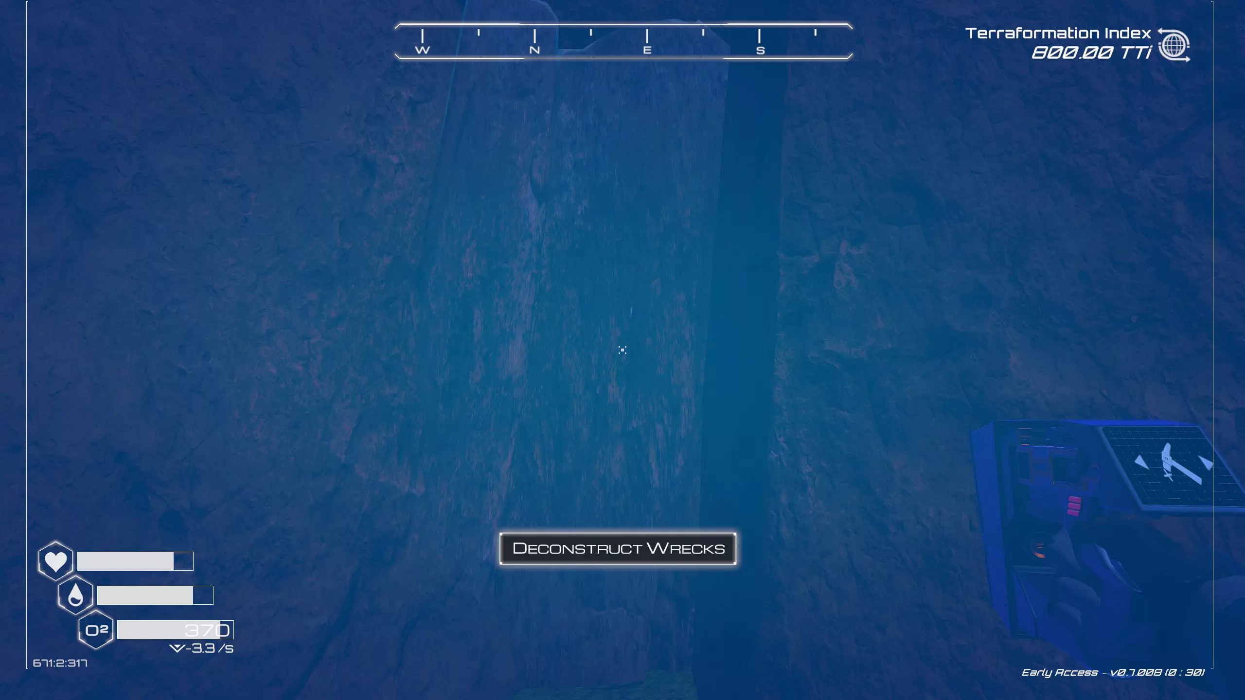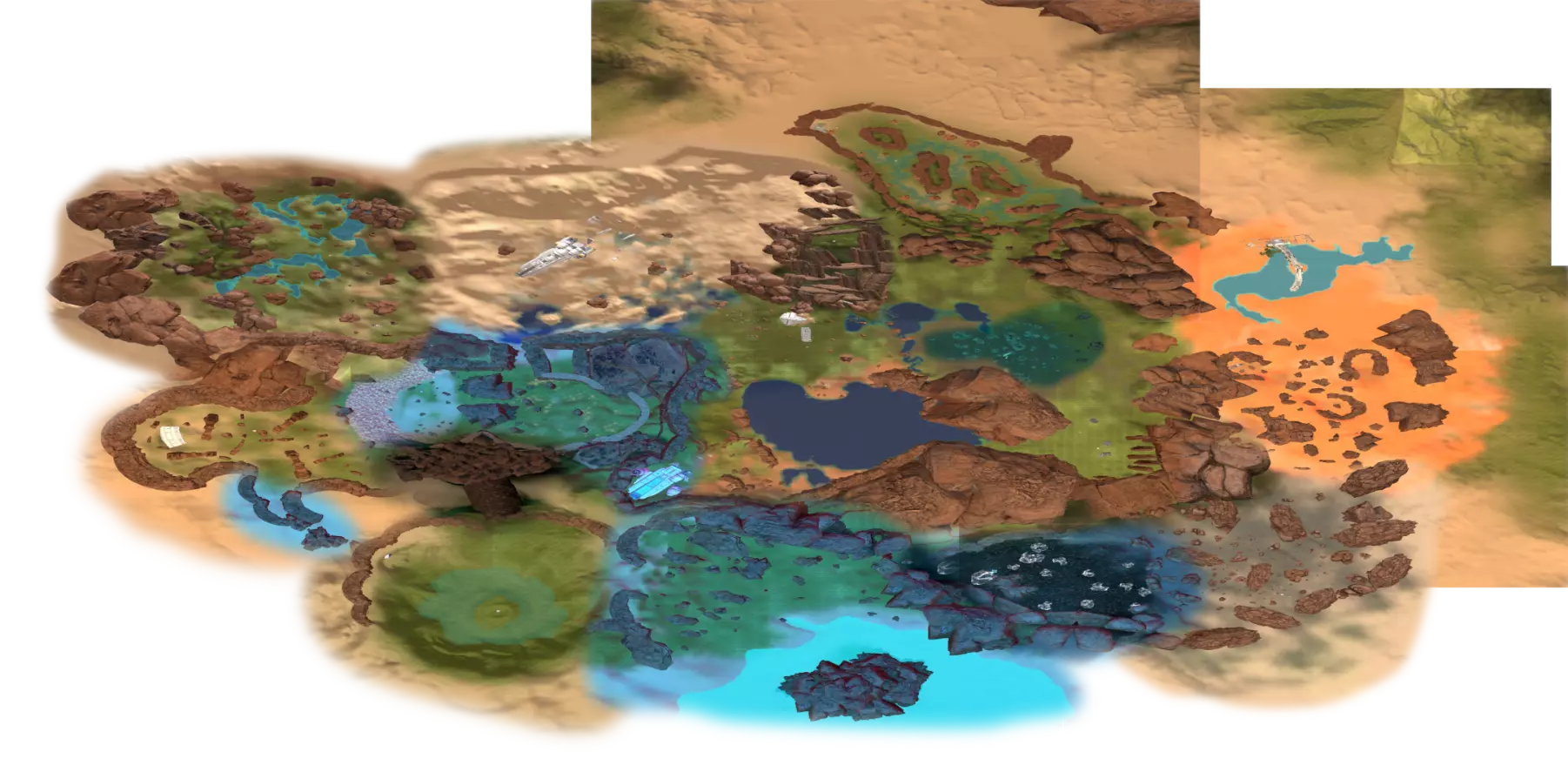 残骸笔记: 一半的残骸会沉入水下。我的建议是在液态水阶段前搜刮这个区域。 峡谷峡谷之类的地方(因为确实是这样...) 战斗机“喷气式”残骸和芯片箱