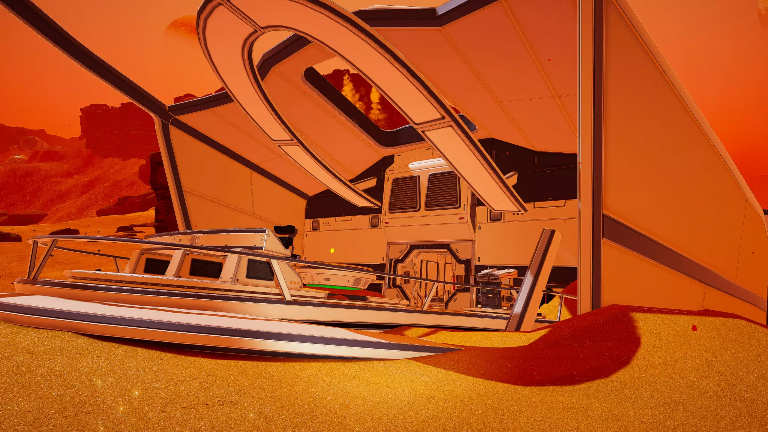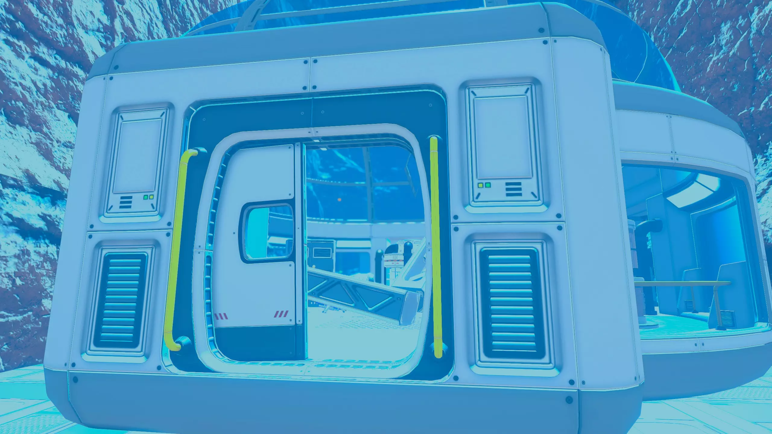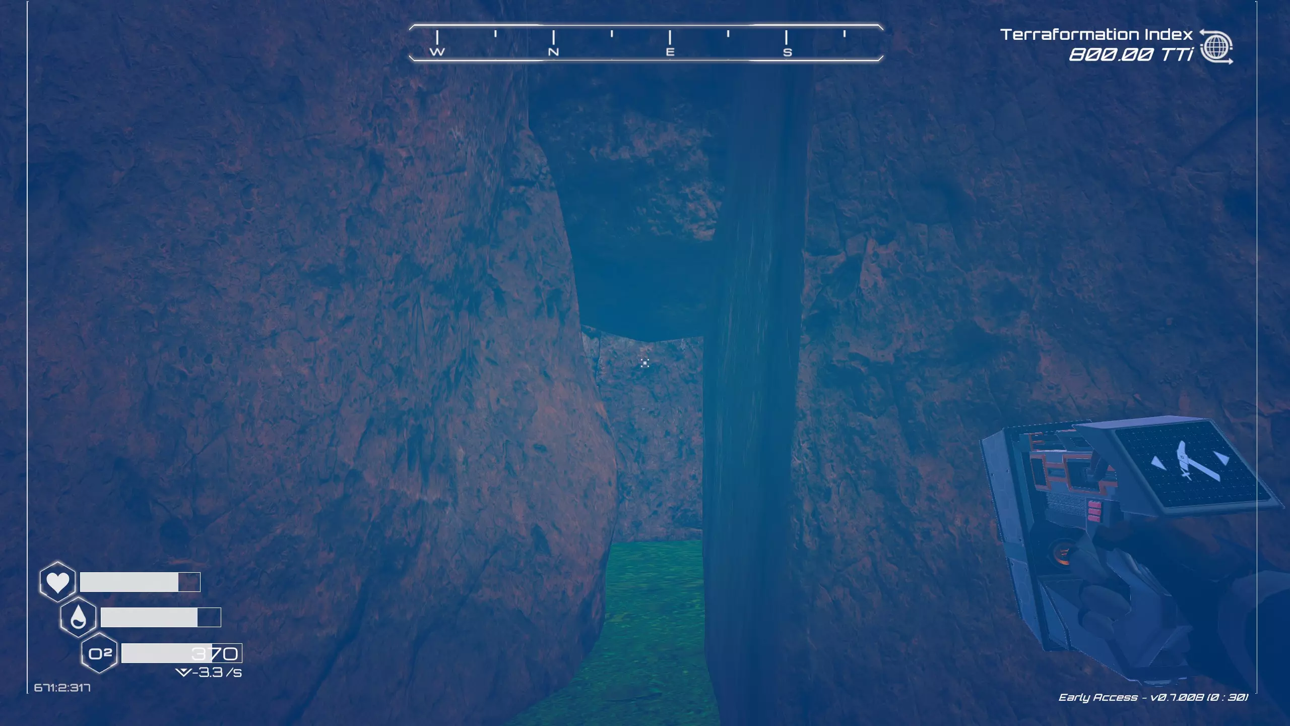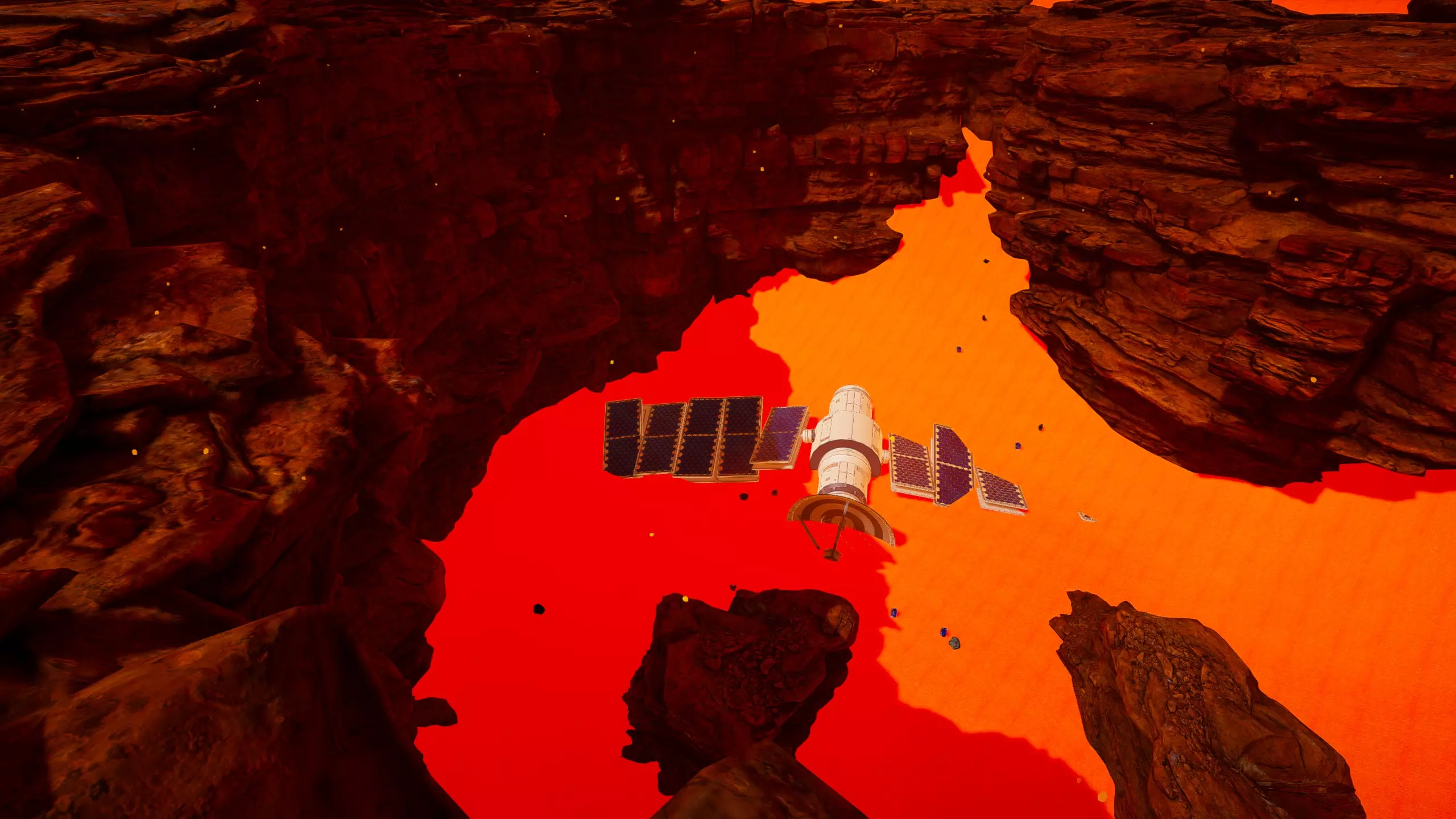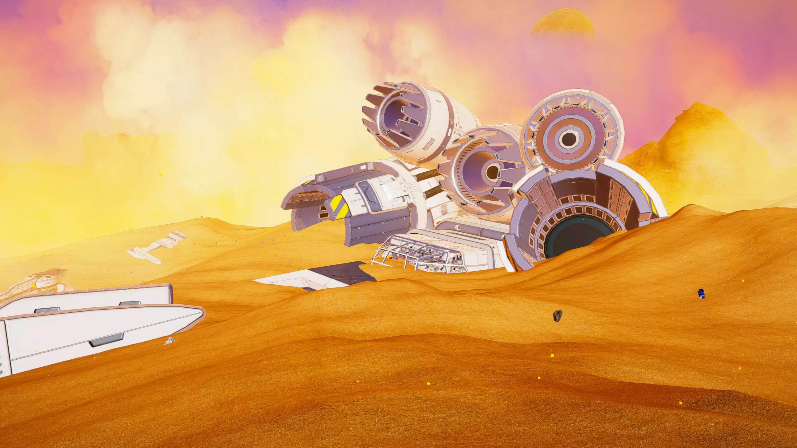 残骸笔记: 一半的残骸会沉入水下。我的建议是在液态水阶段前搜刮这个区域。 峡谷峡谷之类的地方(因为确实是这样...) 战斗机“喷气式”残骸和芯片箱