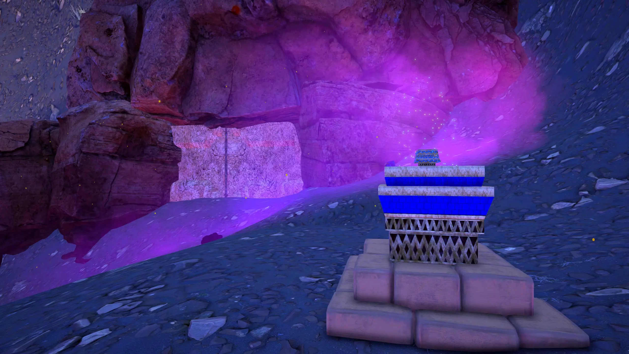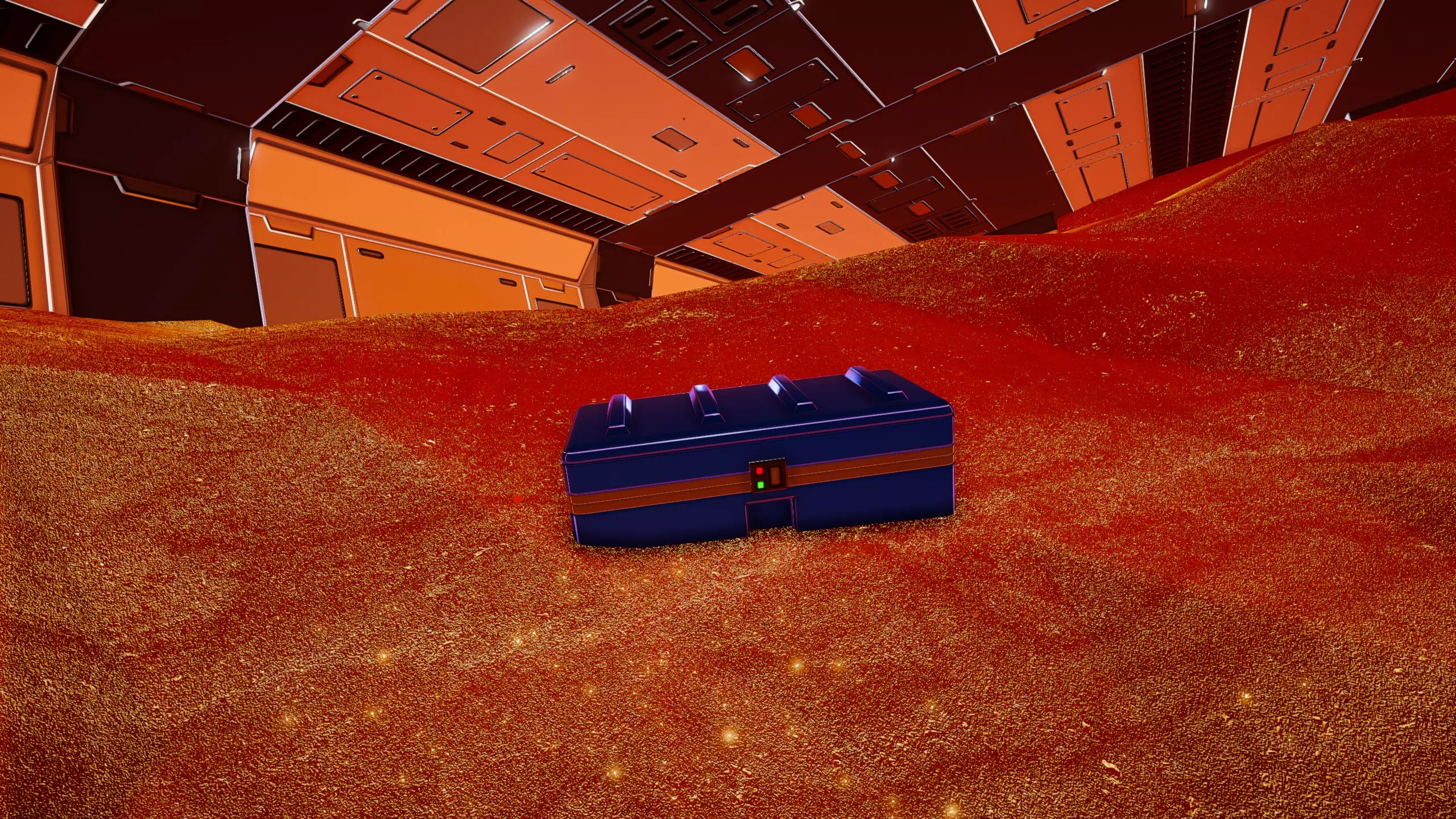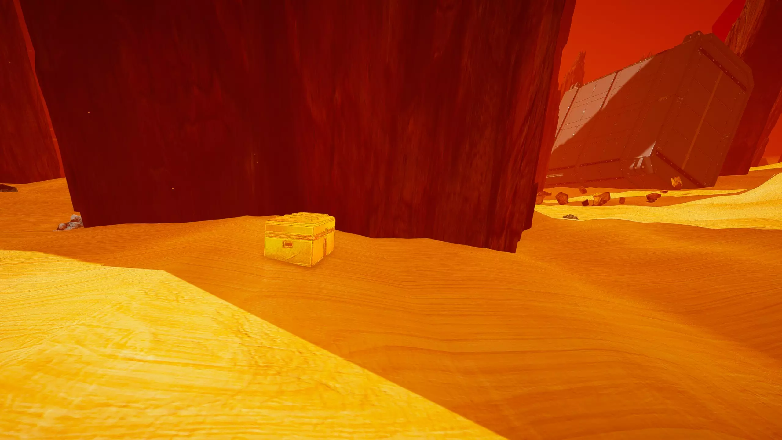 出于情感原因保留了这部分内容 开发中声明 在制作过程中,我发现原本以为是自己记忆出错的问题,实际上可能是游戏本身的设定。 蓝色芯片箱和其他芯片容器可能并不在我之前截图的蓝色箱子里,而是随机出现在地图各处的蓝色箱子中。可能需要进行更多测试,也需要重新访问更多飞船,这已经不再像是一个个人兴趣项目了。 希奥丹休息湖床或标准起始区域 黄金宝箱