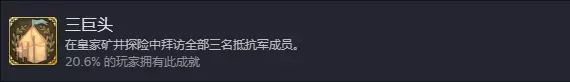 在一个城镇中可以接到一个奖励为烟斗的任务,要求探索蜘蛛洞穴。在洞穴通关后的宝箱中,有开启最后橡树迷宫隐藏房间需要的钥匙。除了以上成就外,在本章沼泽地区域可以找到地精斗技场,击败里面的灭蟾者后他会加入队伍,同时完成解锁佣兵【大地精勇士】的前置条件。 第三章:皇家矿井 挑战目标: 1. 熟悉的面孔:在维克堡击败格里姆肖。在沼泽地区的城镇有一个特殊任务,奖励为维克堡的钥匙。通关维克堡后,格里姆肖会加入队伍,同时完成解锁佣兵【格里姆肖】的前置条件。 2. 赶时间:在50回合内完成冒险。 3. 淘金者:摧毁一辆女王的宝藏矿车。在上方进度条显示为金色矿车,炸掉矿车会获得战利品。炸矿车的方法是在其必经之路上放置炸药桶,在炸药桶效果结束前让矿车撞到它即可引爆。爆炸具有范围伤害,需要先将角色拉开。【该成就以前需要炸毁三个宝藏矿车,且宝藏矿车出现时间较晚】