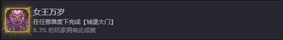 密室就是关押海盗的房间,完成挑战目标1即可。 第五章:城堡大门 挑战目标 神秘顾客:参观女王城堡中隐藏的市场,也就是第五章的密室。该密室钥匙可在女王城堡第一层的战利品中随机获得。据了解可能存在未获取的情况,但个人为完成成就多次刷第五章时,每次都能获得密室钥匙。 帮助本地人:帮助并获得所有法汝居民的青睐。需完成四个地区的城镇任务,任务显示为问号,奖励为三个学识之书。 具体城镇任务如下: - 沼泽城镇任务:通关沼泽的六级地下城,通关后完成解锁佣兵小骨布吉的前置条件。 - 海上城镇任务:通关海盗藏身处。 - 燃烧森林任务:击杀一只四级混沌果冻。 - 金色平原右侧城镇:击杀两只女王巨魔。完成任务后,这些居民会在女王城堡一层的前四次战斗中,按照玩家完成任务的顺序进行支援。第四场战斗支援完成后,才会提示挑战完成。赶时间:在50回合内完成冒险。