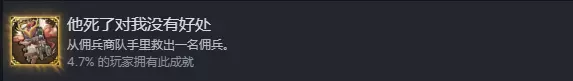 通关成就 佣兵解锁成就 佣兵的解锁条件已在各章的收集要素中说明,只要存档内存在已完成前置条件的佣兵,新开始的下一局游戏(第五章除外)会在第一个地区外围刷新一个带有紫色光芒的佣兵囚车(无需探索问号,可直接看到)。战斗胜利后,会在可解锁的佣兵中解锁一个(需在学识商店购买)并使其加入队伍。