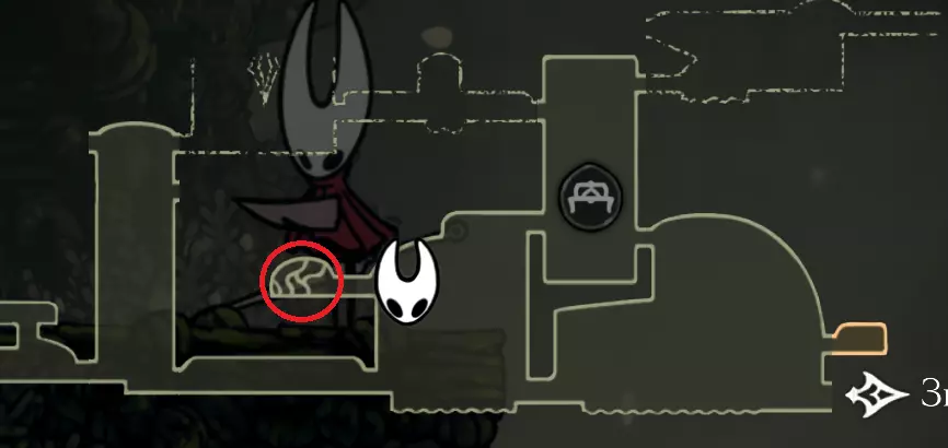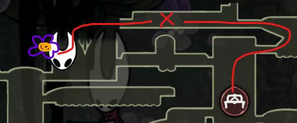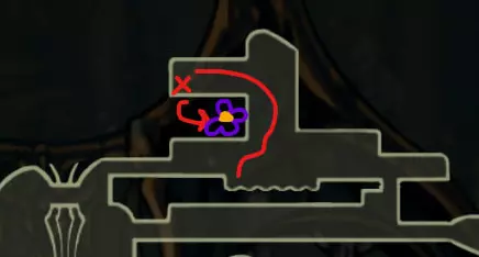 通往这朵花的路径(含电梯路段)会有一个 Boss 阻挡,它在地图上以十字标记,所以最好在长椅处存档。