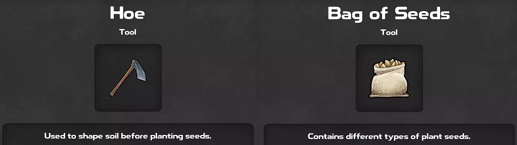 种植并收获任意6种不同类型的植物。达成此成就需要一把锄头和一袋种子。下方图片展示了7种可种植和收获的植物类型,但你只需其中6种即可完成该成就。