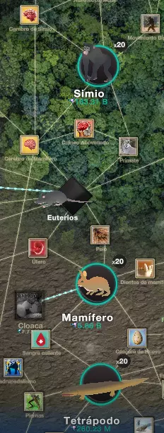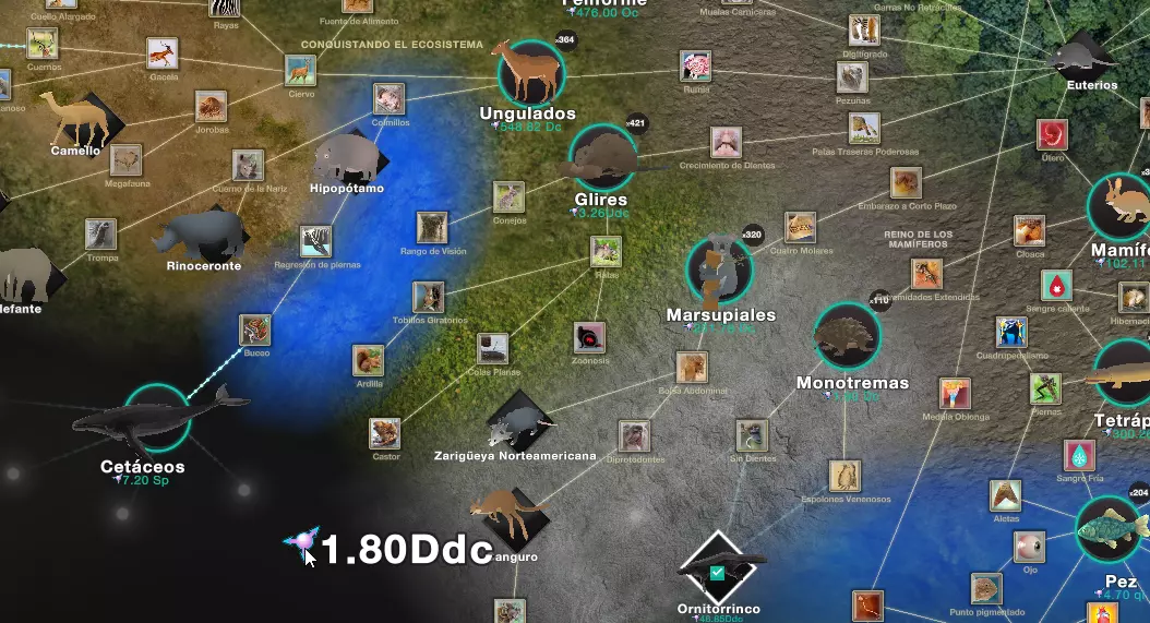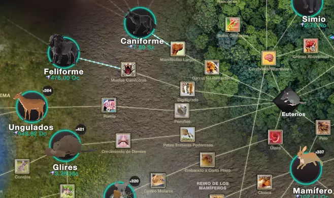 进入那里后,我们会发现一些浮动图标,需要用熵来购买这些图标,以便通过进化树进行升级。