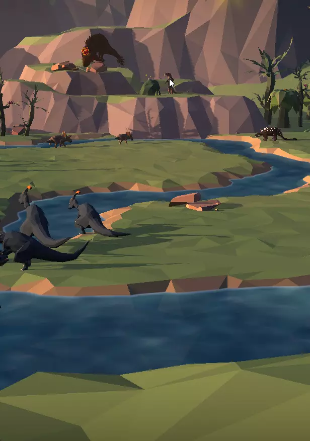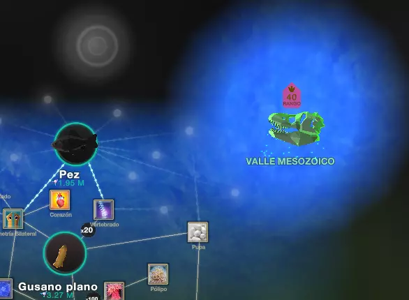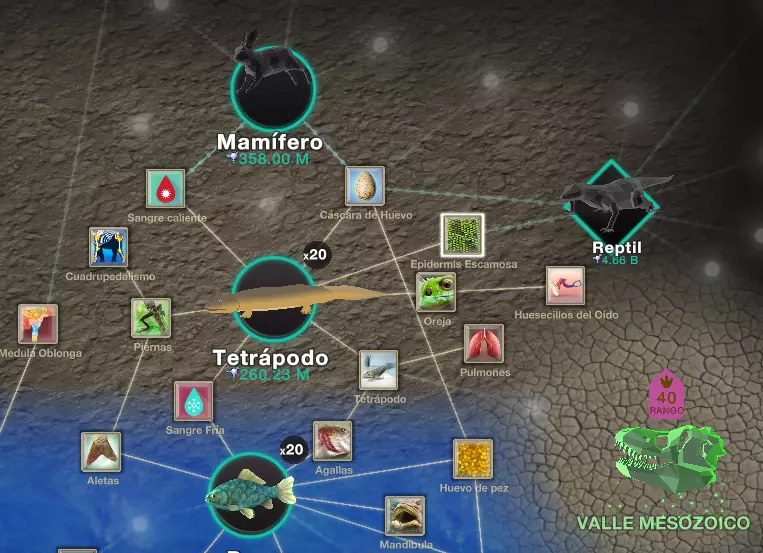 到目前为止,我们应该已经明白这款游戏的玩法了,就是通过点击来升级进化树(一直点击并等待数小时来升级进化树并不是很有趣)……如果你不喜欢这类游戏,现在就是回到正常生活、不再没完没了点击的时候了……或者说甚至更久,但如果你想尝试一下或者喜欢这类游戏,那就继续往下读吧。 从原核细胞到……真核细胞,再到海绵,从海绵到水母,从水母到扁形虫。在这一点上,我们会看到一个漂亮的绿色恐龙头部渲染图,点击它会带我们前往中生代山谷(你可以直接进入,但为了方便本指南,我会稍后再进行)。