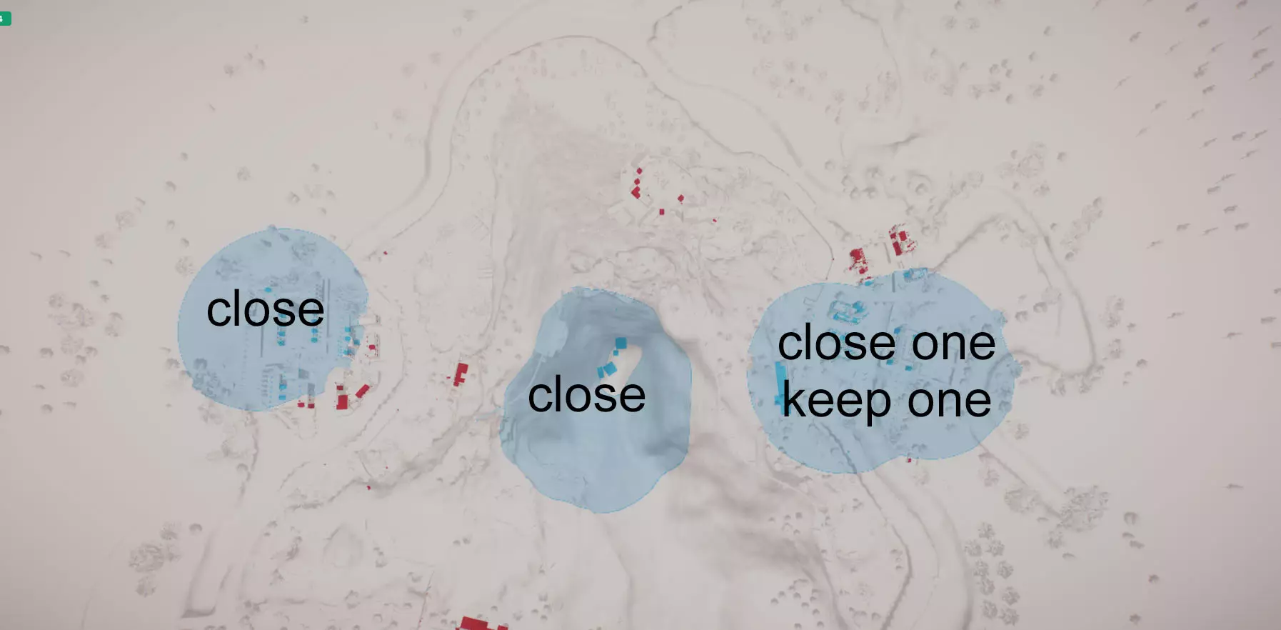 关闭其中三个(操作方法是点击生成点并关闭“对游客开放入口”选项)。我的建议:
