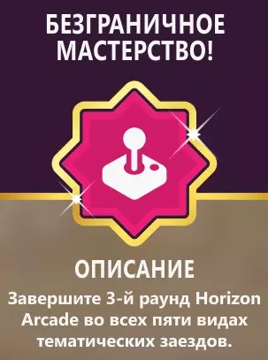 无界精通!完成5种主题赛事的地平线街机第3轮。完成地平线街机的全部5种赛事类型【速度、漂移、腾空、混乱、碰撞】,并完成所有三轮。开始活动前确保有足够数量的其他玩家,否则将无法完成。查看成就【初次体验】中关于地平线街机模式的说明。参与地平线街机赛事时,【拥有“拉卡萨索拉耶哈”住宅】(非必需)会更好,这能让你获得双倍的极限竞速马拉松点数。 留意你需要的赛事出现在哪个区域。如果附近有玩家住宅、前哨站、居民区、其他大型设施(如体育场、跑道)等,遇到其他玩家的几率会更高。请在比赛开始前到达现场,以便查看是否有其他玩家。游戏需要时间在特定区域内将玩家相互匹配。与其在剩余时间内加入赛事,不如直接错过该赛事。 不同的比赛项目和玩家等级对应不同的最低玩家数量要求。建议在比赛开始前确认附近至少有五名其他玩家。尽量使用准备好的车辆。特定项目中拥有高等级性能和开放的【汽车达人】奖励。 在回合切换以及在可能相距较远的比赛区域之间移动时(取决于比赛中的具体任务和快速移动功能的可用性),建议使用快速移动。