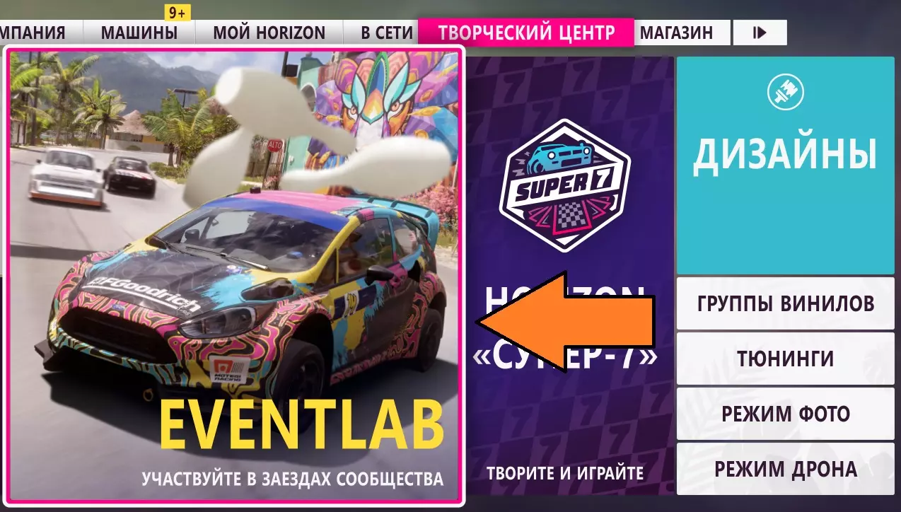 封面照片:拍摄2021款梅赛德斯-AMG ONE以宣传地平线。 获取或在汽车商店以2700000 CR购买2021款梅赛德斯-AMG ONE并进行拍摄。可以拍摄其他玩家的车辆,或在比赛中从【超级跑车】类别中选择自己的车辆进行拍摄。 或者使用【超级7】模式的方案:打开菜单>创意中心选项卡>地平线超级7>挑战卡片。接下来点击搜索按钮,在最底部输入发布代码130805661
