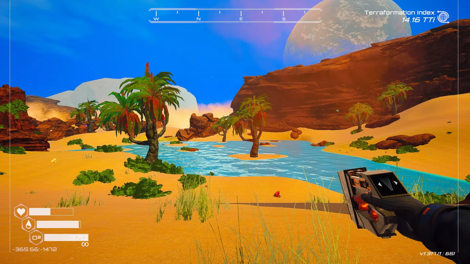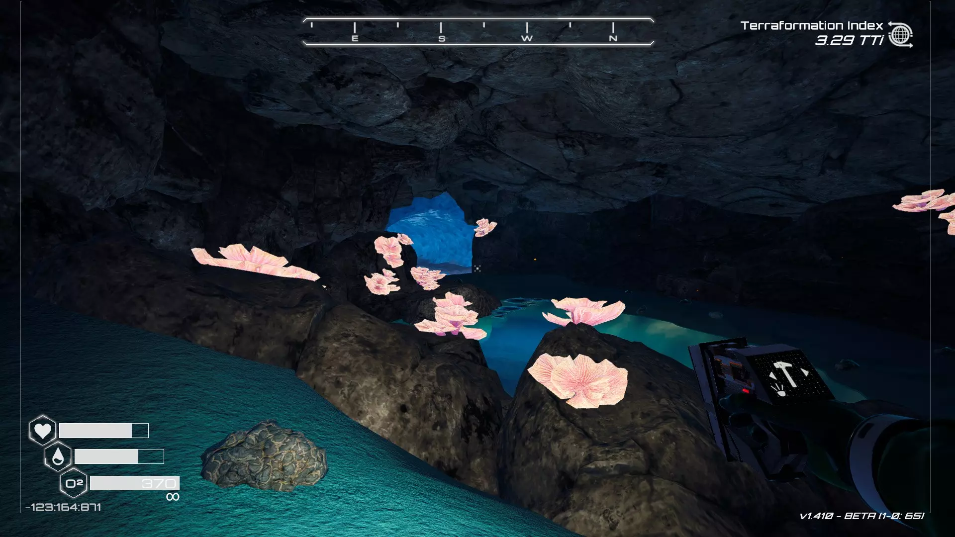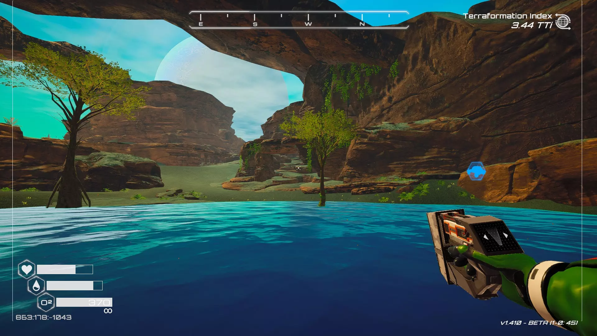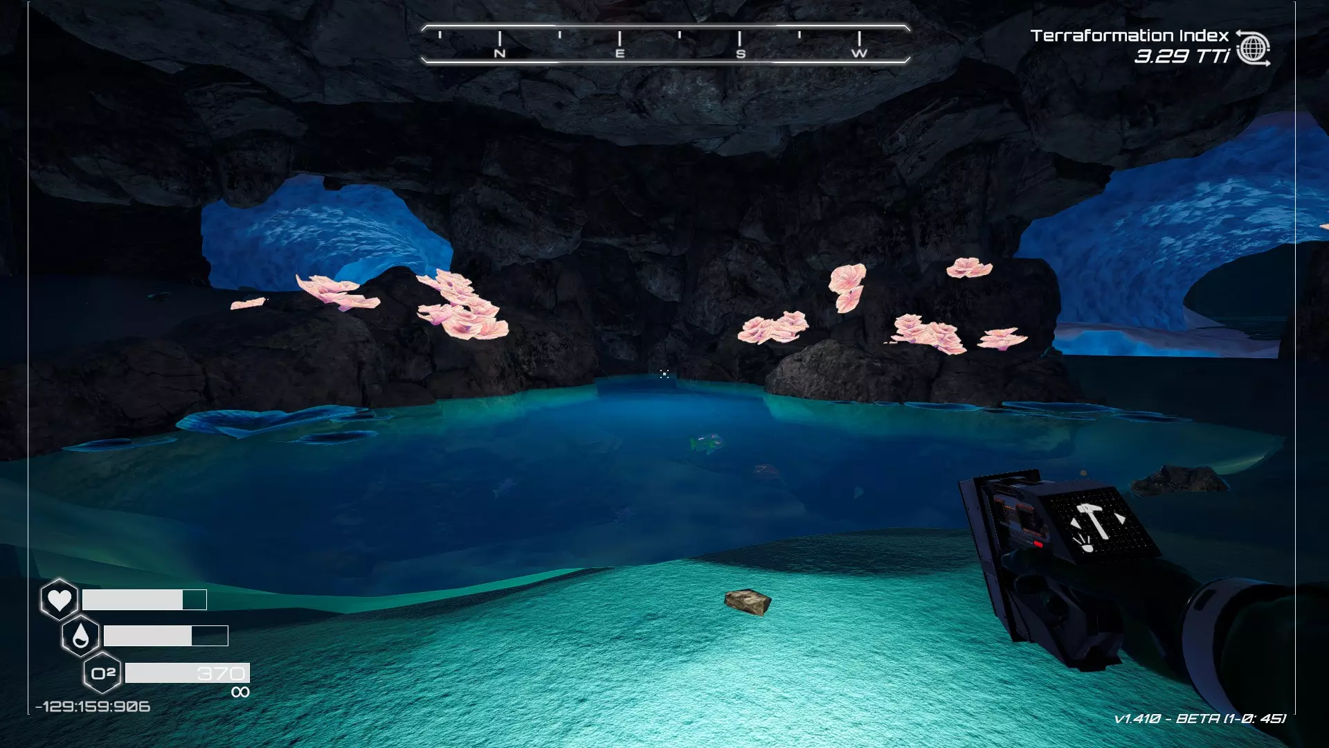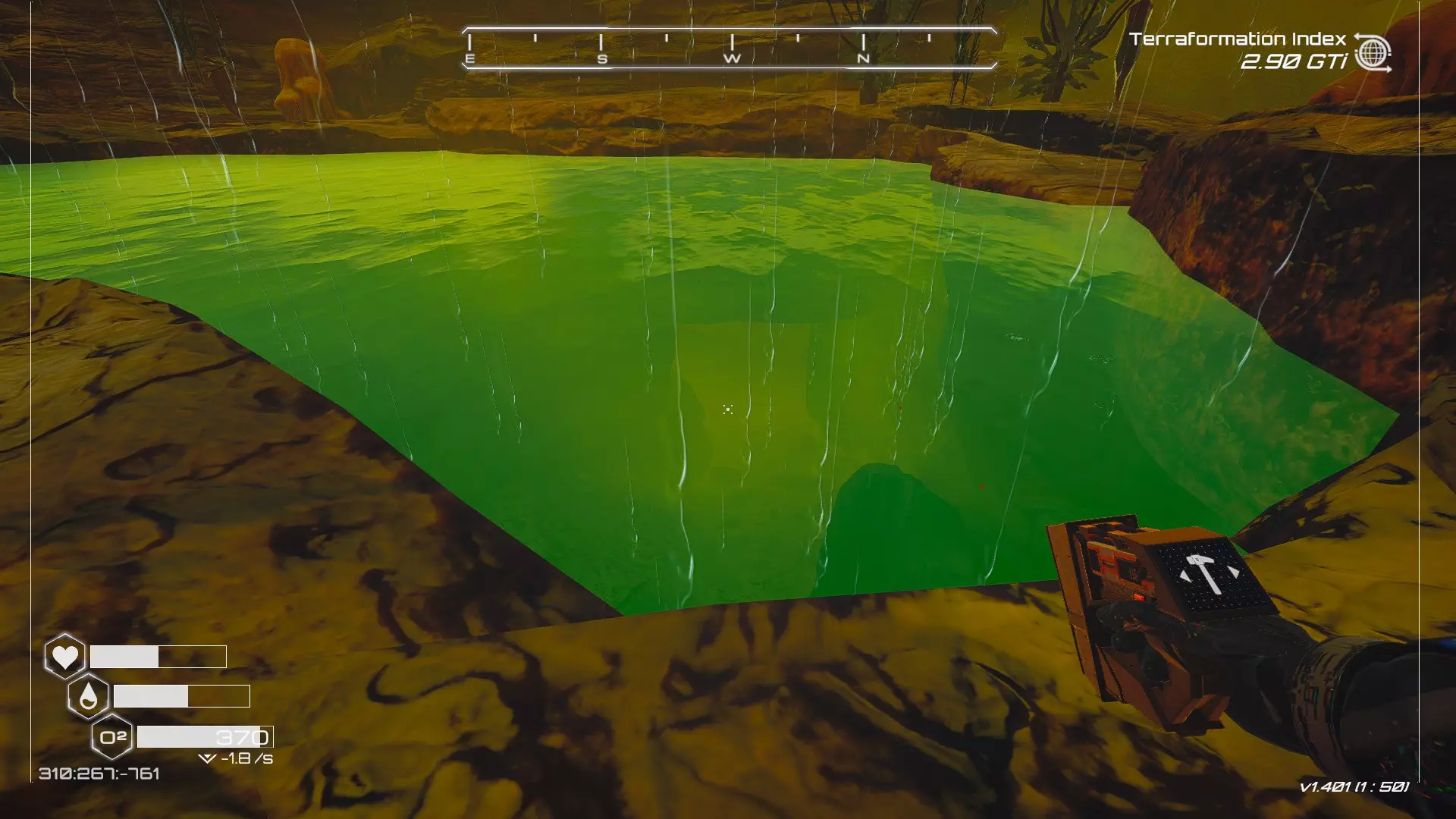 大致坐标:263:333:-692 4. 海滩瀑布宝箱 这个宝箱很容易找到,但需要达到一定的地形改造等级才能发现(我认为是可呼吸大气)。 达到所需的地形改造等级后,地图下方/南部区域的巨大沙尘暴会消散,最终在最低点的悬崖处会有瀑布流下,汇入海滩区域。