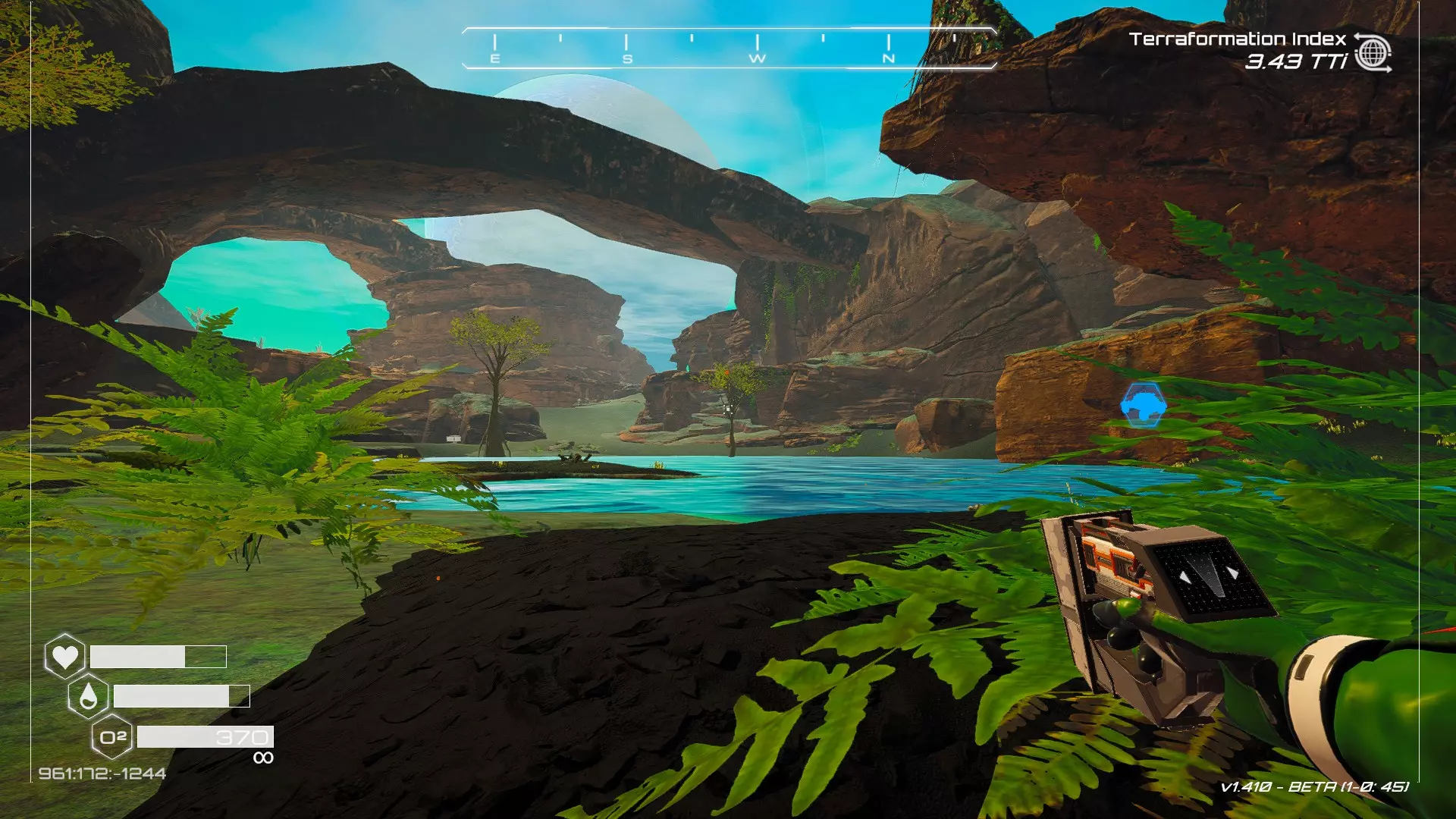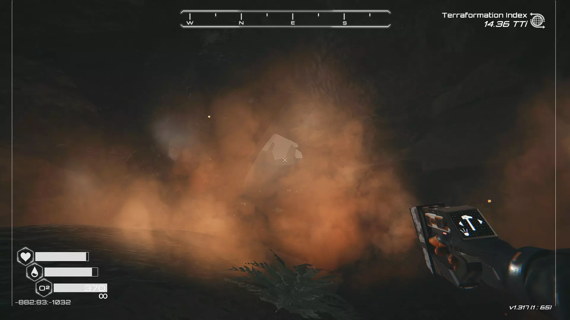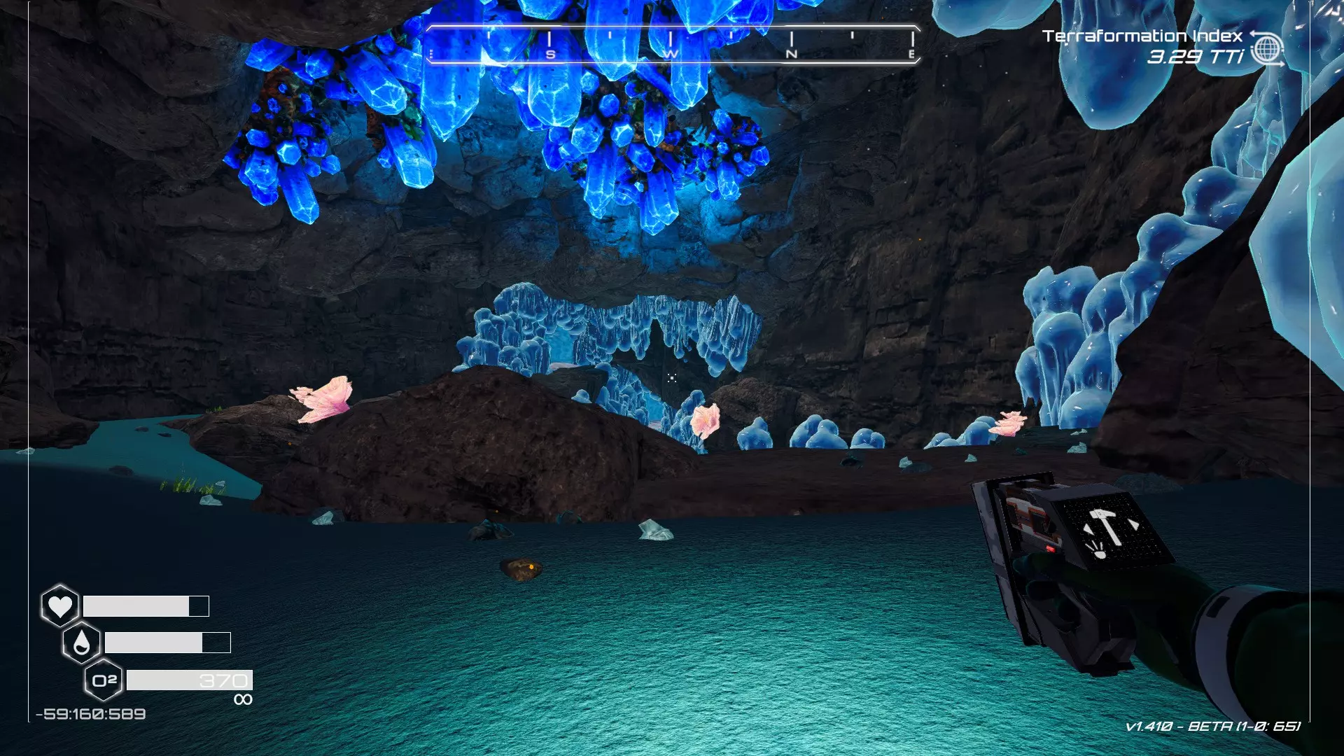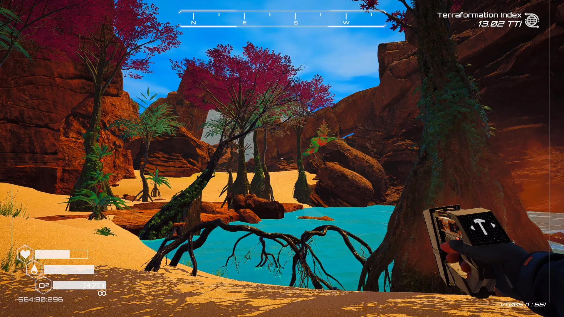 大致坐标:263:333:-692 4. 海滩瀑布宝箱 这个宝箱很容易找到,但需要达到一定的地形改造等级才能发现(我认为是可呼吸大气)。 达到所需的地形改造等级后,地图下方/南部区域的巨大沙尘暴会消散,最终在最低点的悬崖处会有瀑布流下,汇入海滩区域。