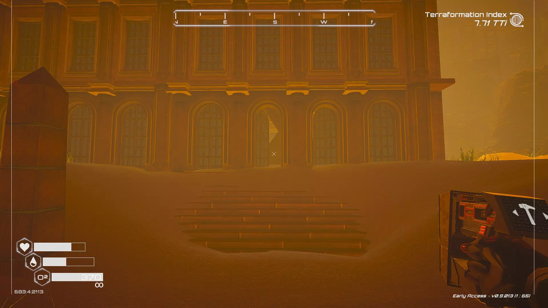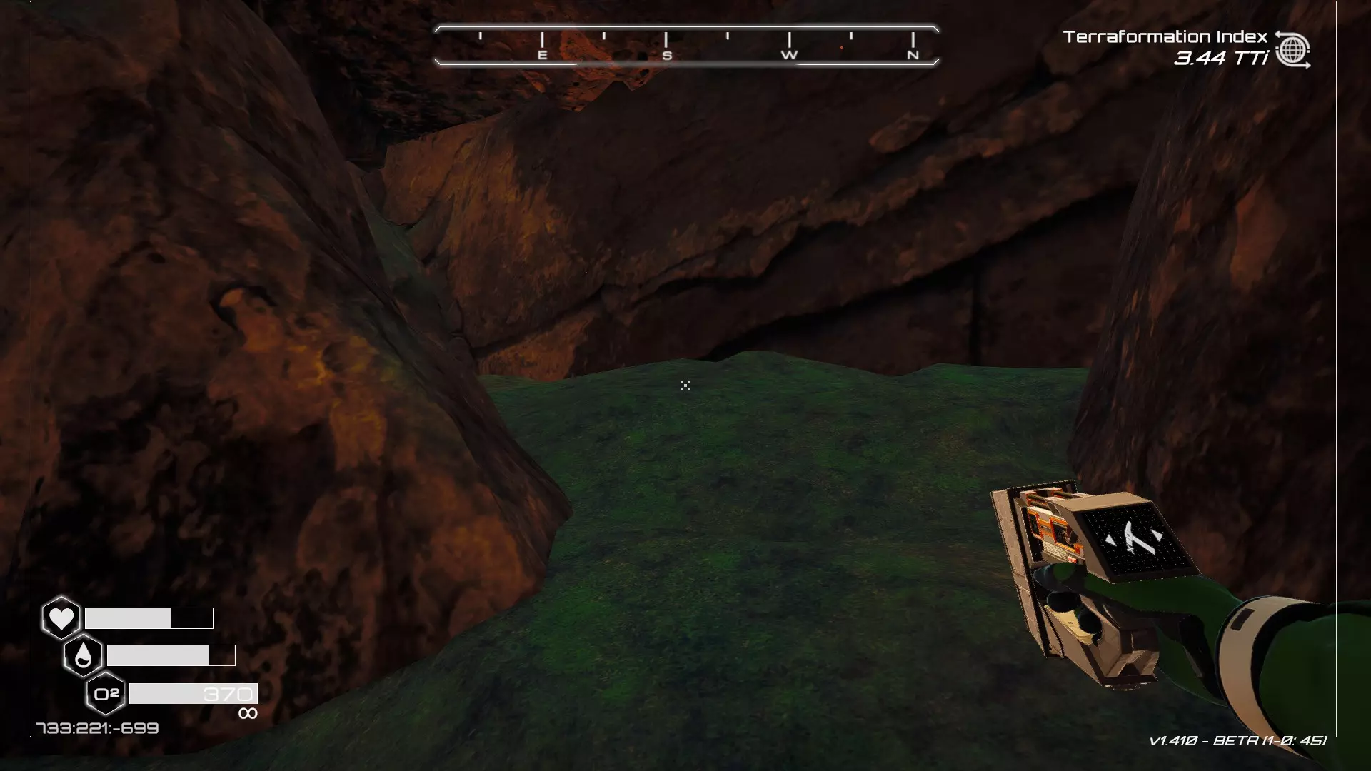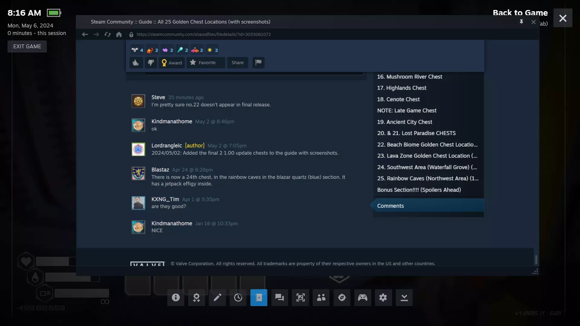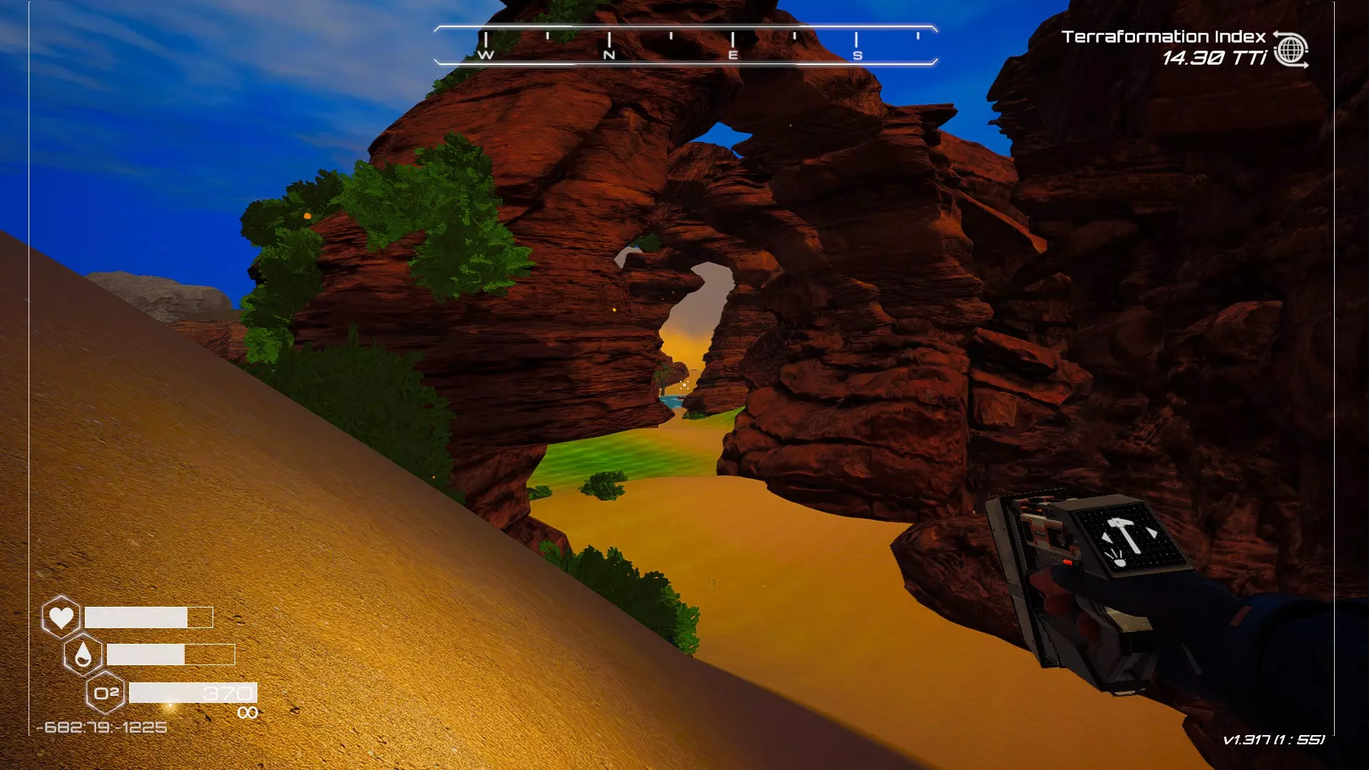 大致坐标:263:333:-692 4. 海滩瀑布宝箱 这个宝箱很容易找到,但需要达到一定的地形改造等级才能发现(我认为是可呼吸大气)。 达到所需的地形改造等级后,地图下方/南部区域的巨大沙尘暴会消散,最终在最低点的悬崖处会有瀑布流下,汇入海滩区域。