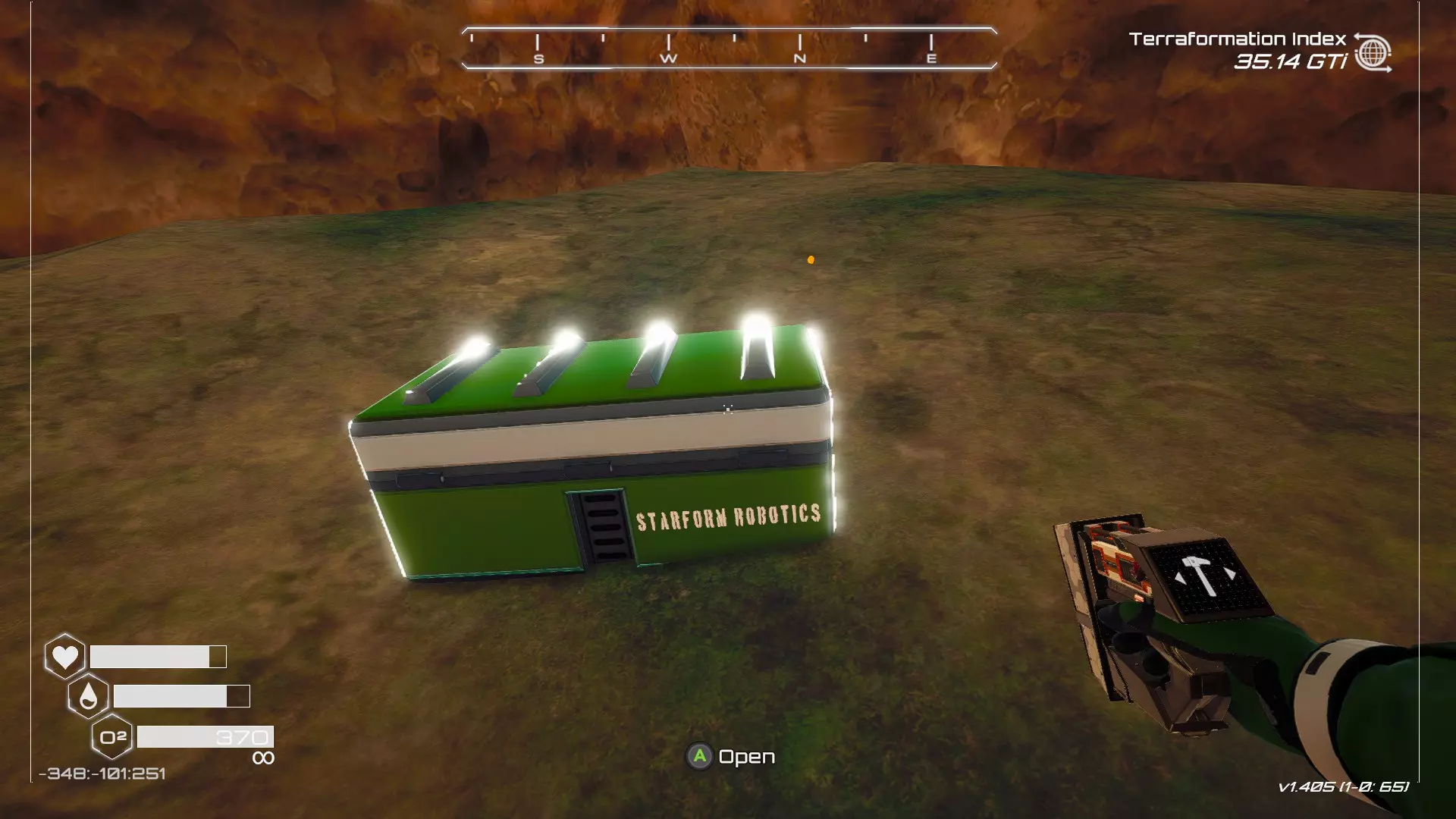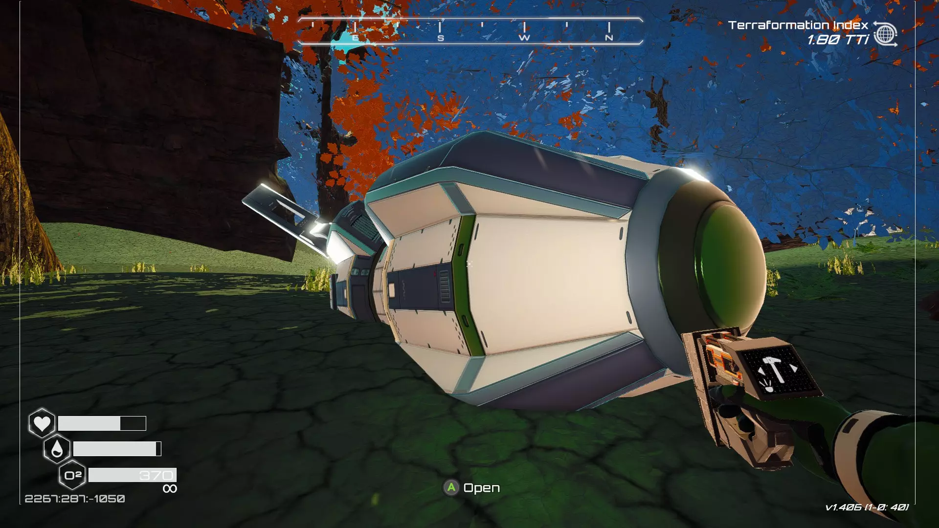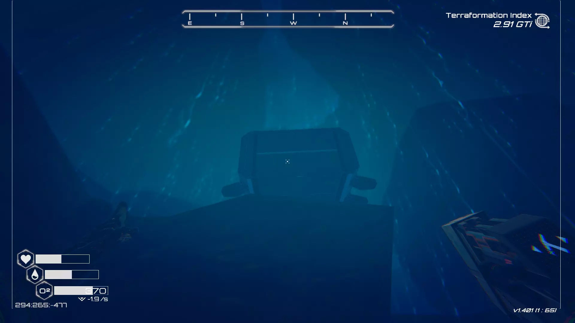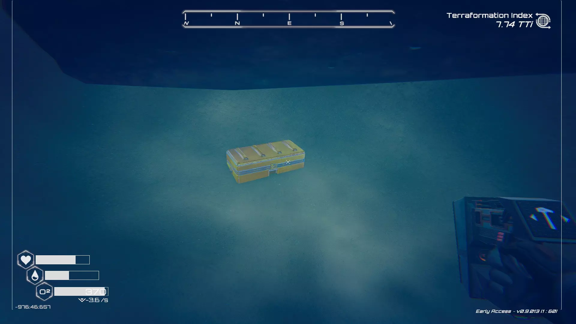 如果你朝北看向宝箱,能在背景中看到登陆舱。 大致坐标:258:27:485 2. 山丘上的坠毁飞船宝箱 从登陆舱位置向西看,你会看到这艘坠毁的飞船在山丘上。