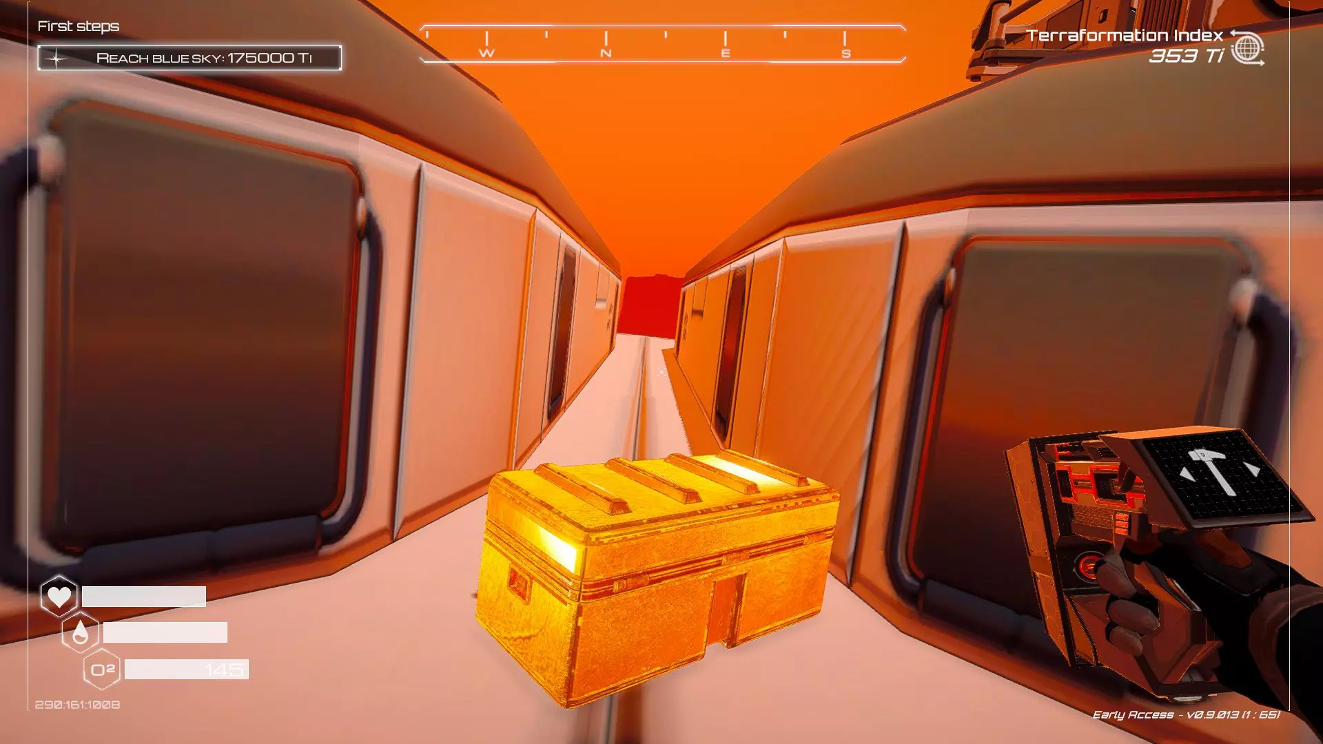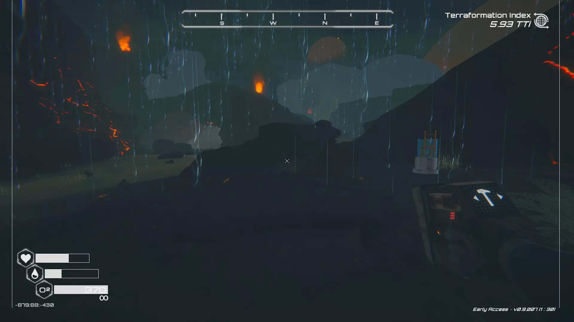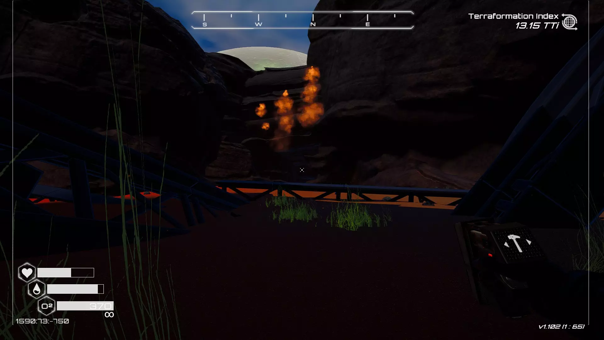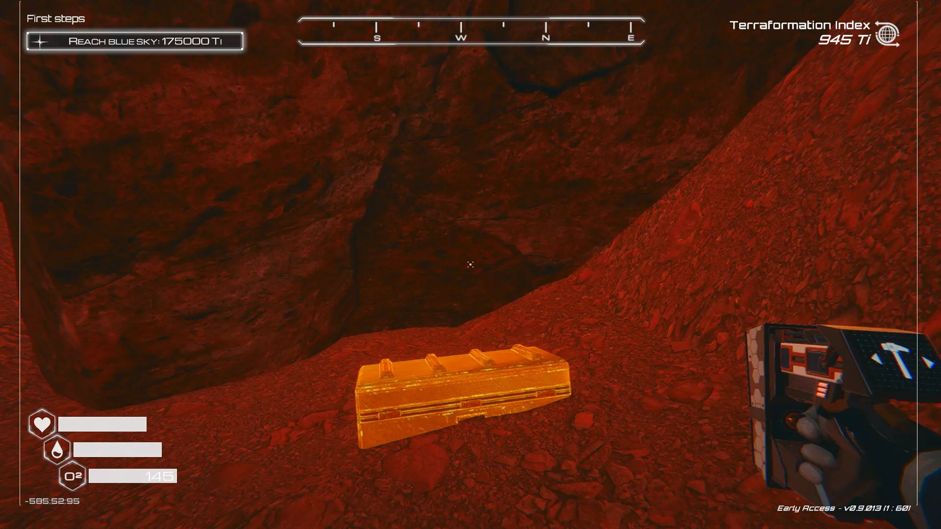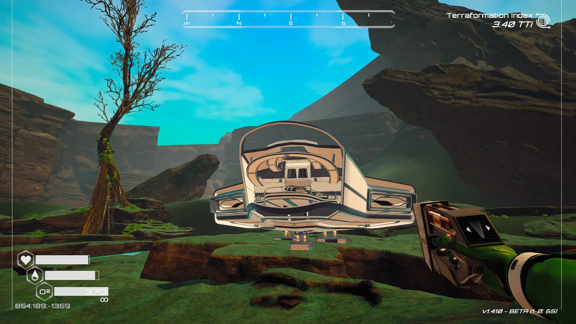 如果你朝北看向宝箱,能在背景中看到登陆舱。 大致坐标:258:27:485 2. 山丘上的坠毁飞船宝箱 从登陆舱位置向西看,你会看到这艘坠毁的飞船在山丘上。