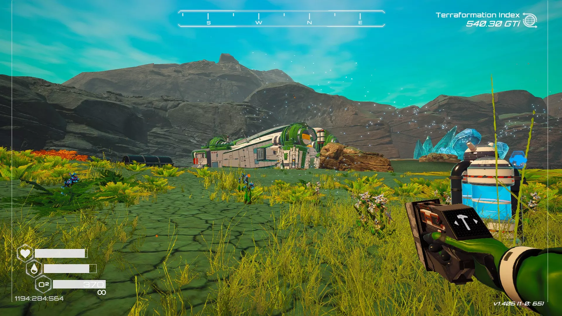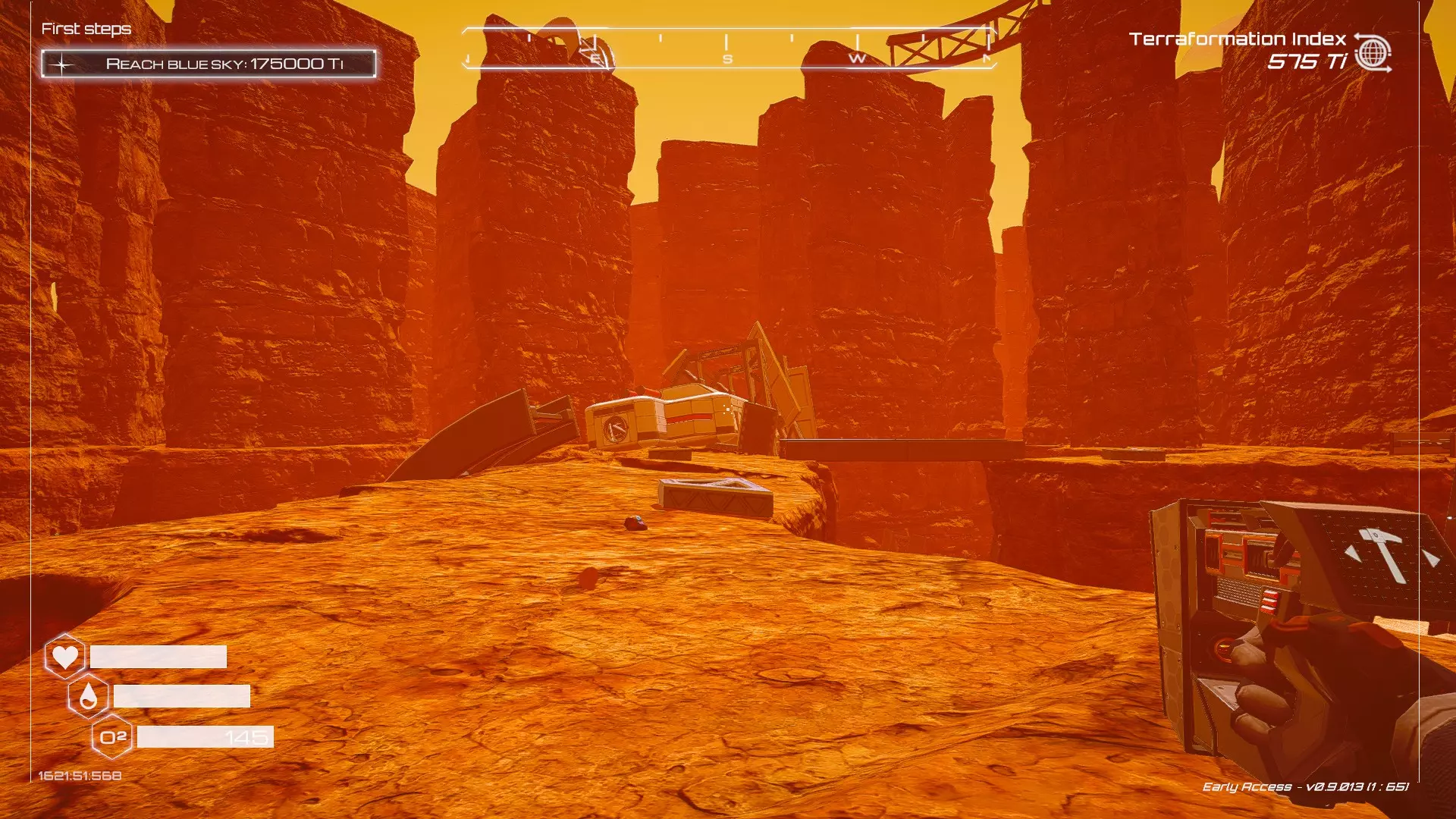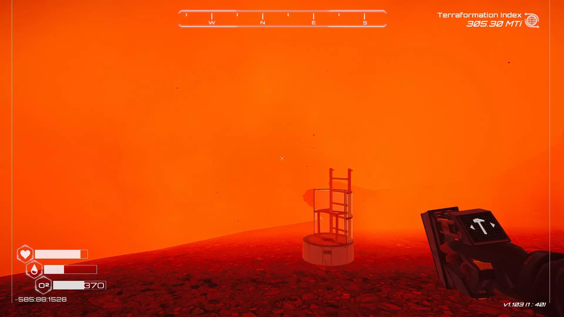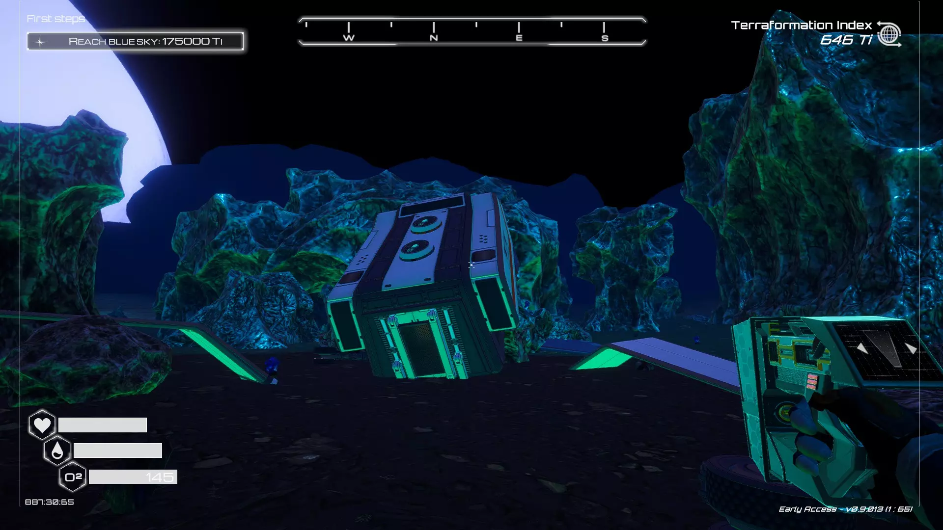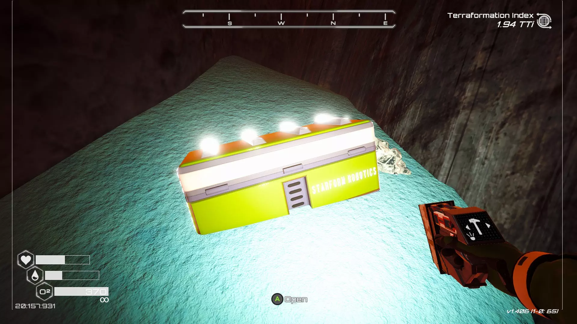 如果你朝北看向宝箱,能在背景中看到登陆舱。 大致坐标:258:27:485 2. 山丘上的坠毁飞船宝箱 从登陆舱位置向西看,你会看到这艘坠毁的飞船在山丘上。