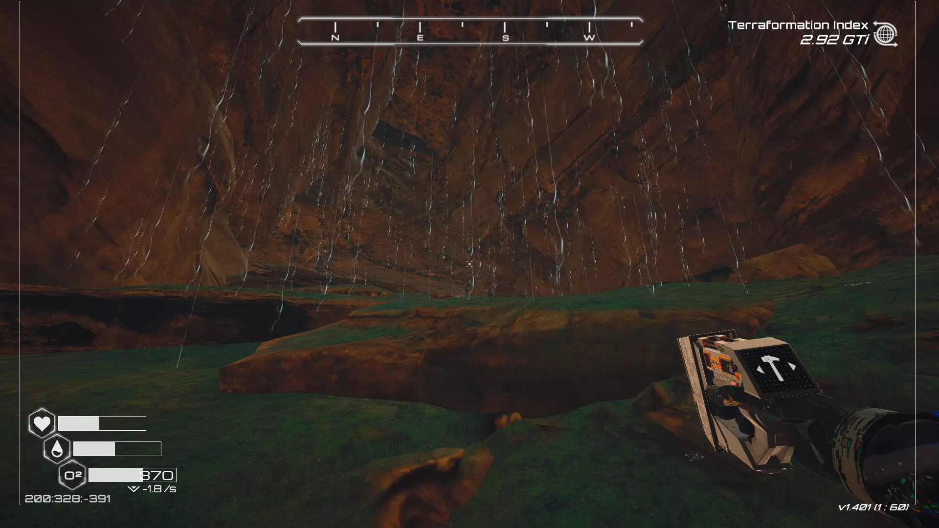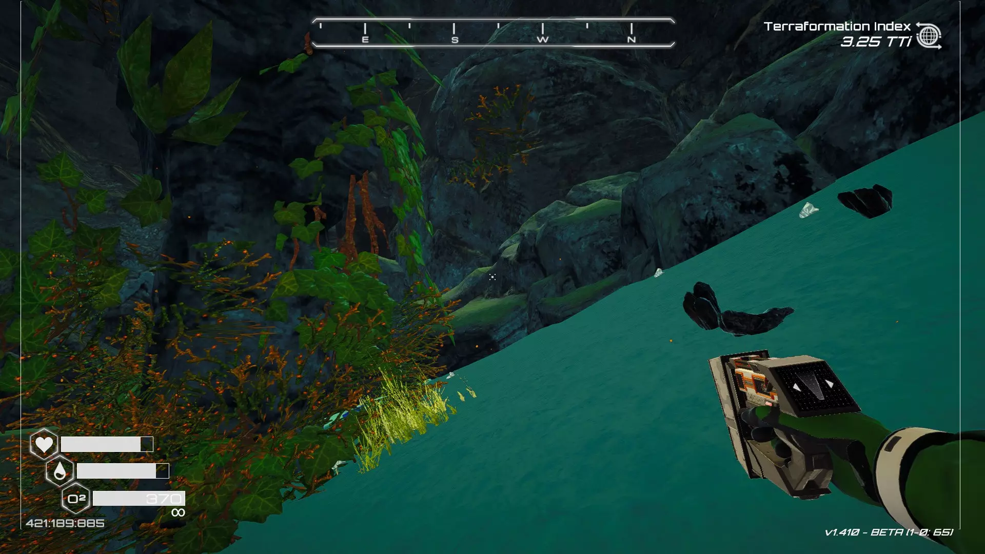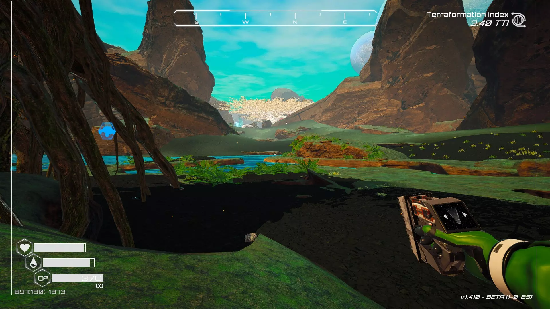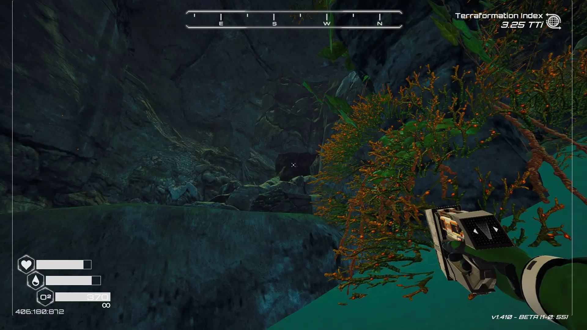 在地球化改造的某个阶段,你会看到瀑布上方有一根粗大的树枝向上延伸,继续往前走就行。下一张图里,你能在瀑布中看到宝箱。