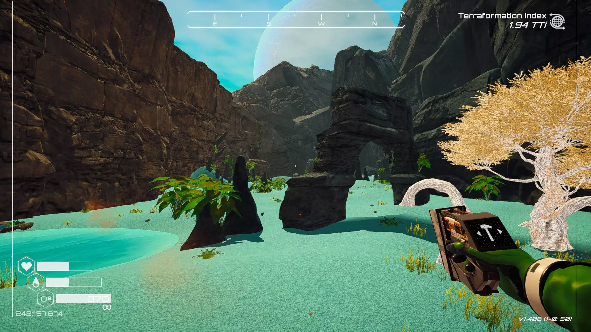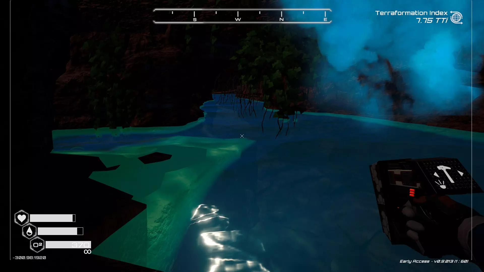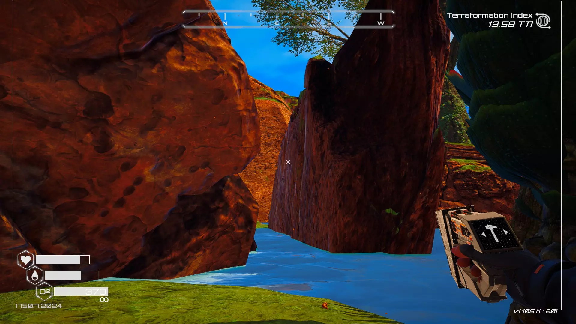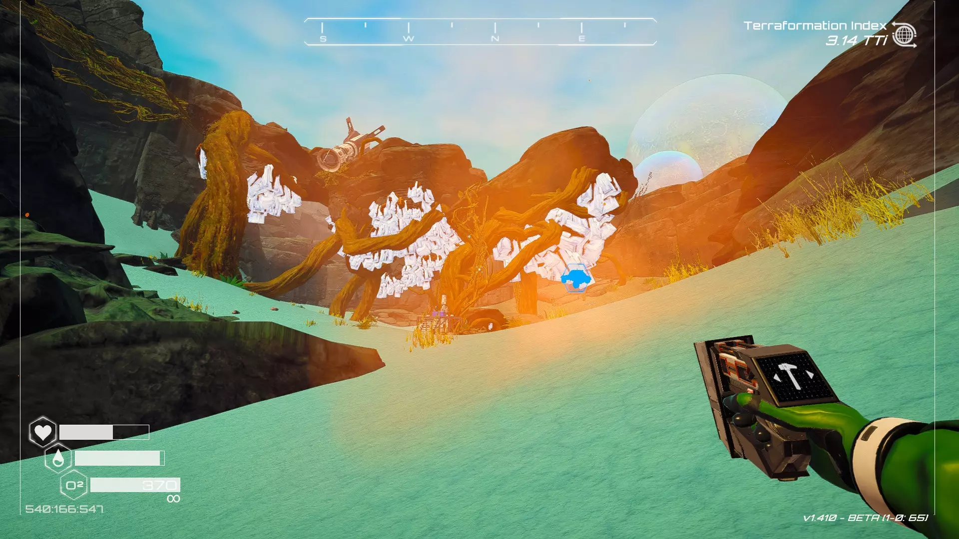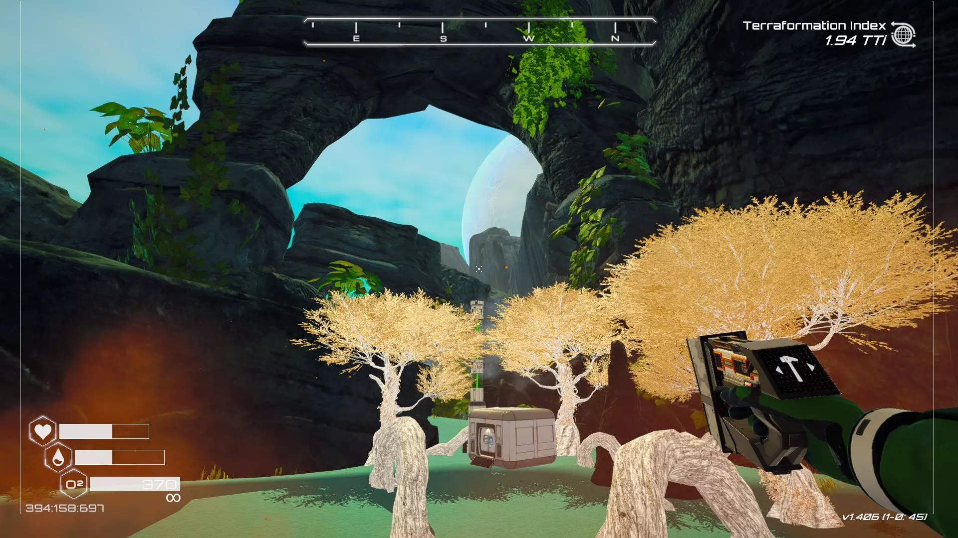 在地球化改造的某个阶段,你会看到瀑布上方有一根粗大的树枝向上延伸,继续往前走就行。下一张图里,你能在瀑布中看到宝箱。