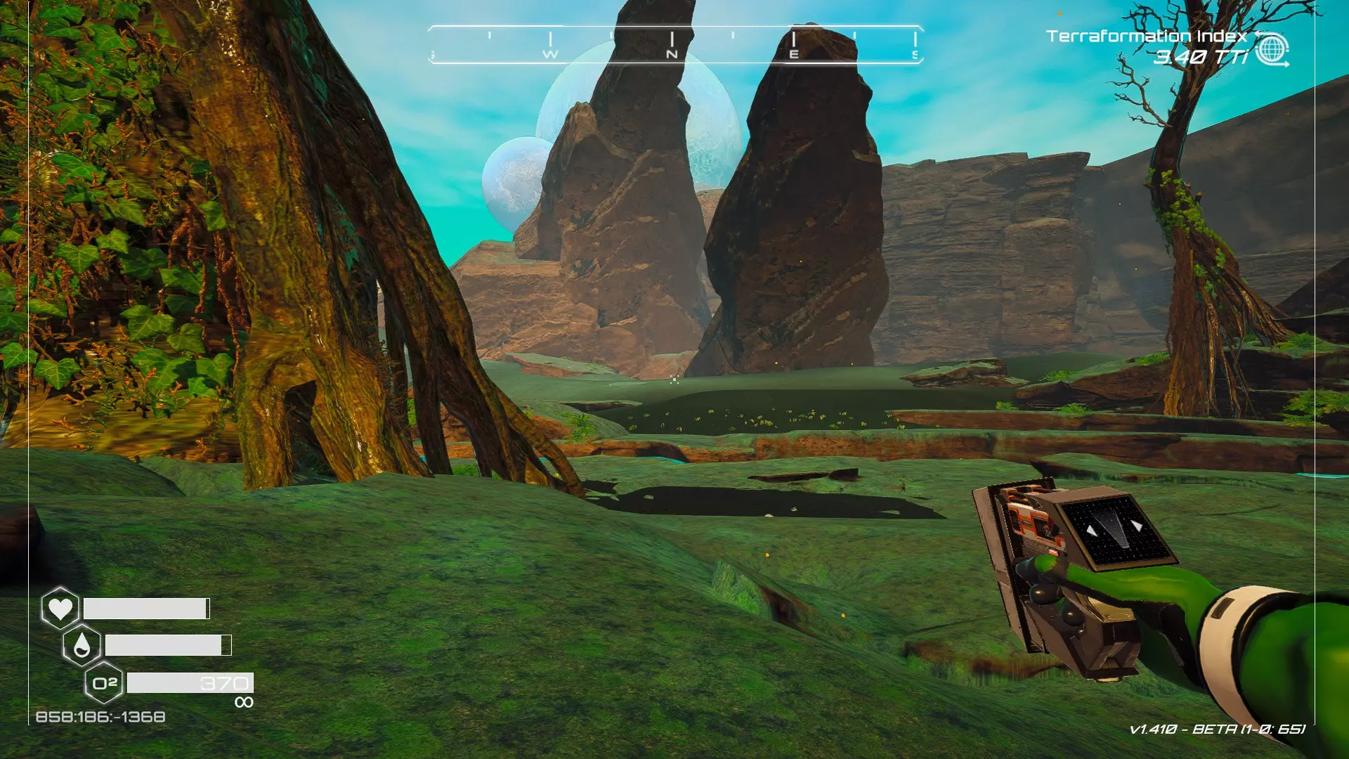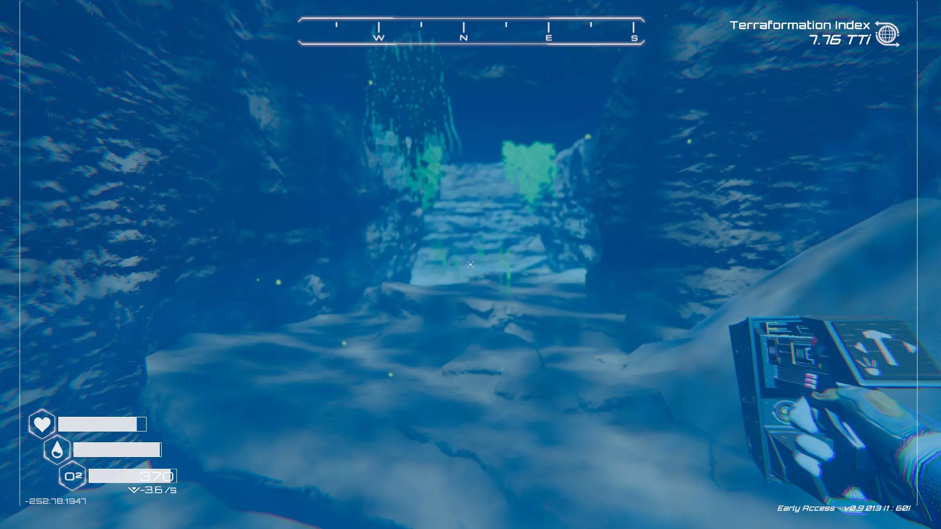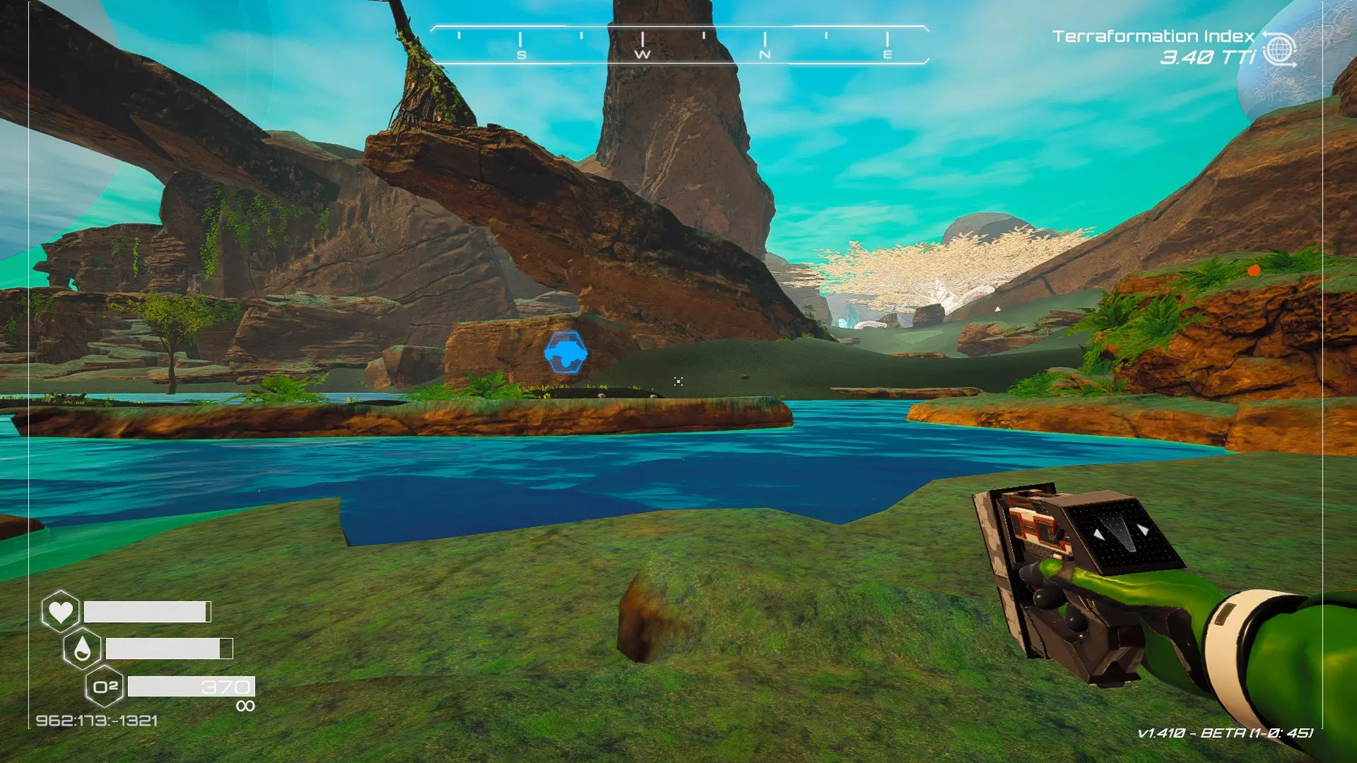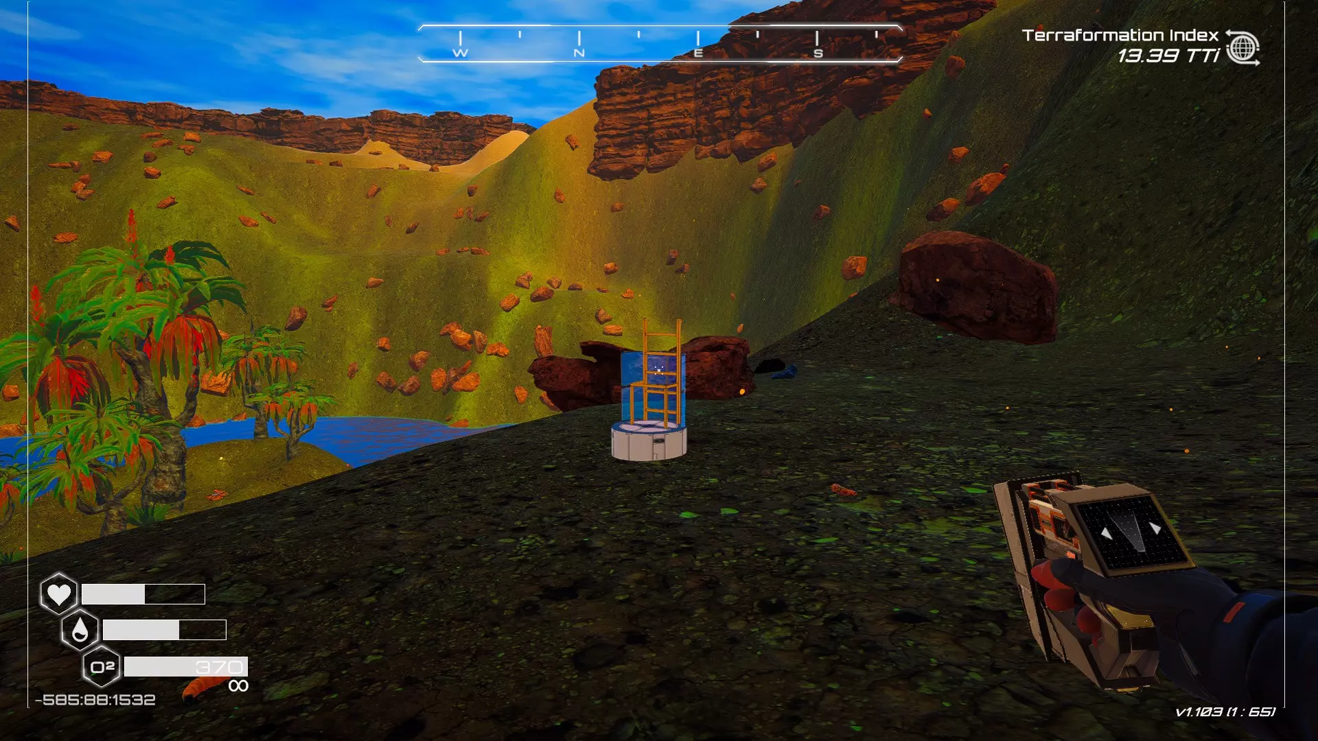 在地球化改造的某个阶段,你会看到瀑布上方有一根粗大的树枝向上延伸,继续往前走就行。下一张图里,你能在瀑布中看到宝箱。
