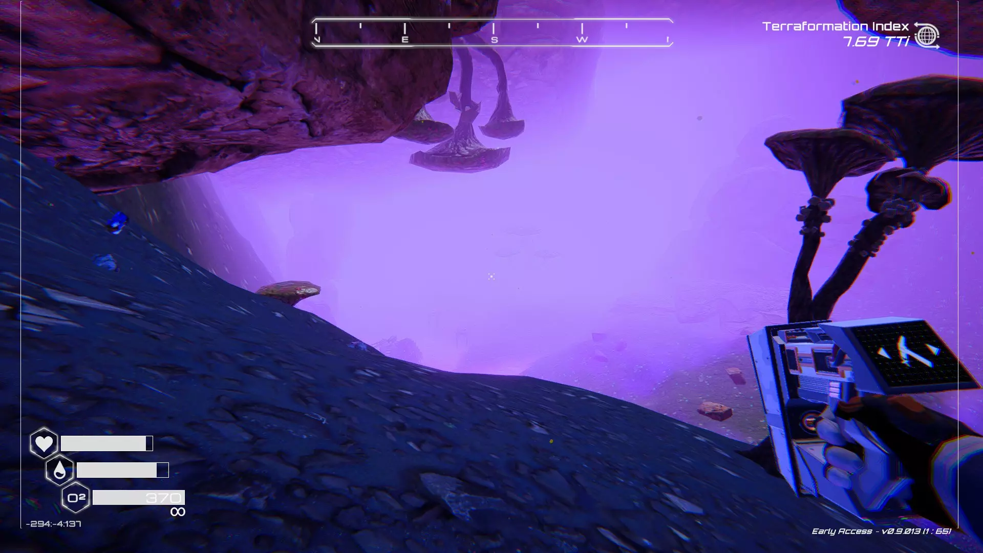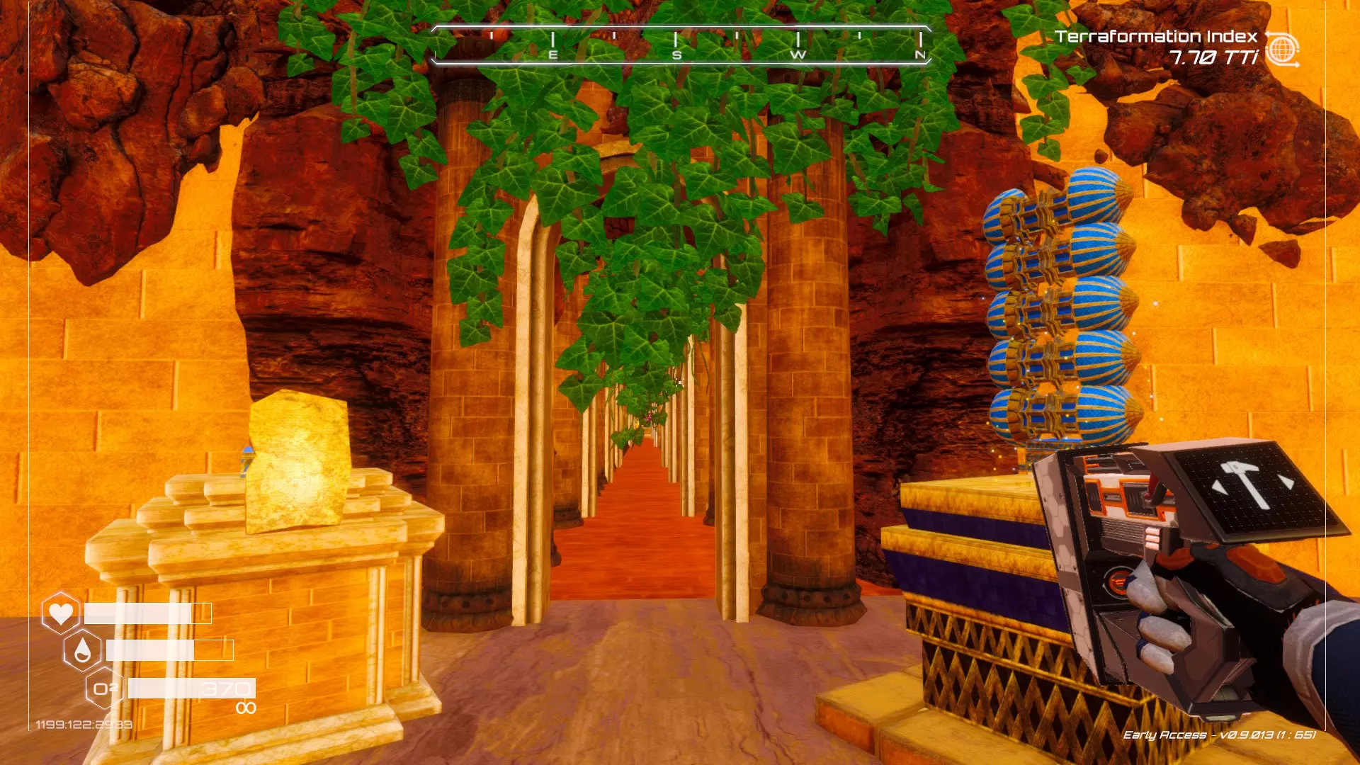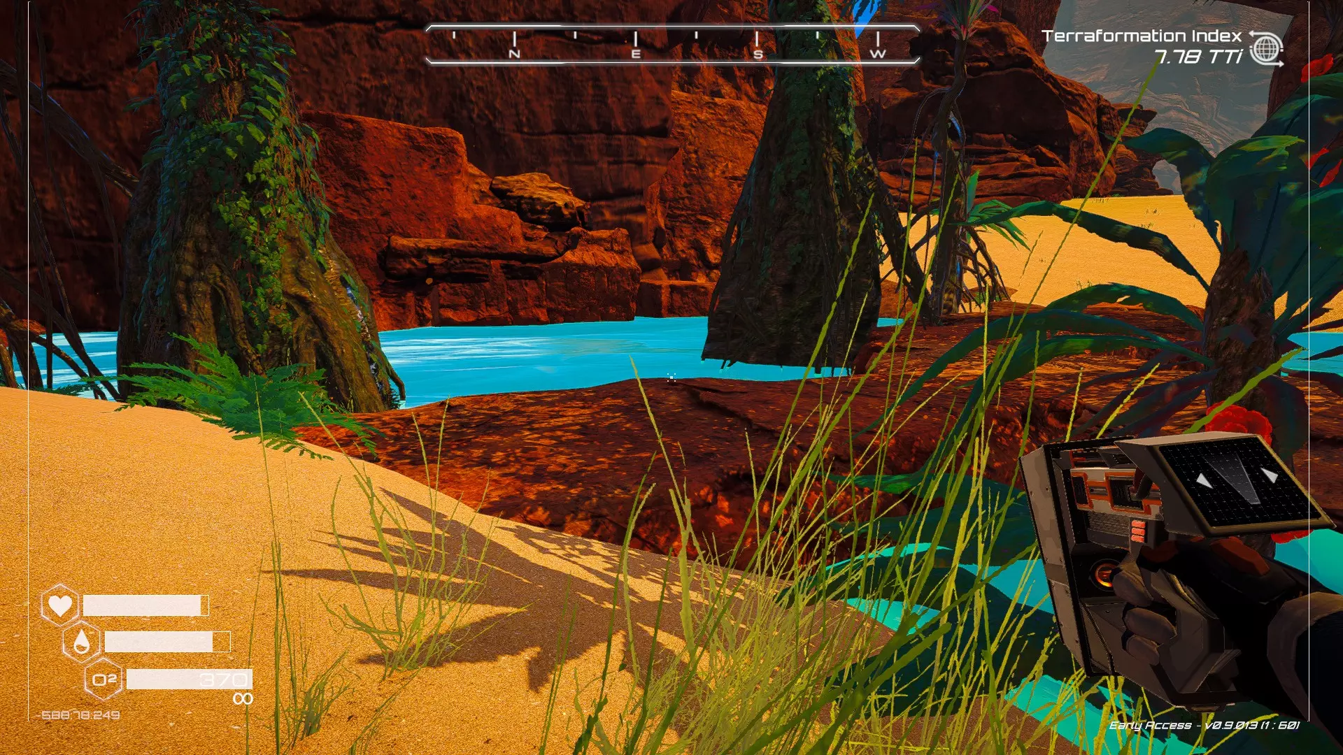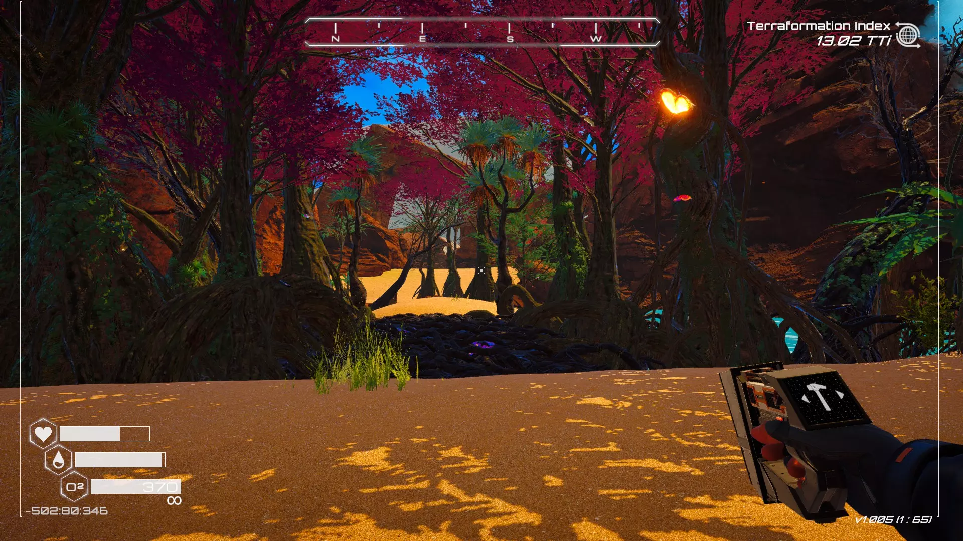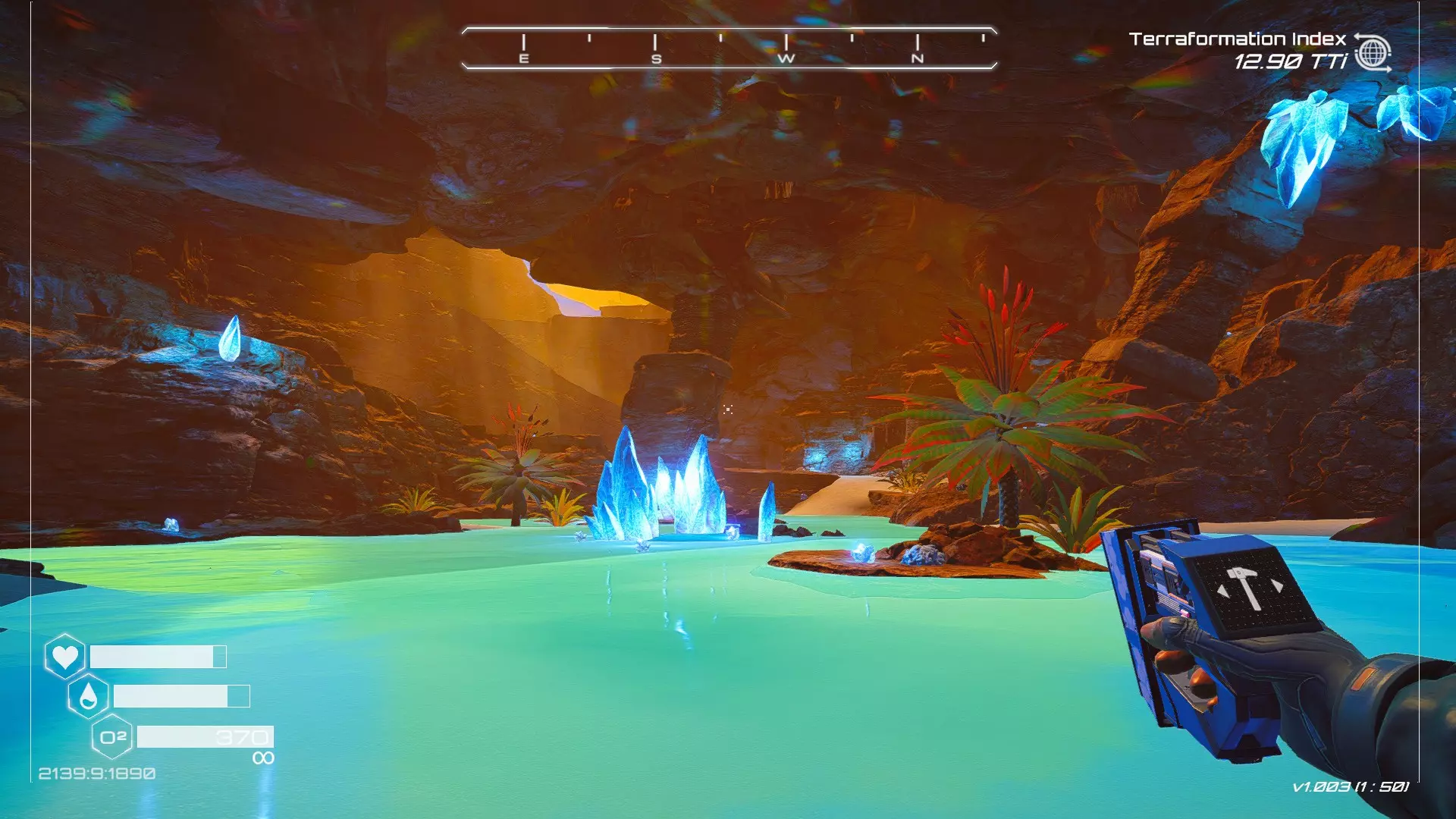 在地球化改造的某个阶段,你会看到瀑布上方有一根粗大的树枝向上延伸,继续往前走就行。下一张图里,你能在瀑布中看到宝箱。