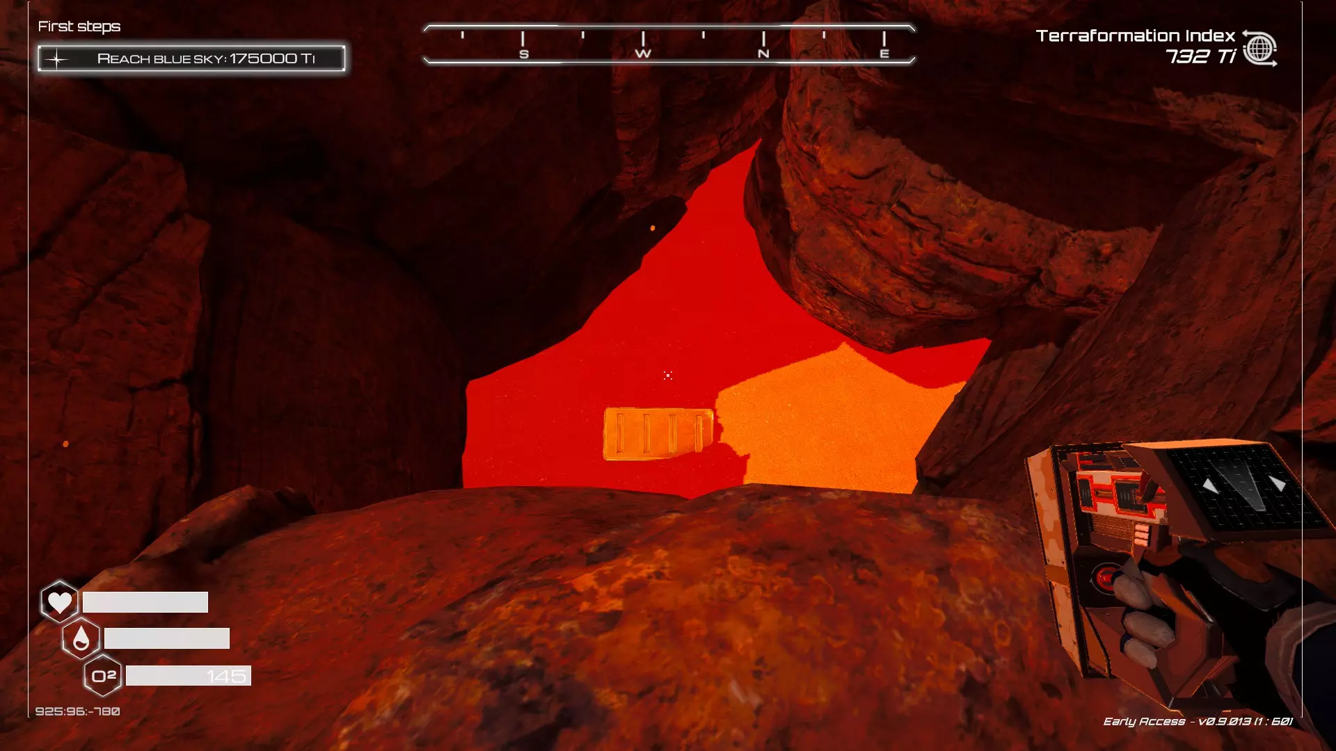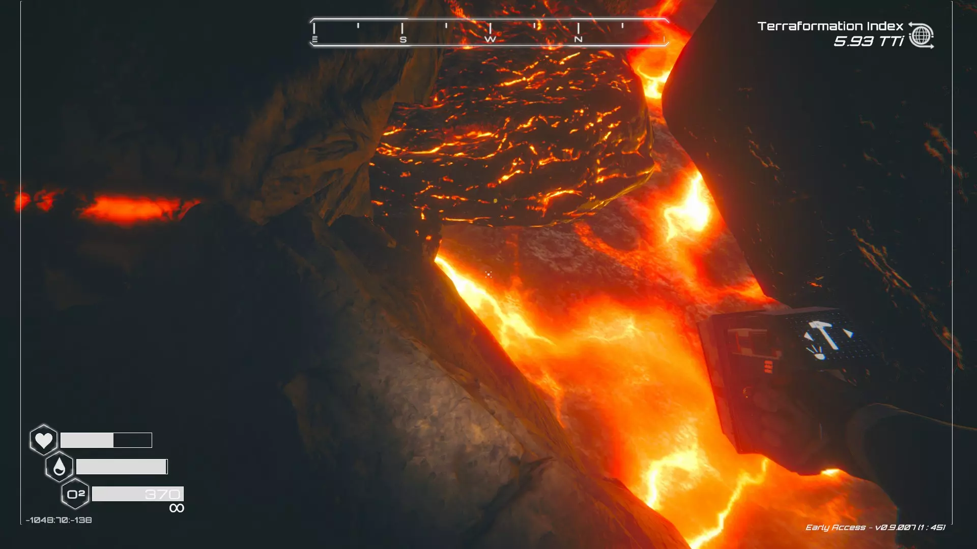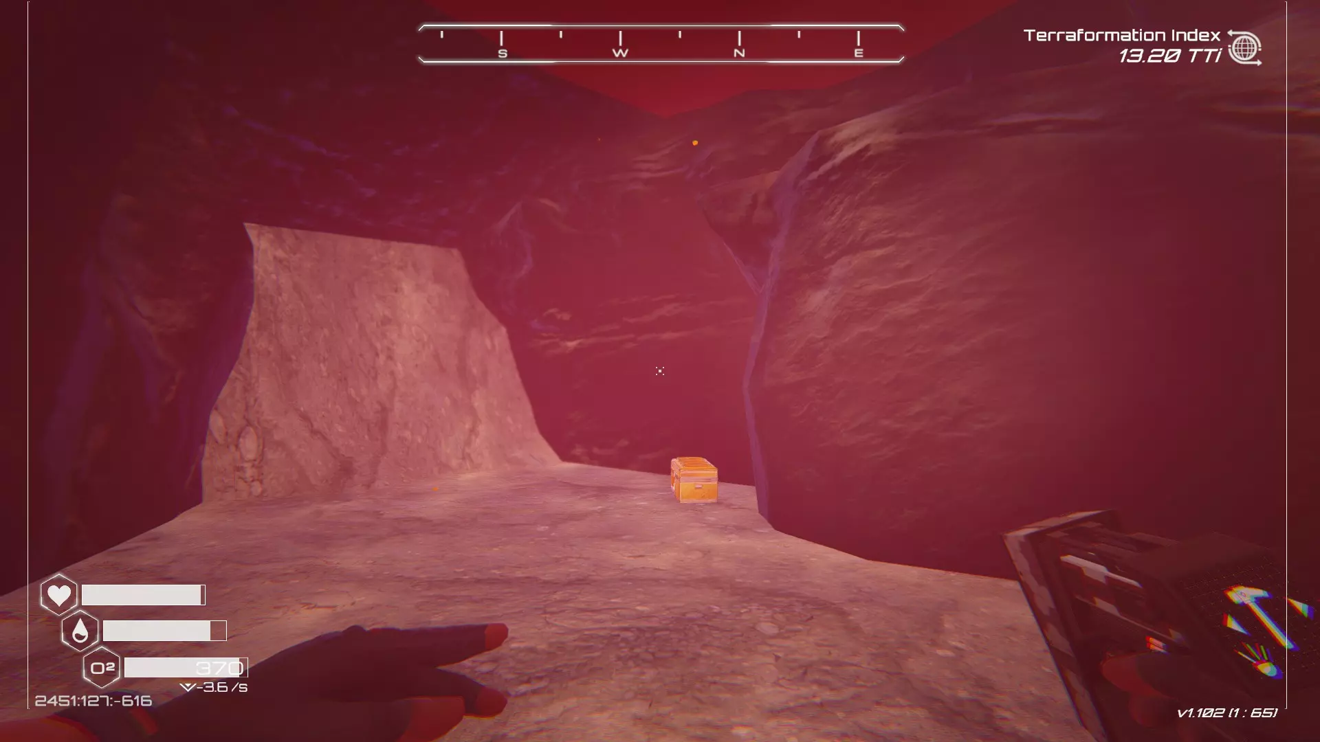 大致坐标:-660:64:-1248 27. 毒穴宝箱 在洞穴中找到这个宝箱有两种方法,我会从不同的起点为你展示这两种方法。 方法一:从熔岩区出发 从坠毁的飞船出发,向东并略微向北走。