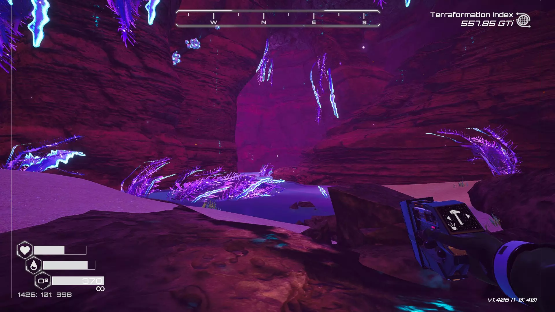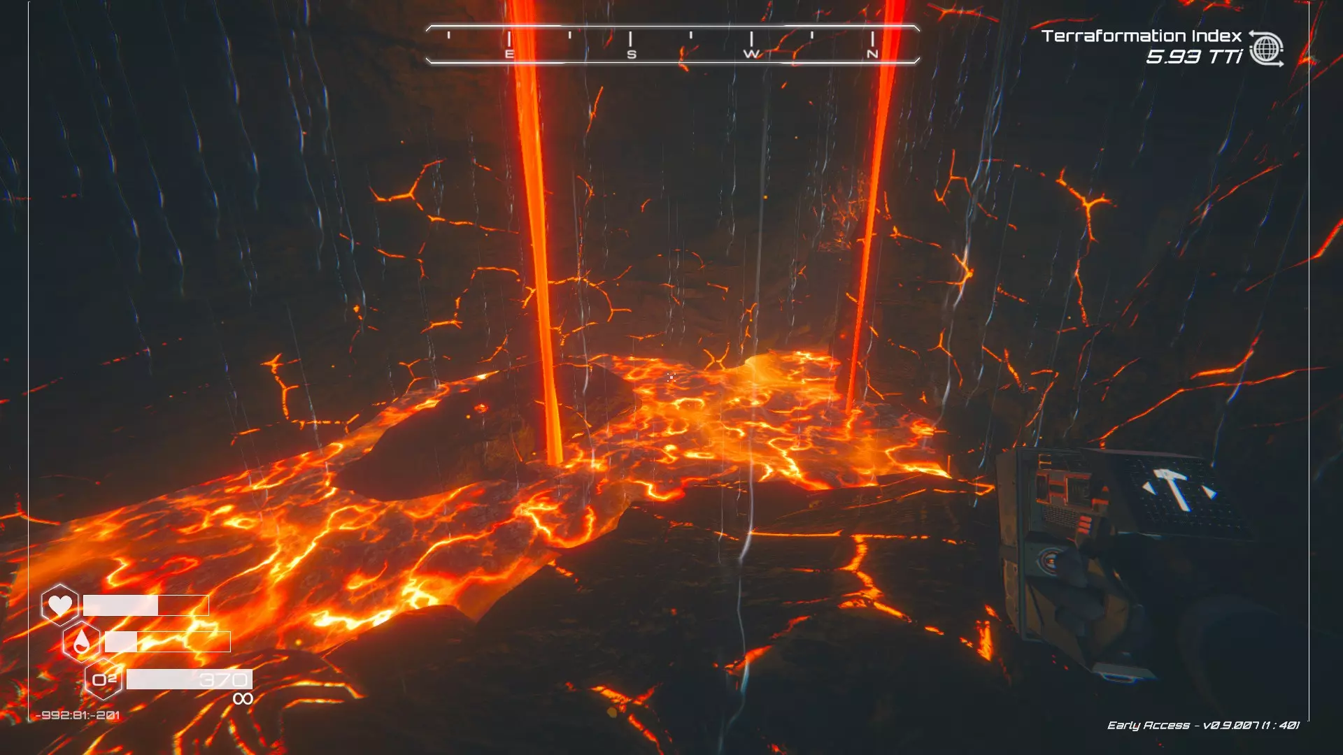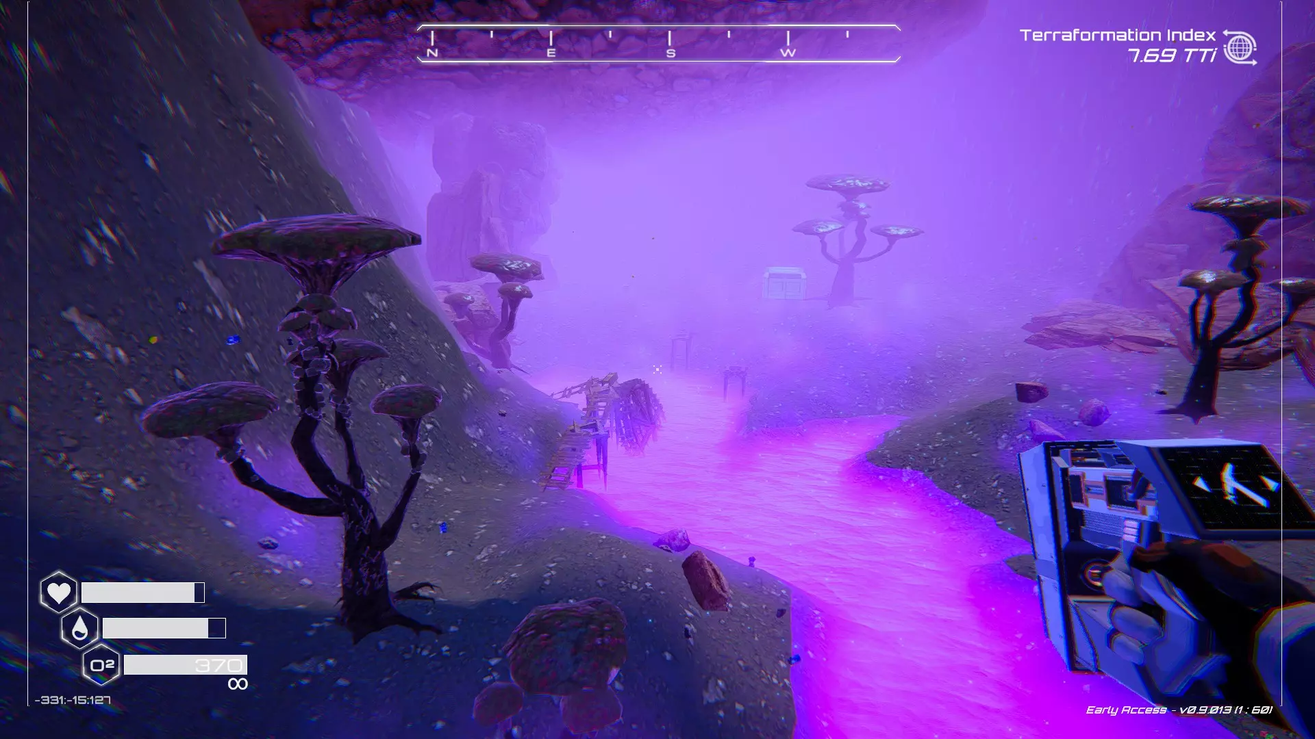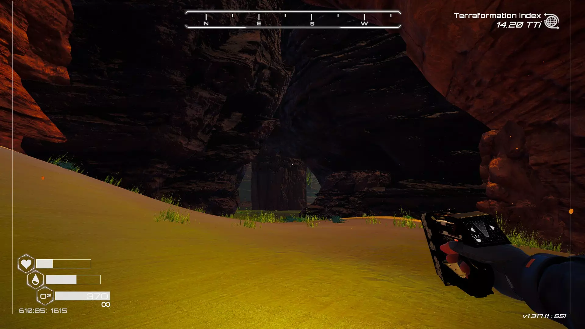 大致坐标:-660:64:-1248 27. 毒穴宝箱 在洞穴中找到这个宝箱有两种方法,我会从不同的起点为你展示这两种方法。 方法一:从熔岩区出发 从坠毁的飞船出发,向东并略微向北走。