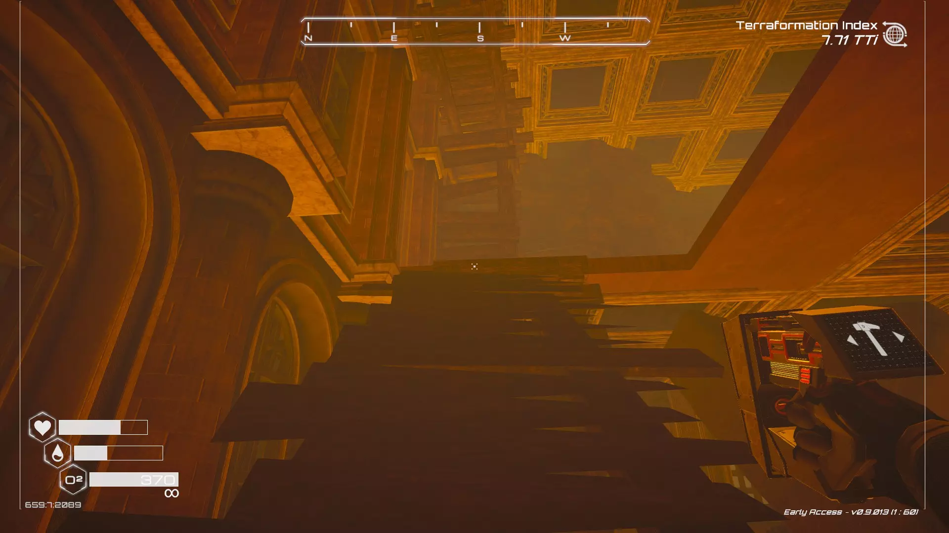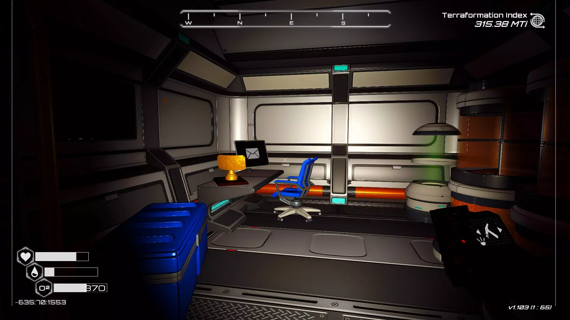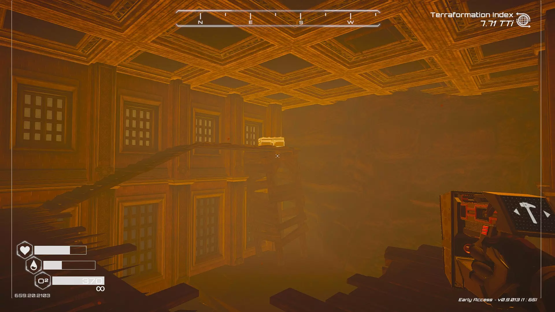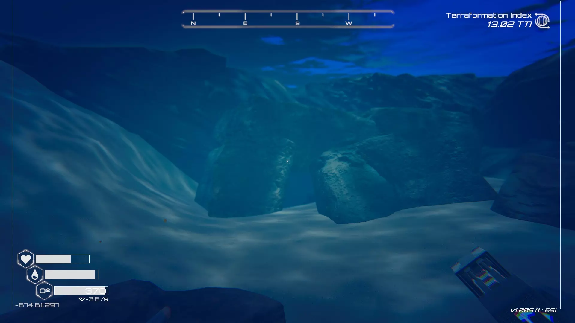 大致坐标:-178:73:1943 其他:地堡金色雕像位置 从陨石坑位置出发(位于地图西南中心区域,你会在陨石坑区域的西南部分看到一个大型山脊)。 注意1:靠近陨石坑实际撞击区域有第二个梯子,在后期地形改造阶段会被水淹没,那不是你要找的地堡。 注意2:你需要使用解构工具才能进入地堡中雕像所在的区域。