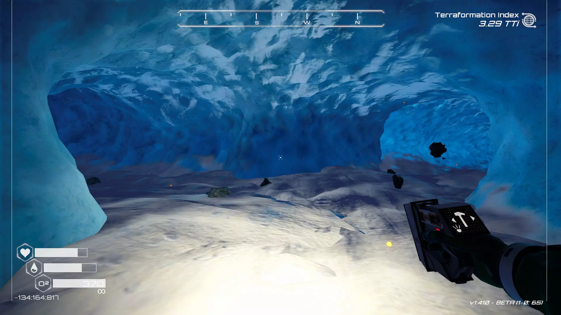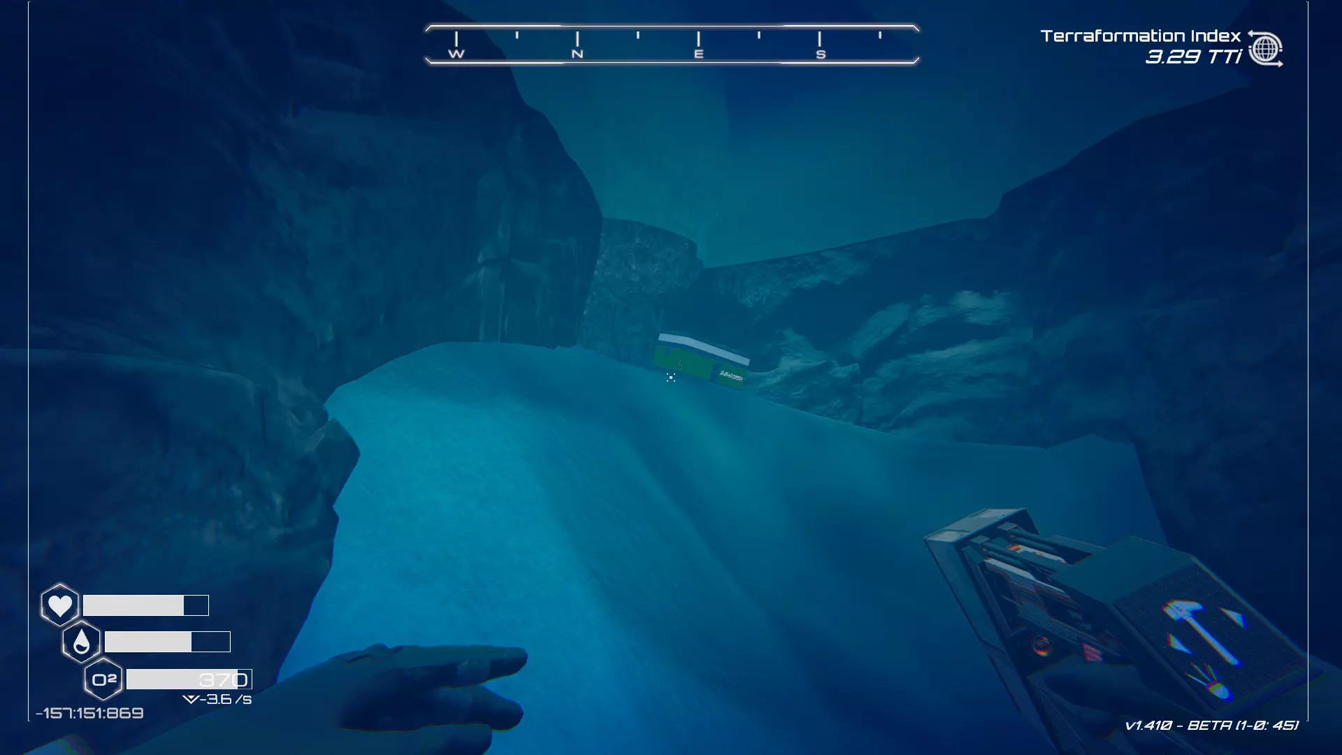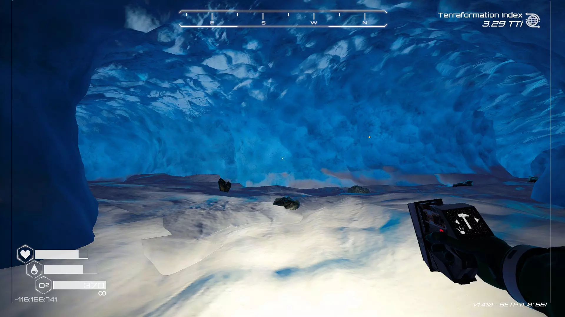 大致坐标:343:201:911 12. 冰冻隧道洞穴宝箱 从你的逃生舱默认坠毁的第一个区域开始,逃生舱西侧有一个冰洞(另一个隐藏在冰后的宝箱,需要先进行地形改造才能进入)。