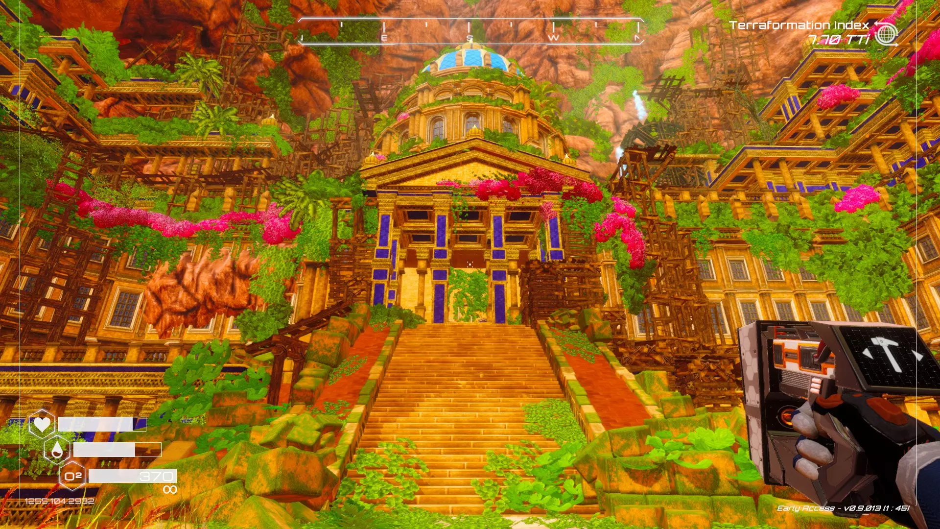 在你的右侧,当地形改造等级提升后,你会看到巨大的沸石结构。此时应向左前往一个拱门,然后再次向左穿过另一个拱门。