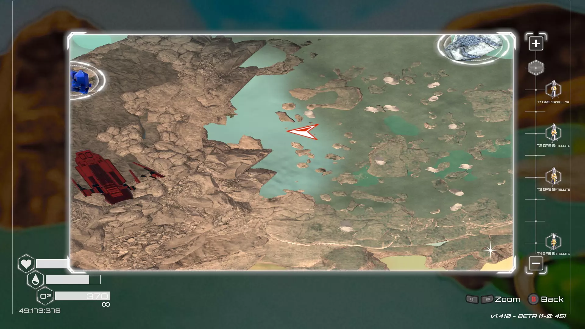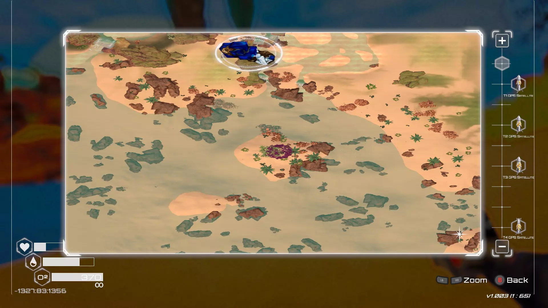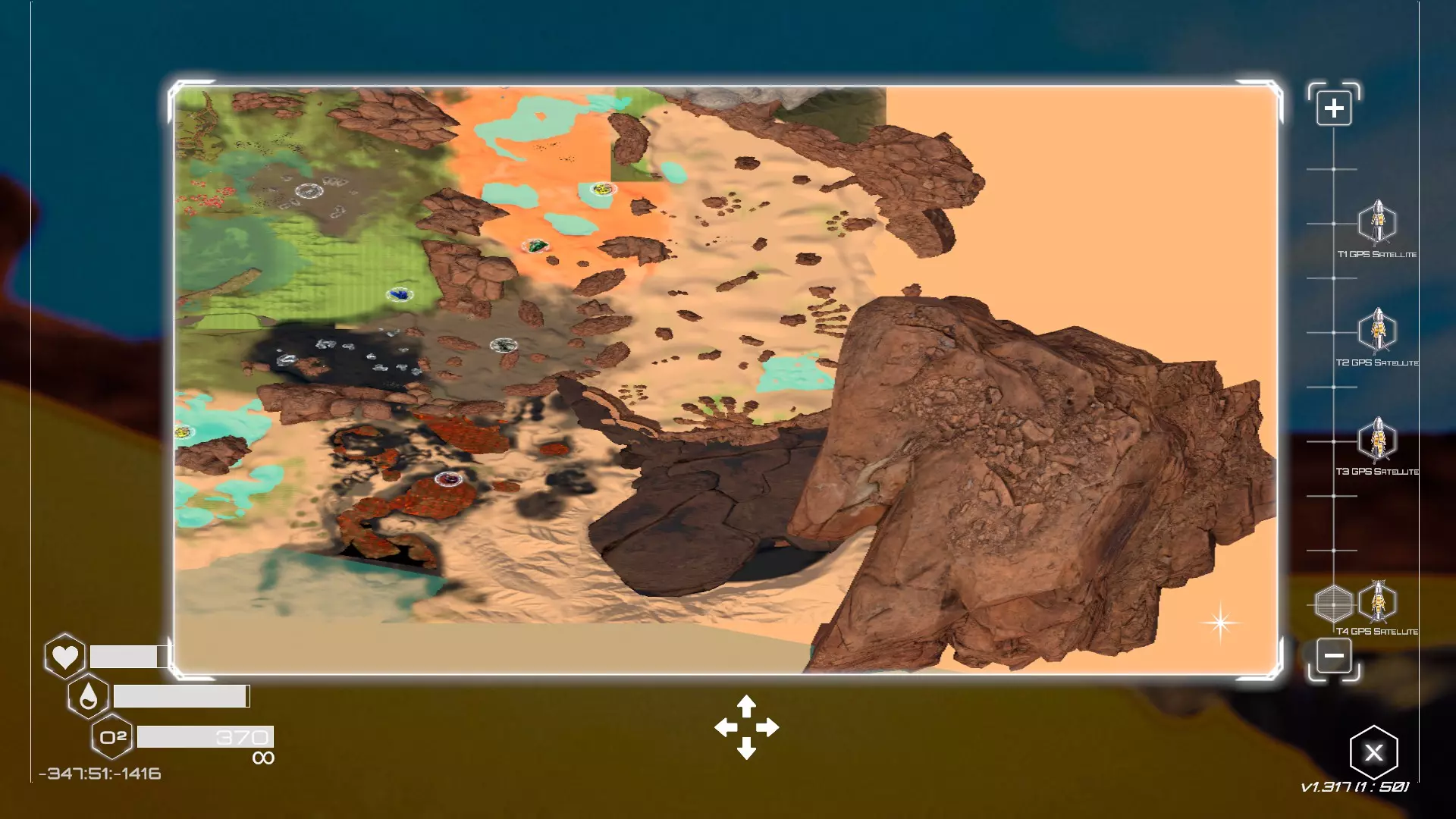 大致坐标:1564:364:875 6. 星岩洞穴宝箱 该宝箱位于地图可探索区域的东南部。在形似星星的巨大岩层区域中,它藏在一个洞穴里。该区域会像基础游戏中的陨石坑区域一样被沙尘暴覆盖,直到达到特定的地形改造等级。在此之前可以进入,但导航难度较大,尤其是使用低阶装备时。 注意,星岩附近有一个相当大的岛屿,上面有一个破损的火箭平台。以下将以此作为起点。