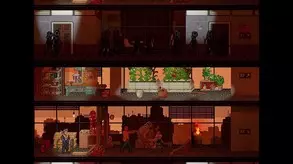 要想不战斗就抵达米格尔,只能使用最安静的武器。一楼的小吃店里有几只僵尸在游荡。对付第一只必须用刀,否则厨房会冲出来两只僵尸。第二只可以用警棍解决,有时也可能只有一只僵尸。二楼的情况最有趣:路上有一只僵尸,而在它旁边的背景处,还有三只僵尸。如果你有刀,捅进肝脏——没人是永生的,但其他任何武器都会发出声响,引来一场“派对”。如果拿消防斧,大概砍3-4下就能解决,然后继续前进,但我还是建议用刀,或者干脆拿火器,把所有人都干掉,然后立刻转身——左边还会跑来6-7个僵尸。现在从右边的窗户爬到屋顶,再顺着梯子去找我们那个胆小的医护兵。