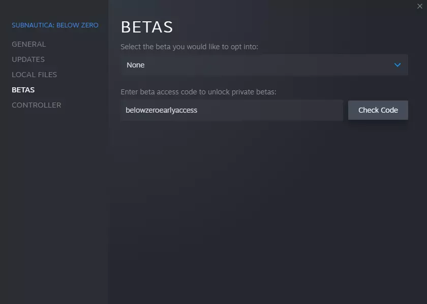 3. 输入belowzeroearlyaccess并点击检查代码
